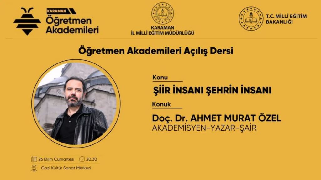 Millî Eğitim Bakanlığı Öğretmen Yetiştirme ve Geliştirme Genel Müdürlüğü öncülüğünde hayata geçirilen Öğretmen Akademisi faaliyetleri kapsamında Karaman İl Milli Eğitim Müdürlüğü tarafından düzenlenen Öğretmen Akademileri, 26 Ekim Cumartesi günü gerçekleştirilen açılış dersi ile başladı. Bu yılın ilk dersi, "Şiir İnsanı Şehrin İnsanı" başlığı altında düzenlenen etkinlik, Gazi ve Kültür Sanat Merkezi'nde yapıldı.