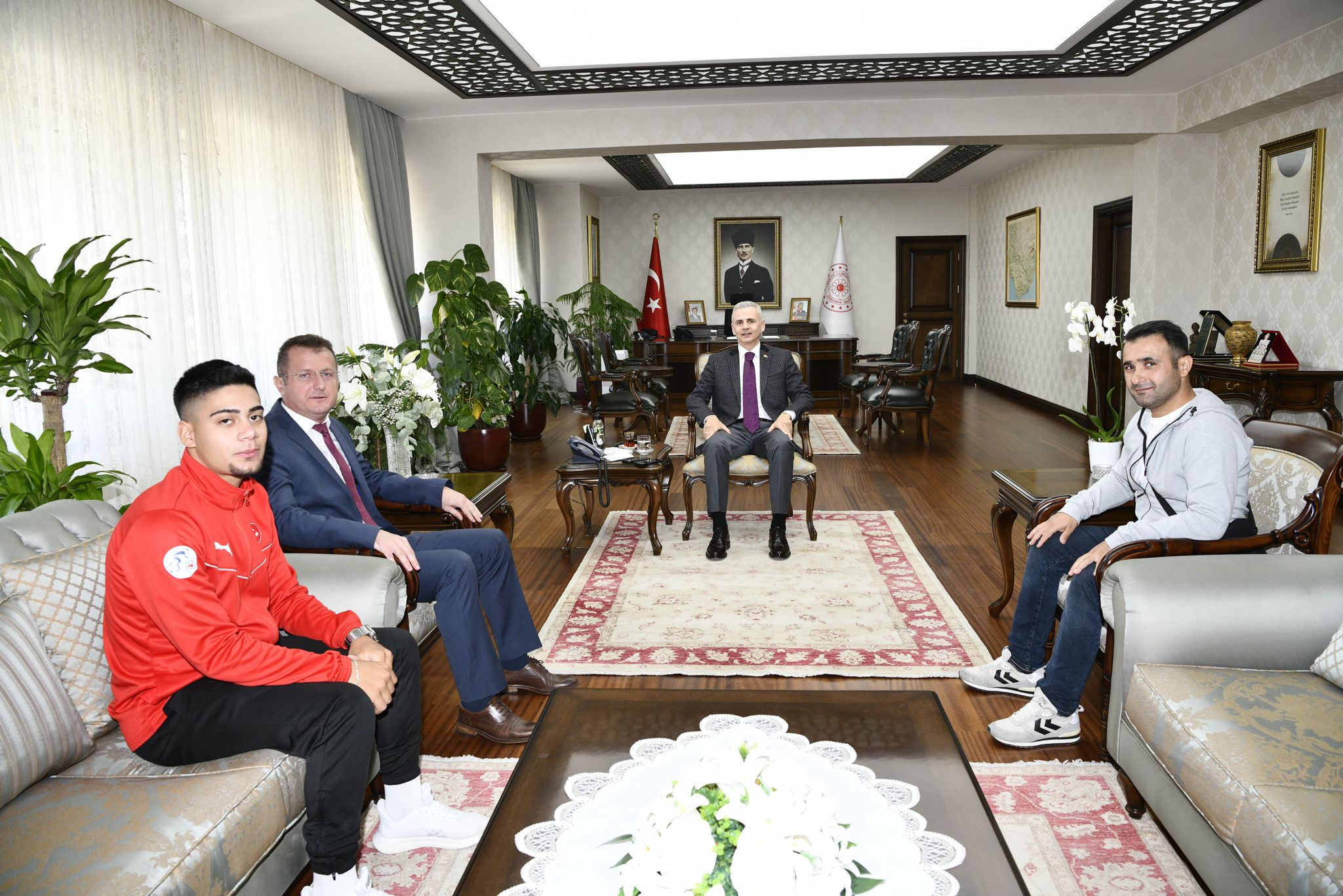 Karaman Valisi Mehmet Fatih Çiçekli, Bulgaristan’ın Plovdiv şehrindeki velodromda düzenlenen Balkan Pist Şampiyonasında genç erkekler Scratch kategorisinde altın madalya kazanarak Balkan Şampiyonu olan Karamanlı milli bisikletçi Haktan Ramazan Sayan’ı makamında kabul etti.