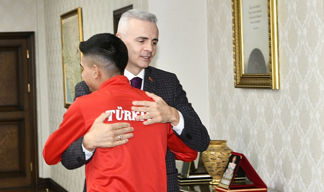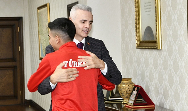Karaman Valisi, genç şampiyonu kucaklayarak karşıladı