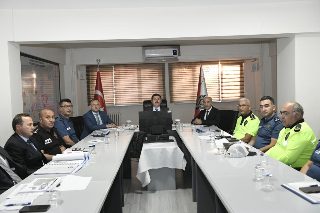 İl Emniyet Müdürlüğü’nde İl Emniyet Müdürü Ahmet Selçuk Okumuş tarafından karşılanan Vali H. Engin Sarıibrahim, Polis Mangasını selamlamasının ardından İl Emniyet Müdürlüğü Şeref Defterini imzaladı.Akabinde Vali H. Engin Sarıibrahim, İl Emniyet Müdürlüğü toplantı salonunda İl Emniyet Müdürü Ahmet Selçuk Okumuş, İl Emniyet Müdür Yardımcıları ve Şube Müdürleri ile toplantı yaparak genel asayiş durumu, icra edilen faaliyetler ve personel durumu hakkında bilgiler aldı.Vali Yardımcısı Fatih Baysal’ında katıldığı toplantıda, yapılan sunumun ardından Vali H. Engin Sarıibrahim değerlendirmelerde bulundu.
