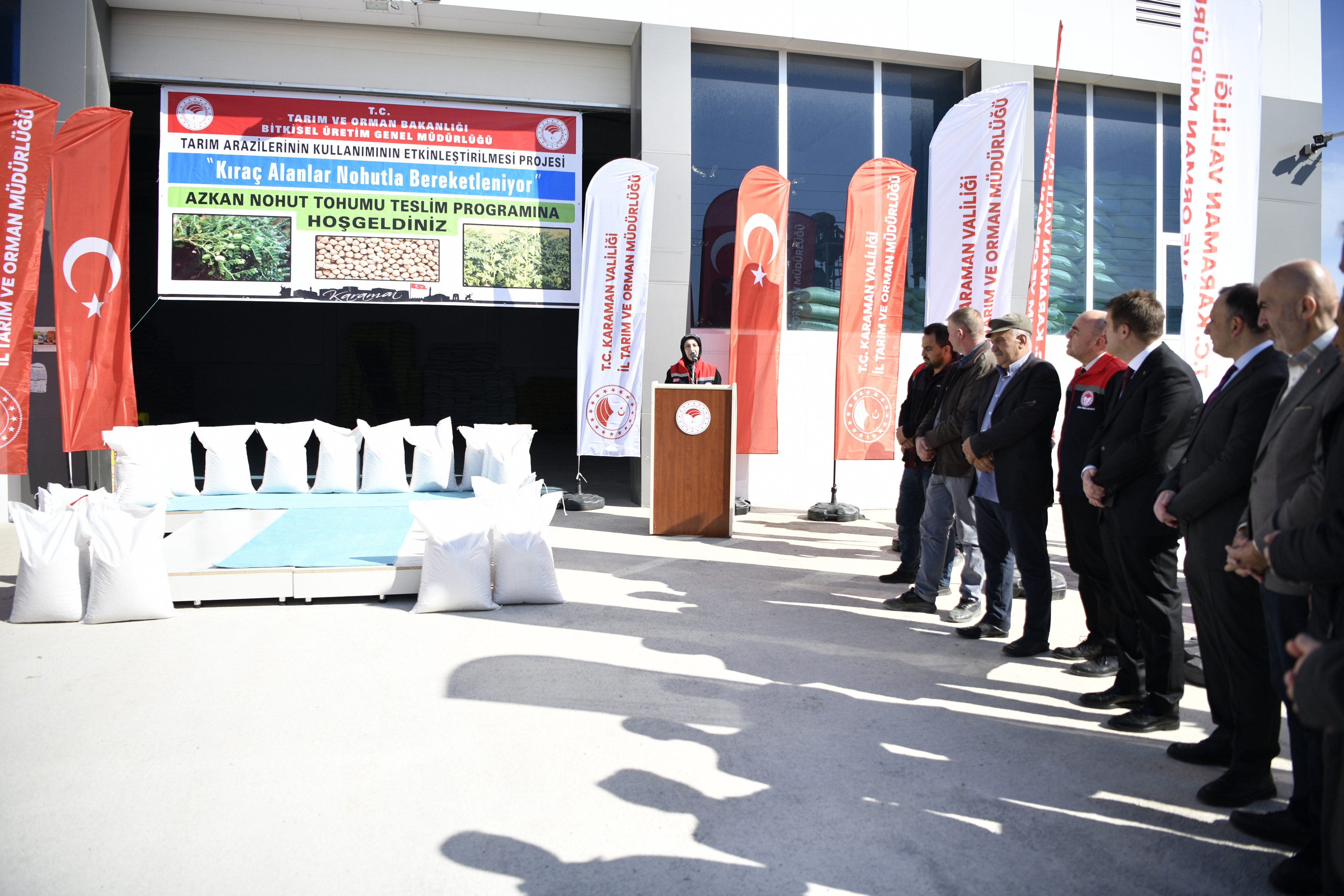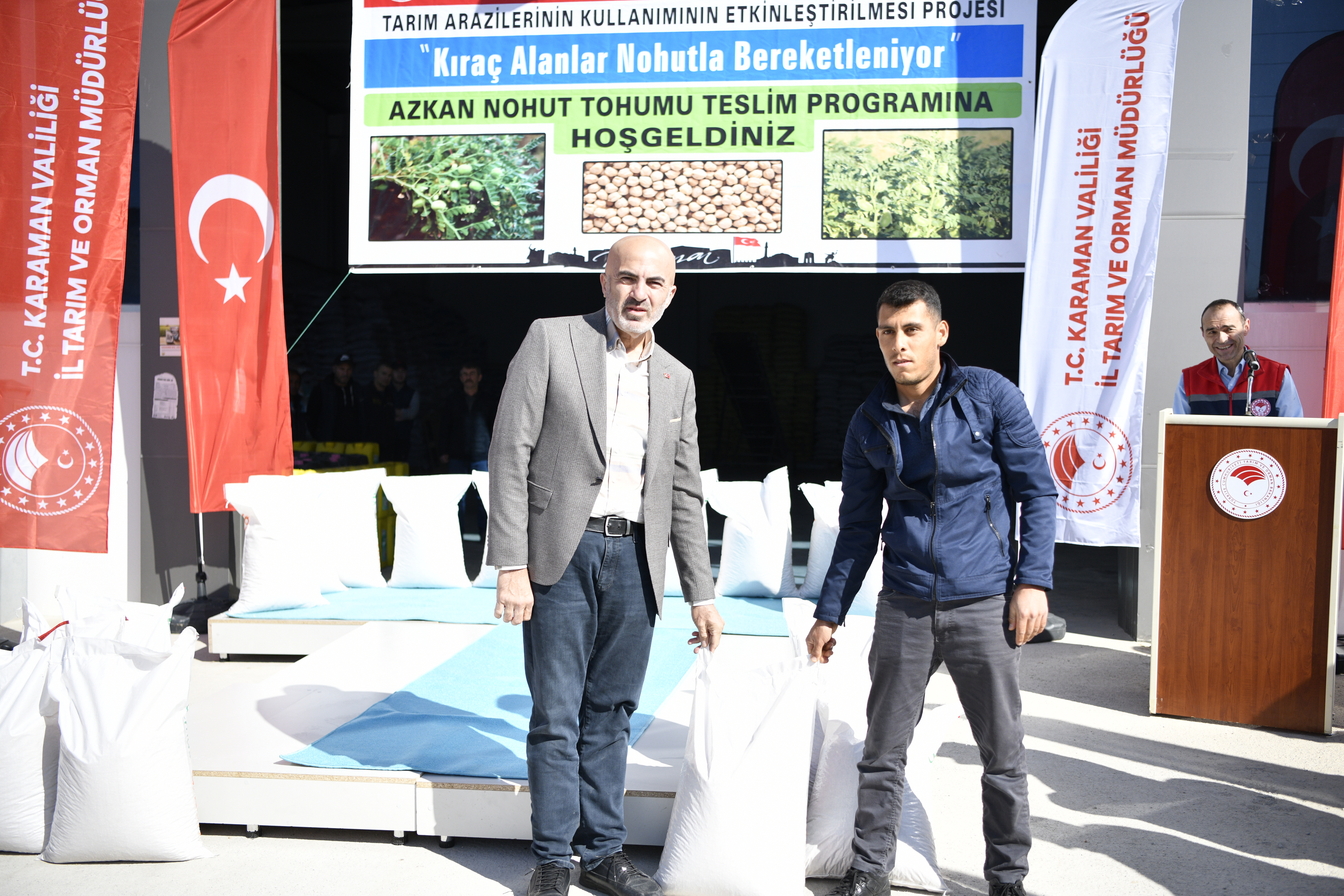 -Toroslarda yaz seracılığı projesi yürütülmektedir.Karaman'da 2023 yılı verilerine göre 32.391 hektar alanda 32 bin ton nohut üretimi ile Karaman Türkiye’de 5. sırada yer almaktadır.Bu kapsamda Karaman'da, Tarım ve Orman Bakanlığı’nın ‘Tarım Arazilerinin Kullanımının Etkinleştirilmesi’ “Kıraç Alanlar Nohutla Bereketleniyor” projesi kapsamında 132 üreticimize 24 ton Azkan Nohut Tohumu dağıtım programı gerçekleştirildi.Programa Karaman Valisi H.Engin Sarıibrahim, Vali Yardımcısı Fatih Baysal,İl Tarım ve Orman Müdürü Hatice Bulut,İl Özel İdare Genel Sekreteri Ali Yener Terlemez, Karaman Ziraat Odası Başkanı Mehmet Bayram ve üreticiler katıldı.