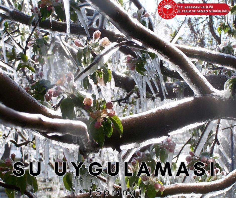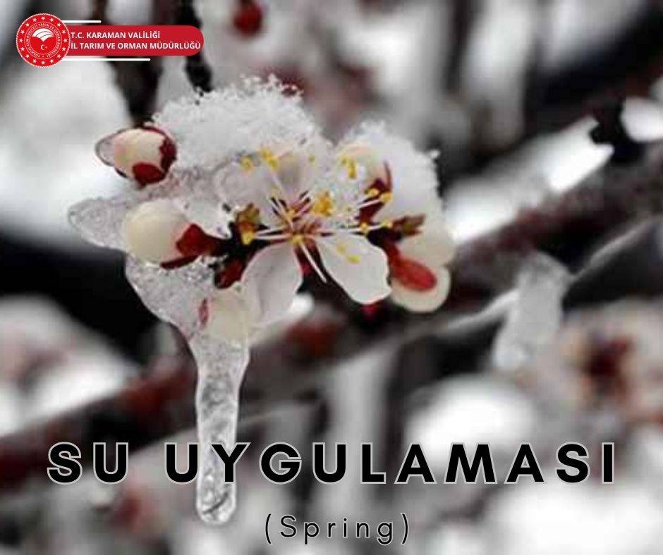 Karaman İl Tarım ve Orman Müdürlüğü'nün konuyla ilgili uyarı ve açıklamaları şu şekilde:"Meyve üreticilerimiz için en büyük risk ilkbahar geç donları olup ilimizde 10-11-12 Nisan 2025 tarihlerinde orta şiddette ve şiddetli don olayı beklenmektedir.Meyve üreticilerimizin don zararından fazla etkilenmemeleri için yararlanabilecekleri farlı yöntemler bulunmaktadır. Su Uygulaması (Spring): Don olayını önlemede en etkin yöntemlerden biri olan bu yöntemde buz yükünü taşıyabilecek bitki üzerine üstten spring veya yağmurlama uygulaması yapılmasıdır. Bu yöntemde bitki su soğuduğu veya donduğu zaman radyasyonla kaybolan ısıyı kazandırmak için eritme ısısını ortama verir. Eğer yaprak veya tomurcuk ince bir su filmi ile kaplanırsa, suyun donmasıyla ısı açığa çıkacak ve bitki sıcaklığının 0 santigrat derecenin altına düşmesi engellenecektir. Bu su filminin olabildiğince sürekliliği sağlanarak buz tabakası oluşması ile ortam sıcaklığı donma noktasının altına düşmesine rağmen bitki sıcaklığı donma noktasının altına düşmeyeceğinden üşüme olmayacaktır. Yağmurlama veya spring işlemi hava sıcaklığının 0 santigrat derecenin üzerine çıkıncaya kadar devam ettirilmelidir. Don Pervanesi Uygulaması: Isı transferinin yoğun olduğu gecelerde hava yüzeye yakın bir yerde soğuk bir tabaka meydana getirir, yerden yukarı çıkıldıkça ise hava normalin aksine ısınır. Bu sebeple üst seviyelerdeki sıcak hava ile zemine yerleşen soğuk hava tabakası don pervaneleri veya fanlar ile karıştırılarak don zararı azaltılacaktır.Dumanlama Makinesi veya ateş yakma suretiyle hava ve bitkinin ısıtılması: Zirai don esnasında rüzgar olmadığından dumanlama makinesi kullanarak oluşturulan yapay duman bulutları ile bitki üzerine soğuk havanın teması engellenebilir. Açık ve soğuk havalarda radyasyon yoluyla yeryüzünden atmosfere giden ısı kaybı çok fazla olmaktadır ve bitkiler don olayına maruz kalmaktadırlar. Isı kaybının en aza indirilmesi için uygun ısıtma ekipmanları kullanmak veya küçük ateşler yakmak gerekmektedir. Bu yöntemle arazilerde veya meyve bahçelerindeki sıcaklıklar belirli ürünler için kritik sıcaklık değerinin üzerinde tutulabilir."