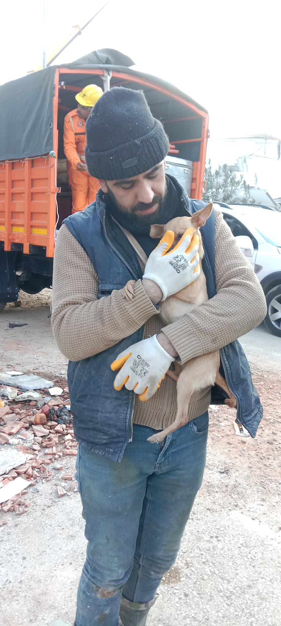 Karaman'dan deprem bölgesine gönüllü olarak giden bir esnaf, enkazda tespit ettiği köpeği 5 saatlik çalışmayla kurtardı.