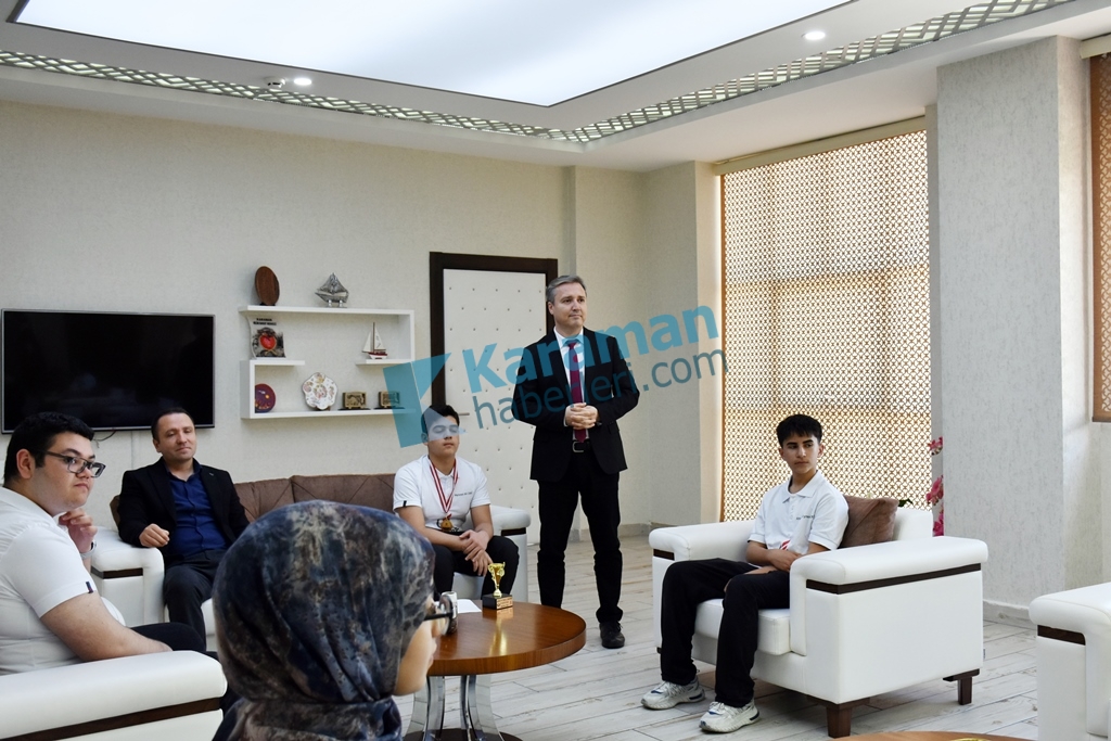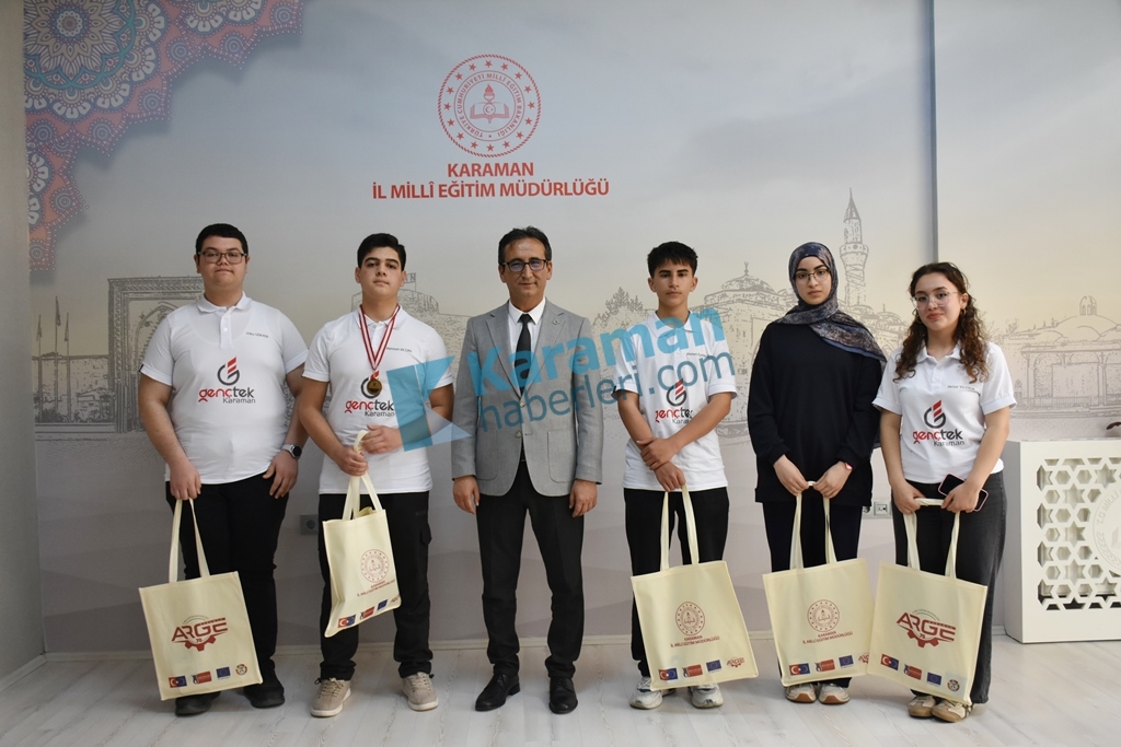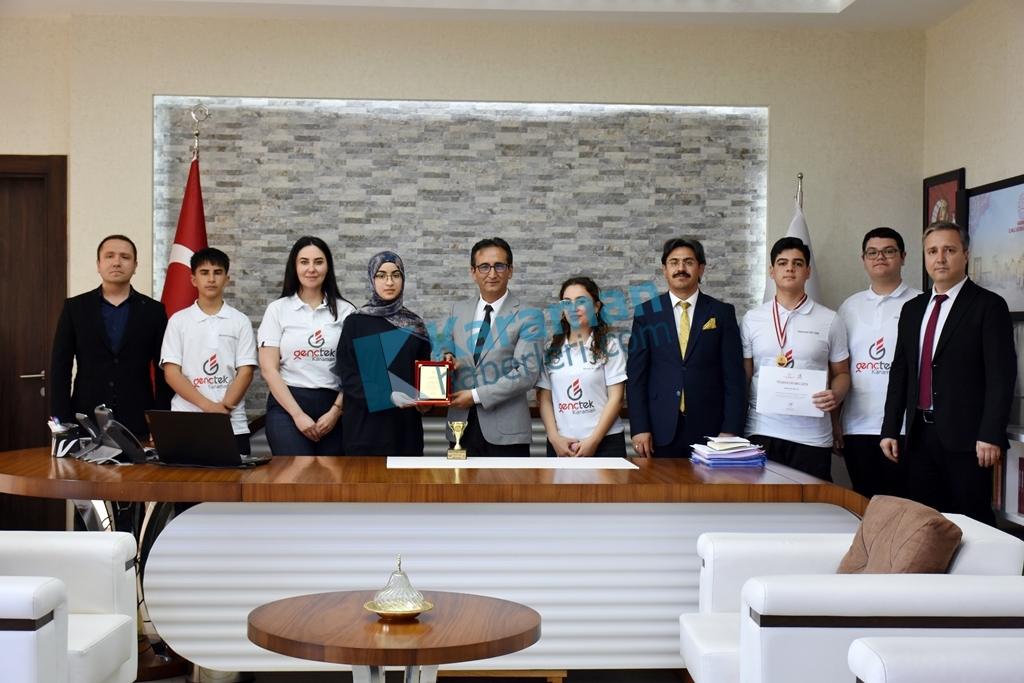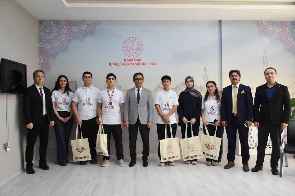 13-14 Nisan 2026 tarihlerinde Ankara’da gerçekleştirilen zirvede 63 ilden katılımcılar yer aldı. Karaman’ı temsil eden ekip, program sonunda aldığı plaketi İl Milli Eğitim Müdürü Mehmet Çalışkan’a takdim etti.KARAMAN’I BAŞARIYLA TEMSİL ETTİLERİl Milli Eğitim Müdürlüğü YEĞİTEK Şubesi koordinesindeki ziyarete Şube Müdürü Mehmet Salih Koç, YEĞİTEK İl Koordinatörü Hamza Sağcan, GençTek İl Koordinatörü İsmail Hakkı Kunt ve Danışman Öğretmen Sena Güzel de katıldı.Çalışkan, öğrencileri tek tek dinleyerek teknolojiye olan ilgileri ve üretkenliklerinden duyduğu memnuniyeti dile getirdi.“TEKNOLOJİYİ GELİŞTİREN NESİL OLUN”Mehmet Çalışkan, gençlerin yalnızca bugünün değil yarının da söz sahibi bireyleri olduğunu belirterek, zirvede kazanılan tecrübelerin öğrencileri daha büyük hedeflere taşıyacağını söyledi.Çalışkan, teknolojiyi takip eden değil geliştiren ve yön veren bir nesil yetişmesini istediklerini ifade etti.DRONSOCCER’DA ZİRVE İKİNCİLİĞİZirvede öğrenciler; Sahne Senin, Hack the Idea, Tek Maraton, Siber Güvenlik ve Öğrenci Forumu gibi etkinliklerde yer aldı. Karaman ekibi ayrıca dronsoccer alanında zirve ikincisi olarak dikkat çekti.KARAMAN’I TEMSİL EDEN ÖĞRENCİLERZirveye Karaman’dan;Ahmet Eymen Özkanİlknur YıldırımUtku GökyerMehmet Ali CanGülsüm Sena Özkul katıldı.Ziyaret, hatıra fotoğrafı çekimiyle sona erdi.