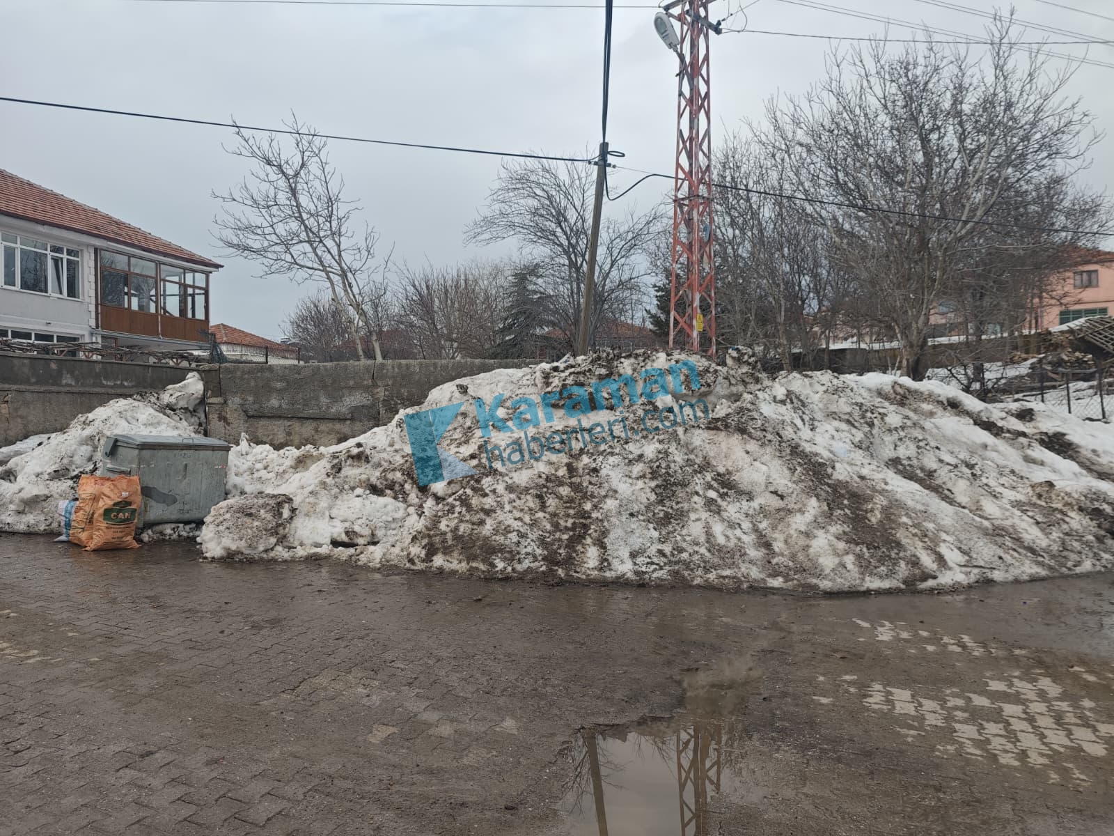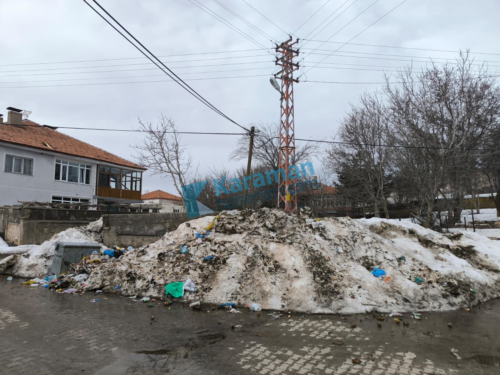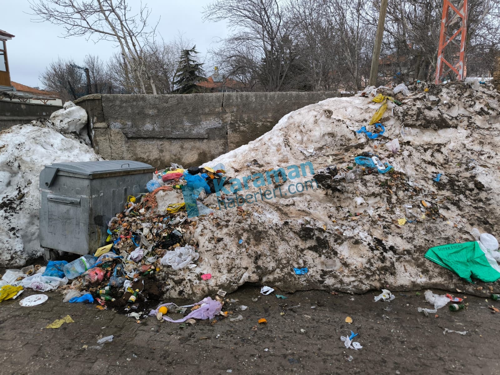 Karla karışmış çöpleri tek tek çıkararak temizleyen Ülküsever’in bu davranışı,basının ve köy halkının ilgisini topladı.