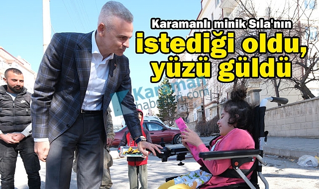 Karaman Valisi Mehmet Fatih Çiçekli, 26 Ocak 2025 Pazar günü Gödet Baraj Gölü’nde kürek yapan vatandaşlarla sohbet ettiği sırada küçük Sıla ile tanıştı.Sohbet sırasında Sıla’nın annesi, kızının bir akülü tekerlekli sandalyeye ihtiyacı olduğunu belirterek Vali'den destek istedi.O gün orada bulunan hayırsever Yusuf Bilgin, Sıla’nın bu isteğini yerine getirmek istediğini söyleyerek hemen harekete geçti.Ardından Vali Mehmet Fatih Çiçekli, İl Genel Meclisi Başkanı Tamer Yıldızbaş, İl Milli Eğitim Müdürü Mehmet Çalışkan ve Yusuf Bilgin, Sıla’ya akülü tekerlekli sandalyesini teslim etti.Sıla ve ailesi, desteklerinden dolayı Vali Çiçekli'ye, İl Genel Meclisi Başkanı Tamer Yıldızbaş’a ve hayırsever Yusuf Bilgin’e teşekkür etti.