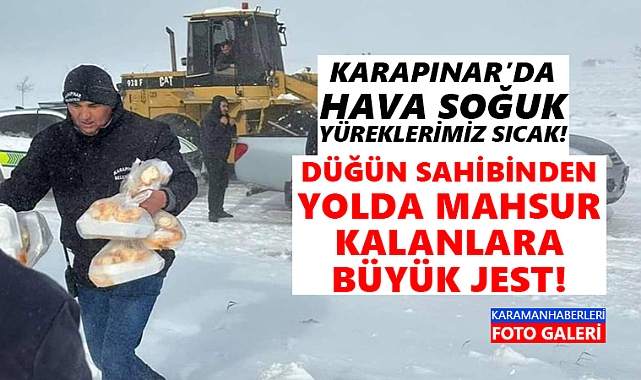 Konya Ereğli arasında yoğun kar yağışı nedeni ile çevre yolu trafiğe kapatılmıştı. Hem Karapınar Belediye Başkanı hem de bir vatandaş yaptıkları jestler ile yürekleri ve içleri ısıttı.