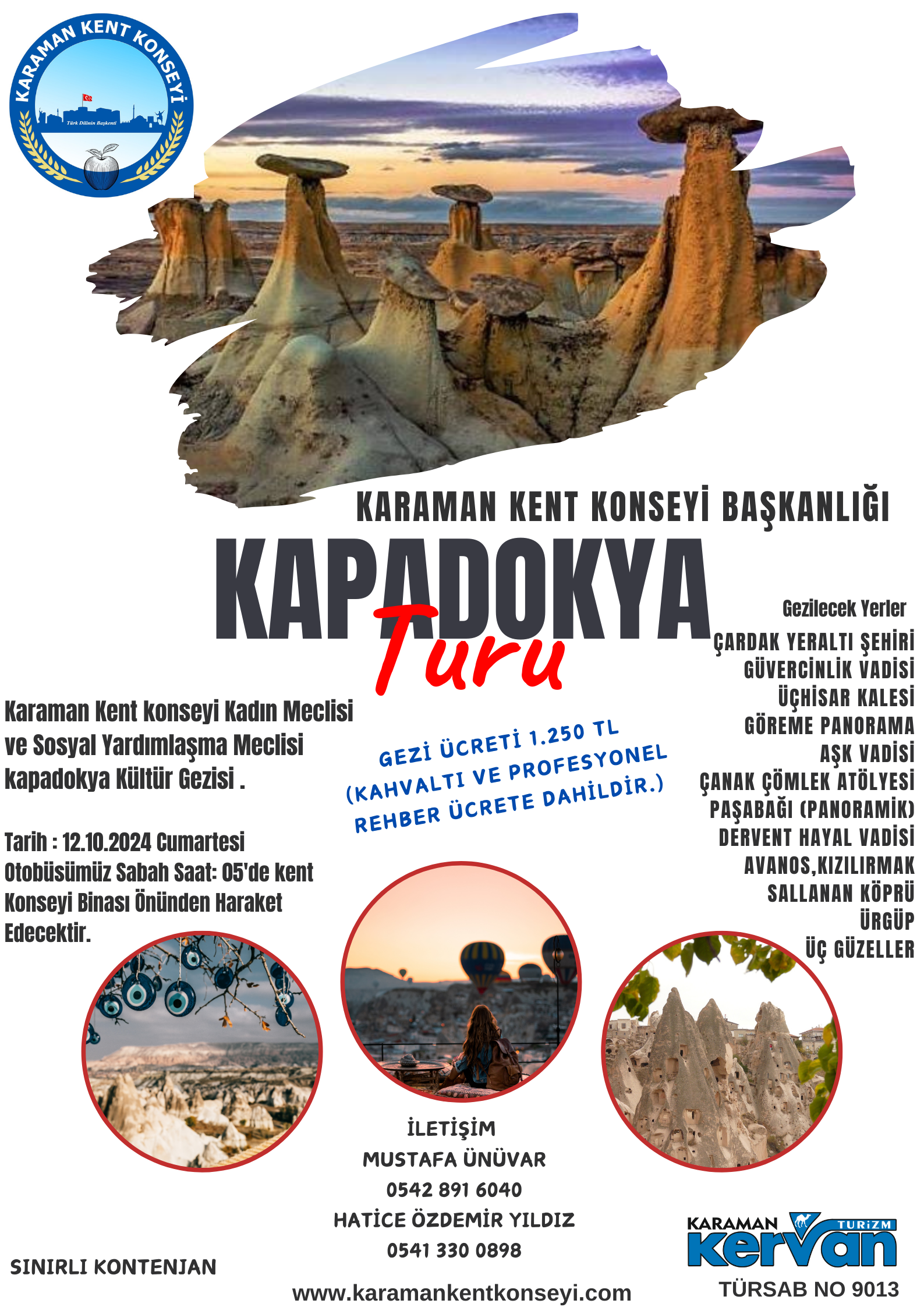 Kontenjanı sınırlı tutulan geziye Karaman turizm şirketlerinden Kervan Turizm de katkıları ile destek olacaktır.