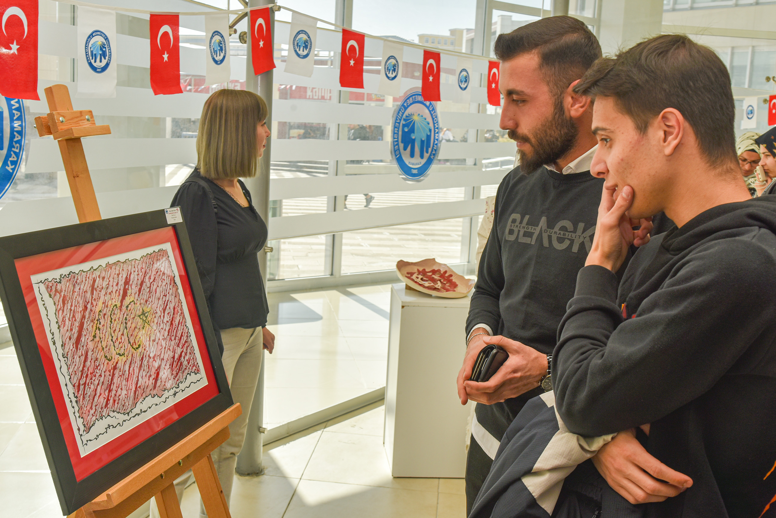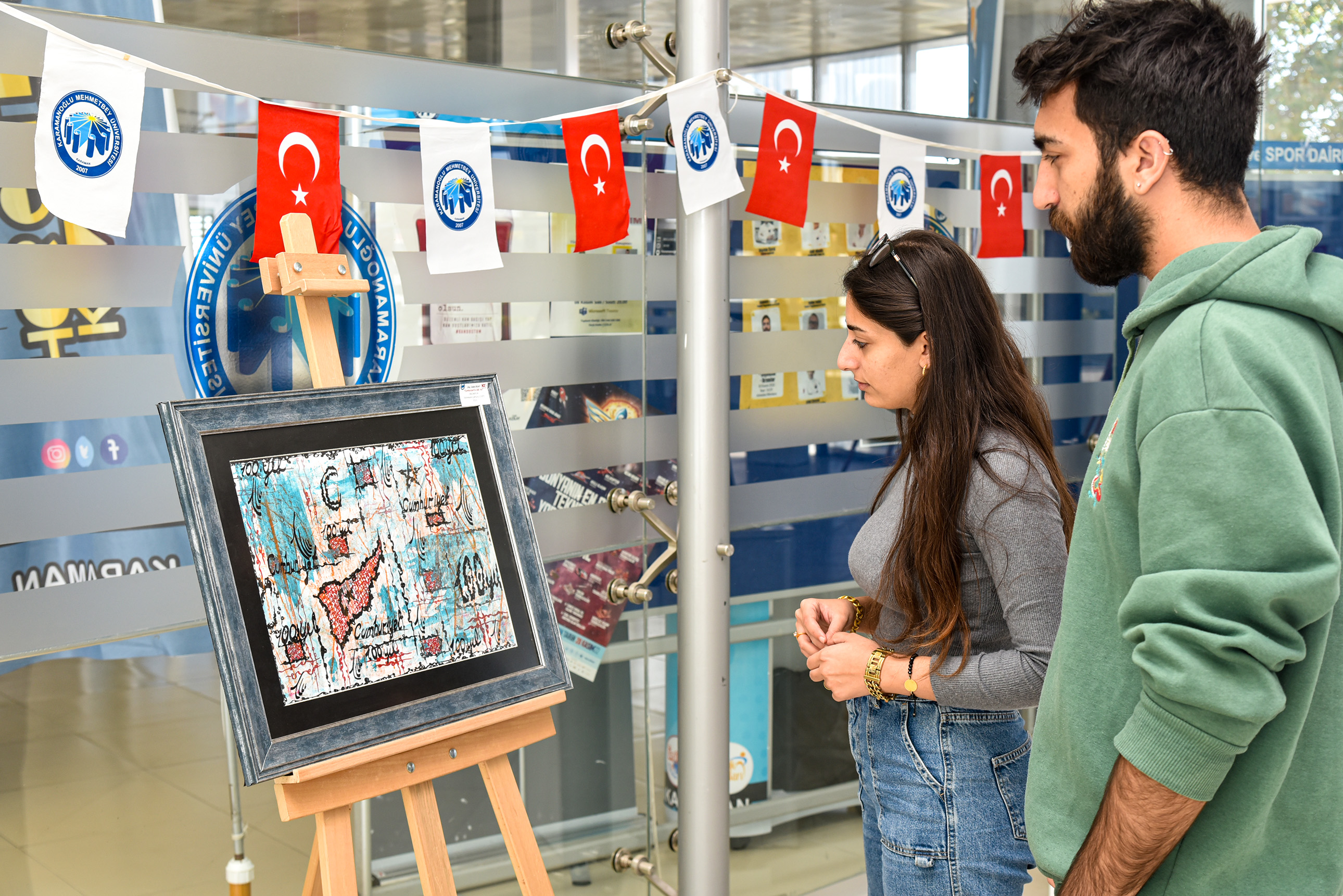 ‘Cumhuriyet’in 100. Yılı’ temalı serginin açılışına Rektör Prof. Dr. Mehmet Gavgalı, TBMYO Müdürü Prof. Dr. Oktay Talaz, üniversite personeli, öğrenciler ve davetliler katıldı.Doç. Seda Dilay tarafından Cumhuriyet’in 100. Yılı vesilesiyle seramik ve resimlerden hazırlanan 23 özgün eser sanatseverlerin beğenisine sunuldu. Rektör Gavgalı, eserleri tek tek inceleyerek Doç. Seda Dilay’dan bilgi aldı. Cumhuriyet’in nice yüzyıllar görmesi ve ilelebet sürmesi temennisinde bulunan Doç. Seda Dilay, “Cumhuriyet, Türk Milletinin tarih yolculuğundaki varoluş mücadelesidir. Cumhuriyet, dalgalanan al bayrağın altında bir olmaktır. Cumhuriyet, hür bir gelecek için yerli ve milli üretimdir. Sanatçılar da bu yolda ortaya koyduğu eserlerle toplumun dili olmuştur. Sanat eserleri, sanatçıyla izleyici arasında bir köprü oluşturmaktadır. ‘Sanatsız kalan bir milletin hayat damarlarından biri kopmuş demektir.’ sözü Gazi Mustafa Kemal Atatürk’ün sanata verdiği önemi göstermektedir. Bir yıldır üzerinde özenle çalıştığım bu sergiyi başta Cumhuriyetimizin kurucusu Mustafa Kemal Atatürk olmak üzere şehitlerimiz, gazilerimiz ve tüm vatan kahramanlarının aziz hatırasına ithaf ediyorum.” dedi. KMÜ Sağlık, Kültür ve Spor Daire Başkanlığı fuaye alanındaki sergi, 13 Kasım 2023 tarihine kadar açık kalcak.