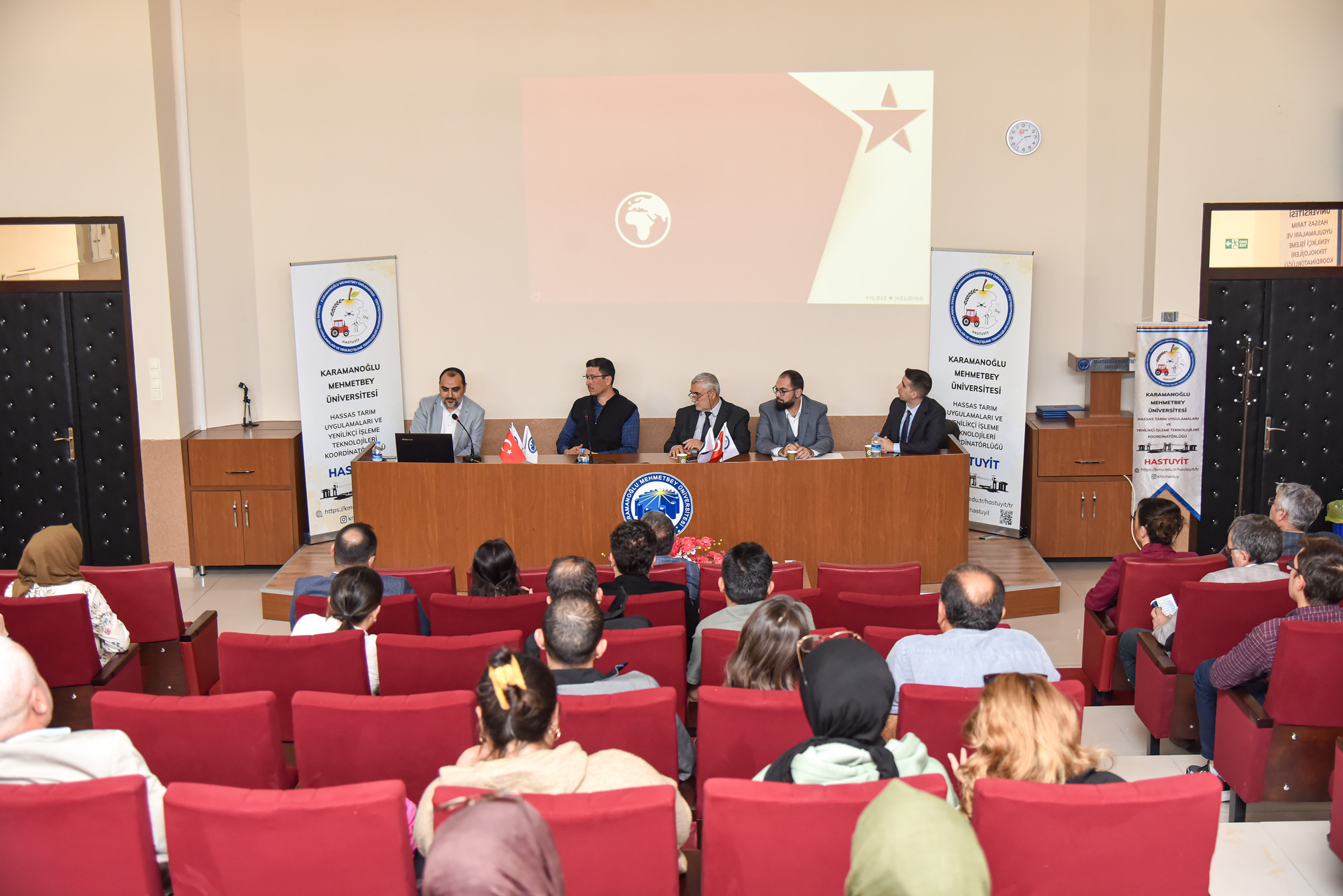 KMÜ Mühendislik Fakültesi Gıda Mühendisliği Bölümü, Gıda Geliştirme Uygulama ve Araştırma Merkezi (GIDAMER), Hassas Tarım Uygulamaları ve Yenilikçi İşleme Teknolojileri (HASTUYİT) ve Genç Ziraatçiler Öğrenci Topluluğu iş birliğinde gerçekleştirilen panele Rektör Prof. Dr. Mehmet Gavgalı, Mühendislik Fakültesi Dekanı Prof. Dr. Metin Sezer, davetliler, üniversitenin akademik ve idari personeli ile öğrenciler katıldı.Dünya Gıda Günü vesilesiyle düzenlenen panel Rektör Prof. Dr. Mehmet Gavgalı’nın açış konuşması ile başladı.“Helal kavramı sadece gıda ürünleri ile sınırlı kalmamakta geniş bir sektörel yelpazeye hitap etmektedir”Rektör Gavgalı, “Helal kavramı günümüzde sadece gıda ürünleri ile sınırlı kalmamakta; finans, tekstil, eczacılık ürünleri, kozmetik, lojistik ve turizm gibi oldukça geniş bir sektörel yelpazeye hitap etmektedir. Helal kavramının, ürünlerin üretiminden tüketiciye ulaşana kadar her aşamada ‘sağlıklı, hijyenik ve kaliteli’ olma özelliklerini de içermesi, bu alandaki farkındalığın artarak devam edeceğinin de bir göstergesidir. Yaklaşık iki milyar müslümanın yaşadığı ve bunların büyük bir kısmının da bilinçli olarak ne yiyip içtiğini bilmek istediği günümüzde Helal Gıda üretimi ile birlikte denetlenmesi ve pazarlanması büyük önem taşımaktadır. Ülkemizde helal gıda çalışmaları tüketici bilincinin artmasıyla orantılı olarak artmaktadır. Bunun gibi paneller de bu konudaki farkındalığın ve hassasiyetin artmasına sebep olacaktır.” ifadelerini kullandı.Rektör Gavgalı’nın konuşmasının ardından İstanbul Sabahattin Zaim Üniversitesi (İZÜ) Helal Gıda Ar-Ge Mükemmeliyet Merkezi Müdürü Prof. Dr. Hasan Yetim, KMÜ İslami İlimler Fakültesi Öğretim Üyesi Doç. Dr. Yusuf Erdem Gezgin, Helal Akreditasyon Dairesi Başkanı Erdem Başdemirci, Yıldız Holding Direktörü Numan Akkuş’un konuşmacı olarak katıldığı panele geçildi. “Bir gıda helal ise aynı zamanda temiz ve sağlıklıdır”Panelde ilk olarak söz alan Prof. Dr. Hasan Yetim, helal gıdalar, helal olmayan gıdalar ve şüpheli gıdalardan örnekler vererek şunları söyledi: “Helal kelimesi izin verilen, İslam’a uygun anlamındadır. Helal gıda; gıda güvenliği çerçevesinde İslami usullere uygun olarak üretilmiş, işlenmiş ve sunulmuş gıdalardır. Gıda güvenliği bakımından ürünün helal gıda olması için sadece İslam’a uygun olması değil aynı zamanda hijyenik, sağlıklı, güvenli, kaliteli, korumalı ve temiz olmalıdır. İslamiyet’te yiyecek ve içecekler konusundaki yasakların temel amacı hiç kuşkusuz insanların ruh ve beden sağlığının korunmasıdır. Bir gıda helal ise aynı zamanda temiz ve sağlıklıdır.”“İnsanın yaratılış kodlarına uygun olarak devam etmesi gerekiyor”Helal gıda konusunu fıkhi boyutta ele alan Doç. Dr. Yusuf Erdem Gezgin ise “İnsan bir kod üzerine yaratılmıştır. İnsanın bedensel ve ruhsal ihtiyaçlarının karşılanması bağlamında bazı ihtiyaçları vardır. İnsanın yaratılış kodlarına uygun olarak devam etmesi gerekiyor. Fıtrata uygun olan helaldir, uygun olmayan helal değildir. Gıdaların insanlar üzerinde bir psikolojik bir de biyolojik boyutu vardır. İnsanların ikrama hayır diyememesi ile de birlikte helallikten ziyade israf olup olmaması devreye giriyor. Çok tüketimle birlikte israf yönüyle de harama girmiş oluyoruz. Çok tüketim çok üretimi, çok üretim çok hammaddeyi, çok hammadde ise çevre kirliliğini ortaya çıkarıyor. Arz talep dengesinde bizlerin seçici olması üreticiler açısından farkındalığa neden oluyor. Her helal sağlıklıdır ya da her sağlıklı helaldir diyemeyiz. O yüzden gıdaların her anlamda helal olmasına dikkat ederken bunun vesvese boyutuna geçmesine de izin vermemeliyiz. ” dedi.Erdem Başdemirci de kamu hizmeti sunan Helal Akreditasyon Kurumu’nun çalışma prensibi ve kurumların belgelendirme süreci hakkında katılımcılara detaylı bilgiler aktardı.Panelde son olarak söz alan Yıldız Holding Direktörü Numan Akkuş, Yıldız Holding ve Gıda Güvenliği Kurulu, Hammadde Riskleri ve Helal Gıda Yönetim Sistemleri ile Helal Sertifikası Alım Süreçlerini anlatan bir sunum gerçekleştirdi.Program, katılımcıların panelistlere sorularını yöneltmeleri ve teşekkür belgelerini takdim edilmesiyle sona erdi.