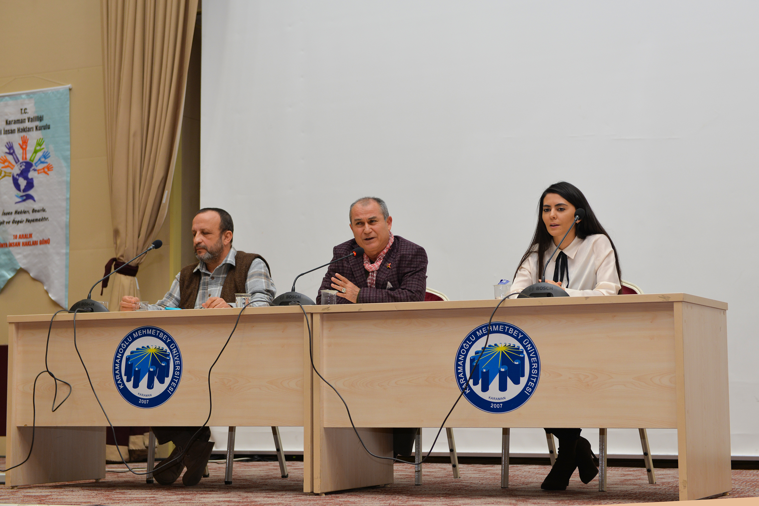 Karaman Valiliği İl İnsan Hakları Kurulu ile Karamanoğlu Mehmetbey Üniversitesi (KMÜ) Hukuk Müşavirliği tarafından 'İnsan Hakları' konulu panel düzenlendi.