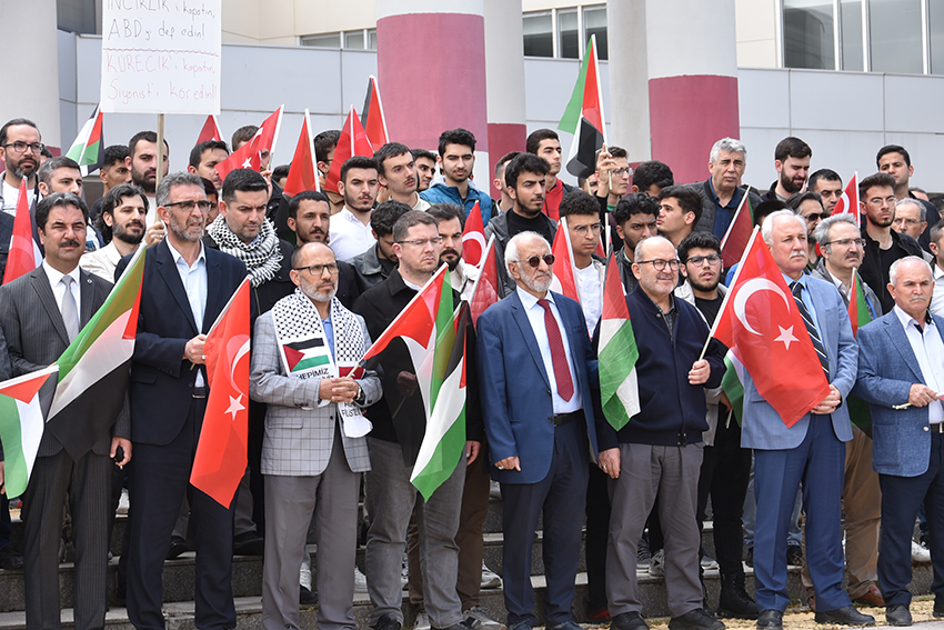 “Tarihi; katliamlarla, işgallerle, zulümlerle dolu siyonist ve terör devleti olan İsrail, 7 Ekim’den bu yana Gazze’ye yönelik soykırıma varan sınırsız, alçak, insanlık dışı ve ahlaksız saldırılarına devam ediyor. Gazze'de süregelen bu katliam ve bu direniş, doğruyu yanlıştan, haklıyı zalimden, izzeti zilletten ayırt eden bir furkan olarak karşımızda durmaktadır. Esfele safilini zorlayan siyonistler, sadece Filistin halkını değil, aynı zamanda insanî tüm ilke ve değerleri sistematik bir şekilde katletmektedir. İsrail vahşi katliamlarının yanında gıda, su ve temel insanî ihtiyaçları da birer silah olarak kullanmaktan çekinmemektedir. Gazze'deki bütün hastaneler, yollar, okullar, mabedler ve diğer meskenler yerle bir edilmiş, alt yapı tümüyle çökertilmiş, başta gıda ve su olmak üzere insani yardımların girişi engellenerek bombalarla öldürülemeyen siviller de adeta açlıktan ve hastalıktan ölüme mahkûm edilmiştir. Tüm dünyada akıl ve vicdan sahibi herkes, her yerde ve her fırsatta bu zulmün karşısında durmak, zulmün karşısında bir ses olmak için feryat ediyor. Sözde insan hakları savunucusu Avrupa, ABD ve destekçileri ateşkes çağrılarını engelliyor, İsrail’e etkin bir biçimde silah ve siyasi destek veriyor, akıl almaz bir tutum içinde Filistinlilerin haklarını savunan herkesi susturarak gözaltına alıyor. Bizler, Gazze’deki bu soykırımın ve işgalin durdurulmasını, bölgenin sahiplerine bırakılmasını, sınırda bekleyen bütün insani yardımların acilen bölgeye sevk edilmesini ve Gazze’nin en kısa zamanda yeniden imar edilmesini istiyoruz. Yüzyılın bu en büyük katliamını ve soykırımını yapanları ve onları destekleyenleri kınıyor, bu soykırımı durdurmak için vicdanının sesini dinleyen dünya akademisyenleri ve öğrencilerinin yanında olduğumuzu açıklıyoruz.”