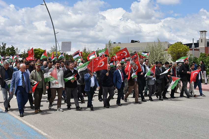 KMÜ Öğrenci Toplulukları tarafından organize edilen ‘Filistin'e Destek Sizyonizm'e Lanet’ yürüyüşü Merkez Kütüphanesi önünde başladı. Yürüyüşe Rektör Yardımcısı Prof. Dr. Mahmut Baykan, Genel Sekreter Ahmet Tüfekci, üniversite personeli ve çok sayıda öğrenci katıldı.