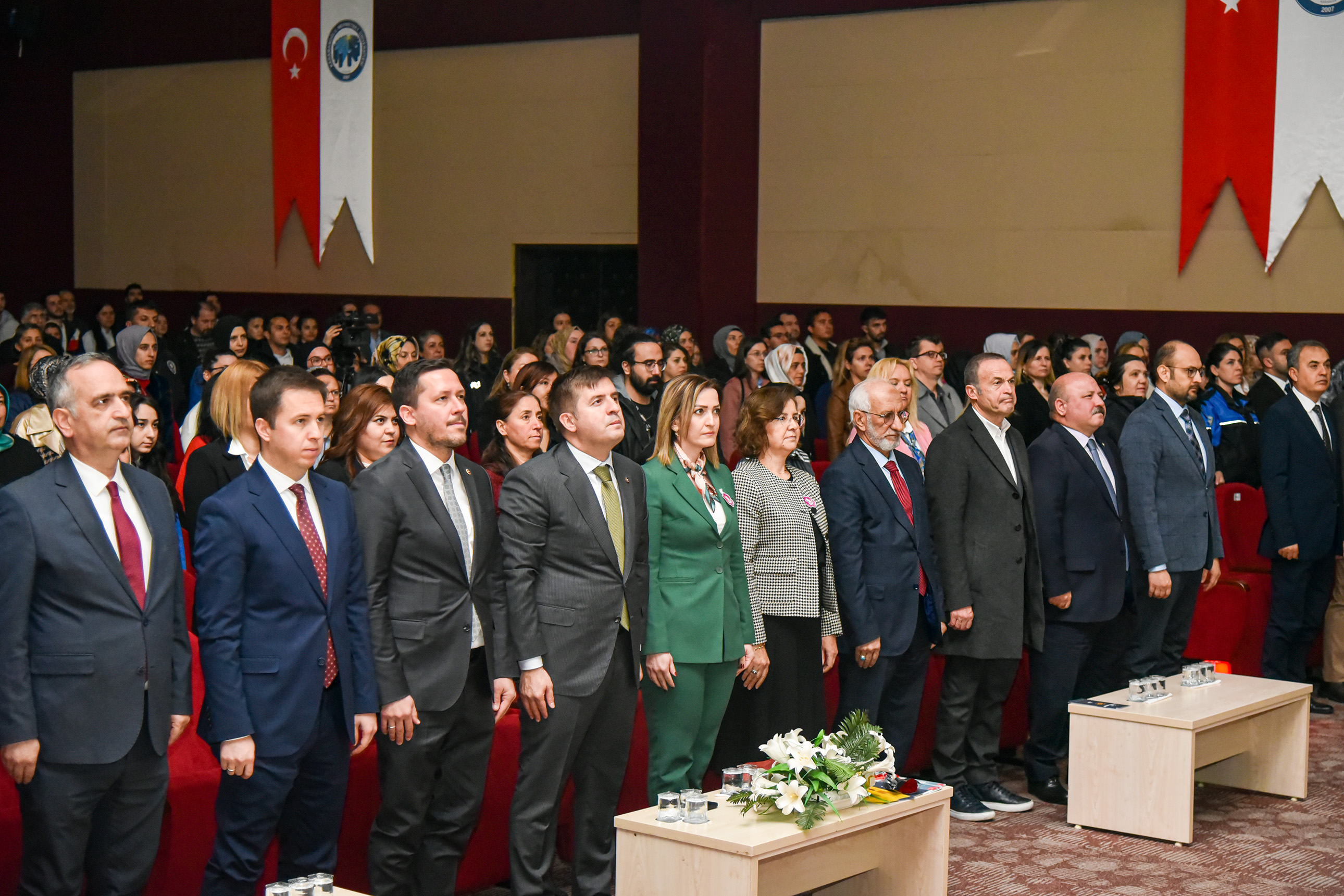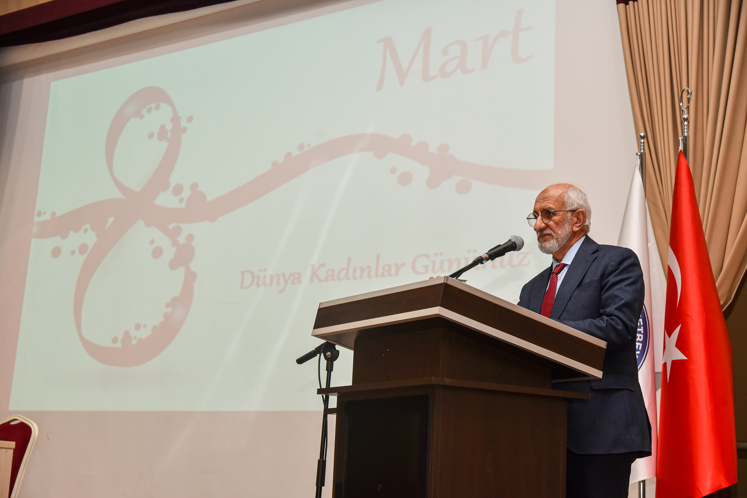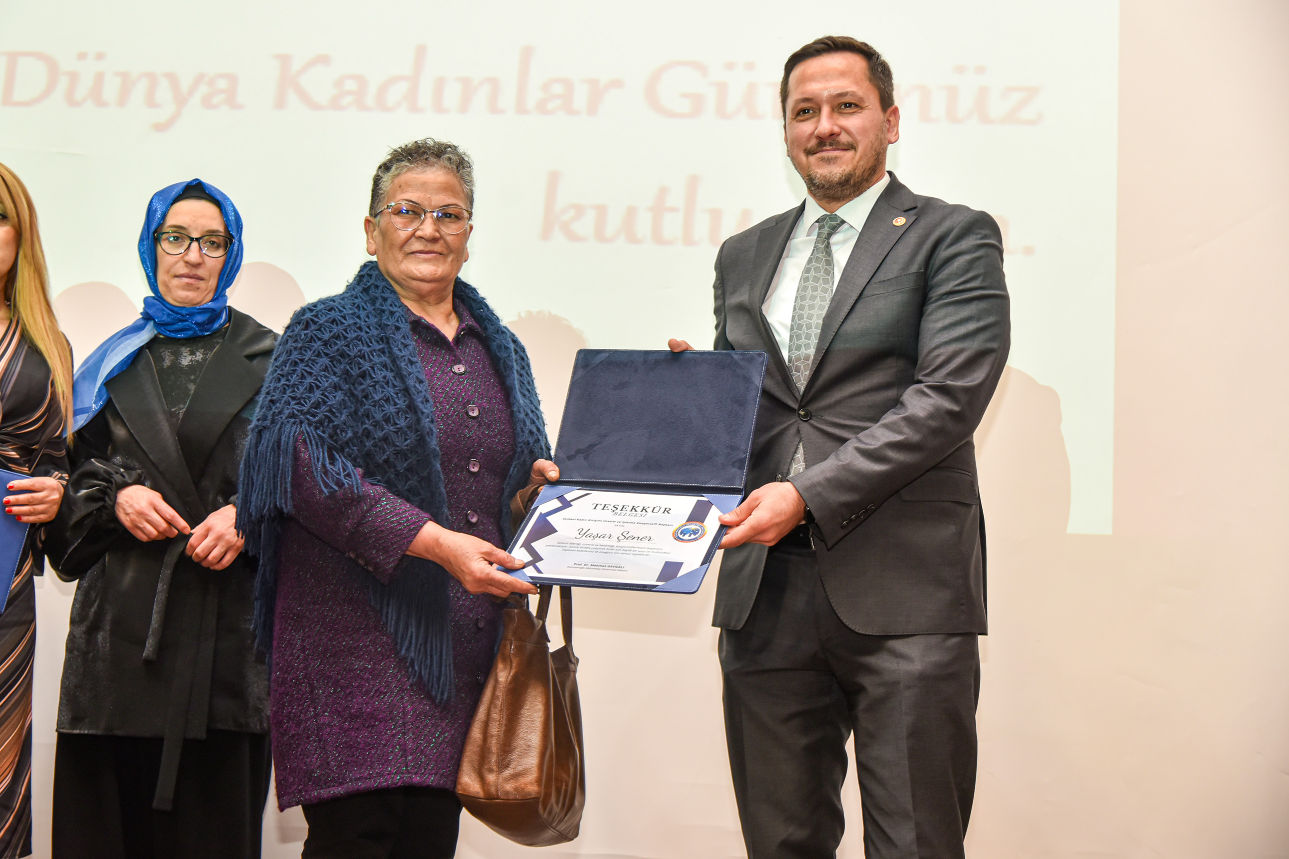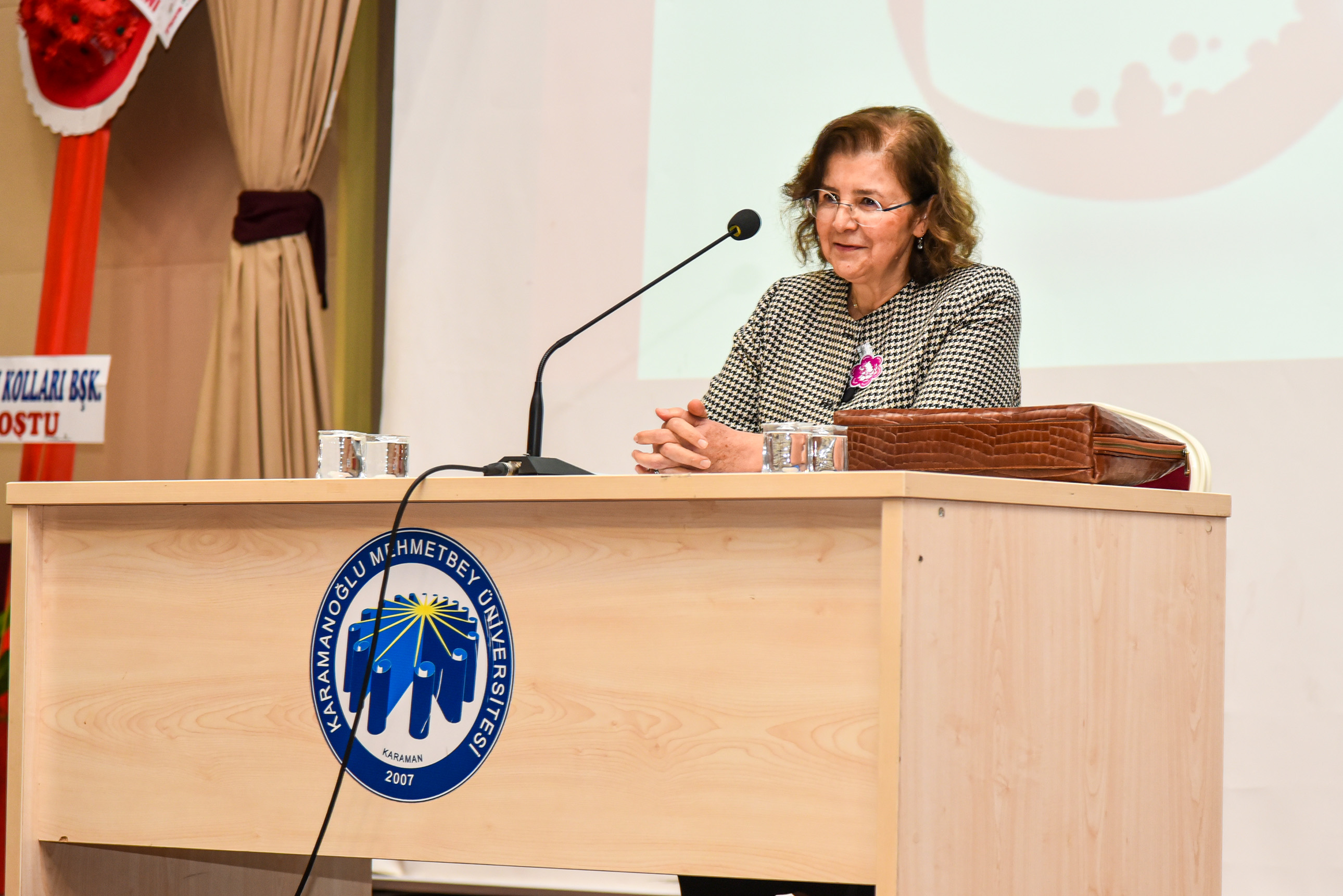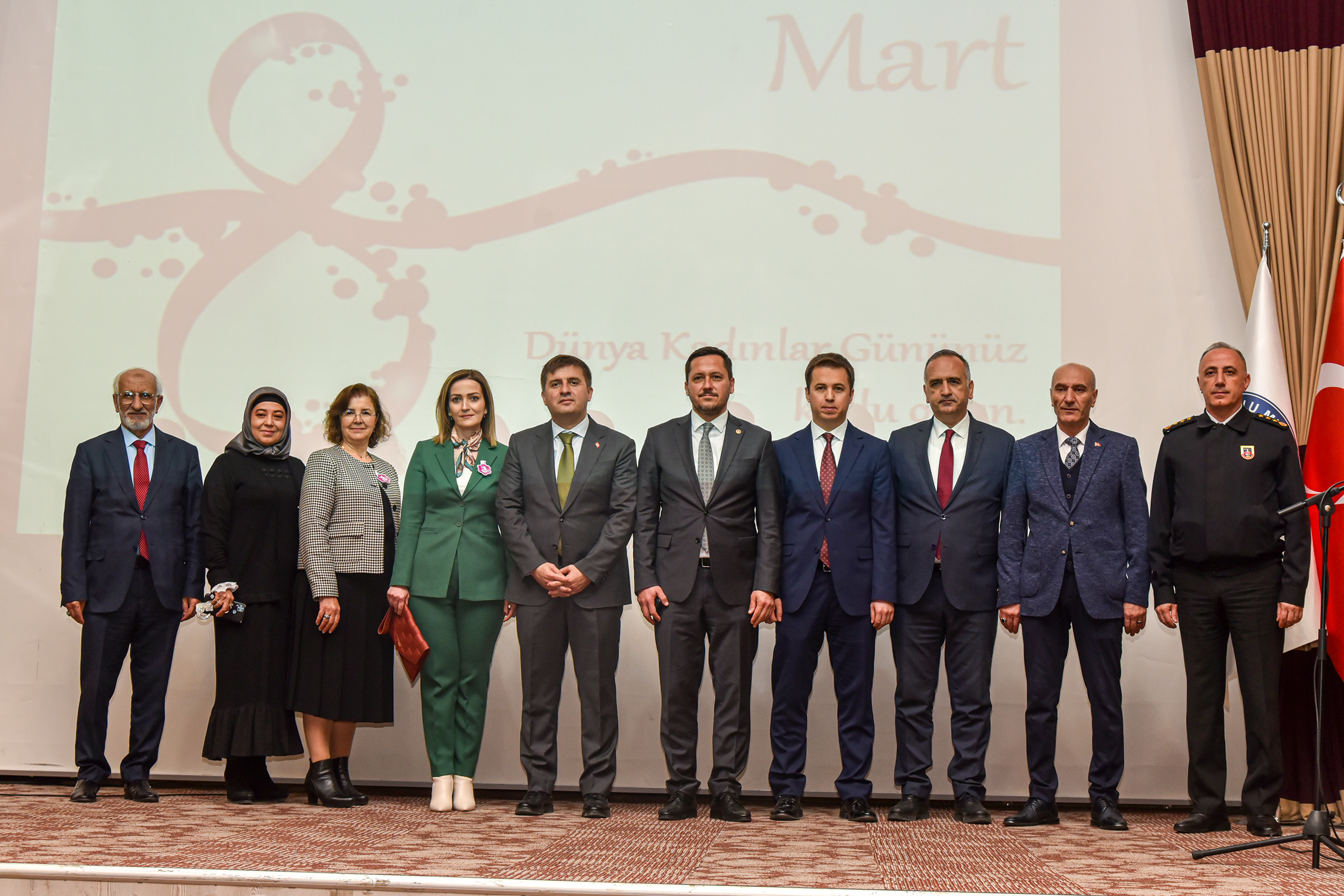 8 Mart Dünya Kadınlar Günü dolayısıyla düzenlenen konferansa Vali Hüseyin Engin Sarıibrahim ve eşi Hatice Sarıibrahim, Karaman Milletvekili Av. Selman Oğuzhan Eser, Cumhuriyet Başsavcısı Ali İhsan Akdoğan, KMÜ Rektör V. Prof. Dr. Mahmut Baykan, il ve üniversite protokolü, davetliler ve öğrenciler katıldı.Saygı duruşunda bulunulması ve İstiklal Marşı’nın okunmasıyla başlayan konferansta konuşan Kadın ve Aile Araştırmaları Uygulama ve Araştırma Merkezi Müdürü Dr. Öğretim Üyesi Hasibe Ceyhan, Türkiye’de ve Karaman özelinde çalışma hayatında kadın istihdamı verilerini paylaşarak şunları söyledi: “Dünyada ve Türkiye’de sosyal hayata, demokrasiye, ekonomiye, siyasete ve STK’lara kadınlarımızın ne kadar katkı verdiği ortadadır. Bu kadar emek varken Türkiye genelinde kurumlar arasında kadın istihdamı yeterli oranda değil. Ayrıca kadınlarımız karar mekanizmalarında ise oldukça az sayıda bulunmaktadır. Cennetin ayakları altında olduğu kadınlarımızın için her türlü fiziksel ve ruhsal şiddetten bir an önce kurtulmaları için hep birlikte mücadele etmeliyiz.“Rektör V. Prof. Dr. Mahmut Baykan ise “Ülkemizin gelişmesinde büyük bir katkıya sahip olan kadınlarımız toplumsal hayatımızın temel yapı taşını oluşturmaktadır. Kadınlarımız; emekleri ve çabalarıyla toplumumuzu güçlendiren, varlıklarıyla dünyamıza değer katan, sevginin, merhametin ve iyiliğin kaynağıdır. Tarihimiz boyunca ülkemizi en ileri seviyeye taşıyan, her alanda mücadele veren kadınlarımızı yürekten kutluyorum.” dedi.Konuşmaların ardından Ankara Bölge Adliye Mahkemesi (BAM) 1.Hukuk Dairesi Başkanı Zehra Öksüzoğlu’nun verdiği konferansa geçildi.Öksüzoğlu, 8 Mart Dünya Kadınlar Gününün tarihsel süreci, yargıda kadın olmak, kadın hakları konusunda Türk hukuku mevzuat kaynaklarından bahsetti.Ökszüoğlu, “Kadın ve erkek haklardan yararlanma konusunda eşittir ve öyle değerlendirmek gerekir. Kadın ve erkek birbirinin önünde veya arkasında değil yan yana olmalıdır. Sağlıklı toplumlar, sağlıklı ailelerden oluşur. Adalet Bakanlığımız kadın hakları konusunda çalışmalarına devam ediyor. Türkiye’de ve dünyada kadınların yüzde 39’u şiddete uğruyor. Şiddetin tekrarını önlemek çok önemlidir. Şiddeti sıfıra indirmek mümkün değil ama azaltmak için gerekli tedbirleri almak zorundayız. Adliyelere gelmeden bu işi halletmeliyiz. Hep birlikte çalışıp, gayret edip ülkemizi insanımızı daha iyi hale getirmeliyiz. Bunun için de herkes evinin önünü süpürmelidir.” şeklinde konuştu.Program, hediye ve belge takdimlerinin ardından sona erdi.