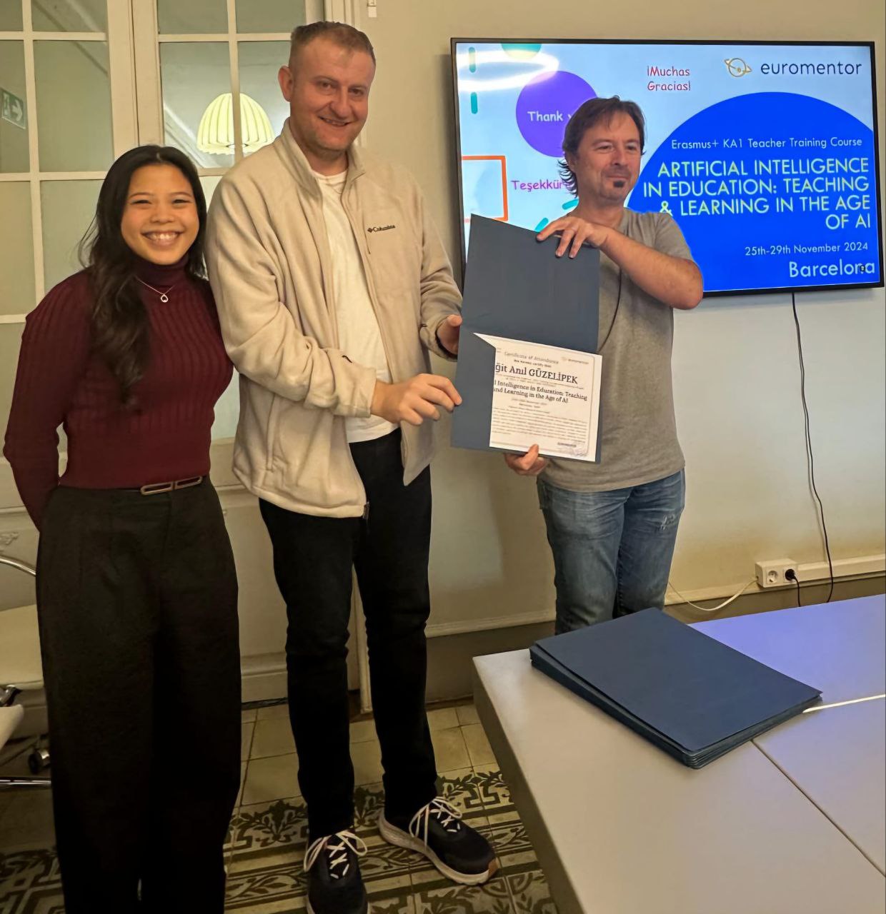 Karaman İl Milli Eğitim Müdürlüğü'nün koordinasyonunda ‘Yetişkin Eğitimi Akreditasyonu’ kapsamında gerçekleştirilen ‘Eğitimde Yapay Zeka: Yapay Zeka Çağında Eğitim-Öğretim’ konulu kursa KMÜ öğretim elemanlarından oluşan heyet de katıldı. KMÜ Sürekli Eğitim Uygulama ve Araştırma Merkezi’nin (SEM) konsorsiyum üyesi olduğu yetişkin eğitimi başlıklı Erasmus projesi çerçevesinde İspanya’nın Barselona şehrinde düzenlenen uluslararası organizasyona, KMÜ İktisadi ve İdari Bilimler Fakültesi Dekanı ve SEM Müdürü Prof. Sefa Usta, Dekan Yardımcısı ve SEM Müdür Yardımcısı Doç. Dr. Seher Demirkaya, Dış İlişkiler Genel Koordinatörü Doç. Dr. Yiğit Anıl Güzelipek ve Kazım Karabekir Meslek Yüksekokulu Müdür Yardımcısı ve SEM Müdür Yardımcısı Öğr. Gör. Dr. Abdulbaki Pınar katıldı. Konsorsiyum üyesi olarak üniversite adına kursa katılan akademisyenler, İspanya’nın önde gelen eğitim kurumlarından biri olan Euromentor’da yapay zekanın eğitime entegrasyonu konulu bir eğitim aldı. Eğitim süresince yapay zeka teknolojilerinin eğitim sistem ve politikalarına uygulanabilirliği, eğitimde dijital dönüşüm süreçleri ve yenilikçi öğrenme yöntemleri gibi konular ele alındı. Program, yapay zekanın eğitimdeki rolüne dair teorik bilgilerin yanı sıra pratik uygulamalara da yer vererek katılımcılara önemli bir vizyon kazandırdı.Etkinlik kapsamında Barselona’daki Pompeu Fabra Üniversitesi (UPF) ile potansiyel akademik iş birlikleri üzerine görüşmeler gerçekleştirildi. Görüşmelerde, yapay zeka temelli projelerde ortak çalışma fırsatları ve öğrenci değişim programları gibi konular görüşüldü. KMÜ adına kursa katılan akademisyenler, etkinliğin hem yapay zeka temelli eğitim politikalarının geliştirilmesi hem de uluslararası akademik iş birliklerinin güçlendirilmesi açısından oldukça verimli geçtiğini belirtti.