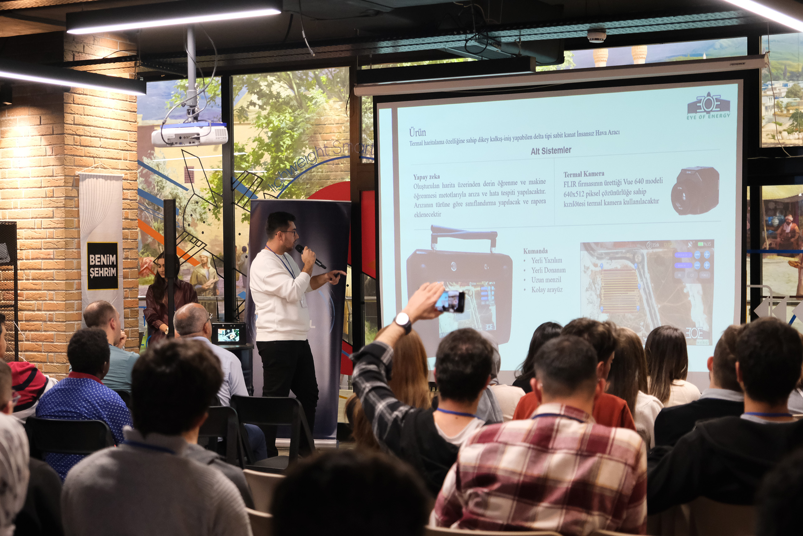Mühendislik Fakültesi Elektrik-Elektronik Mühendisliği Bölümü öğrencileri, Enerji Piyasası Düzenleme Kurumu (EPDK) Ar-Ge Fonu ile desteklenen, Meram Elektrik Dağıtım A.Ş. ve Girişim Merkezi iş birliği ile gerçekleştirilen Enerji Teknolojileri Atılım Programının (E.TAP) üçüncü aşaması olan ’MEDAŞ Hackathon’a katılarak birincilik ödülüne layık görüldü. Elektrik dağıtım sektörüne yönelik sorunların çözümleri için iş fikri geliştirilen MEDAŞ Hackathona üniversitelerin mühendislik bölümünde okuyan öğrencileri katıldı. KMÜ Otonom Öğrenci Topluluğu ekip lideri Ahmet Bilal Kıratlı ve üyeleri Hasan Sarıkavak ile Halis Gürbüz de yarışmaya geliştirdikleri ‘Eye Of Energy’ projesi ile katıldı.Öğrencilerin Enerji Sektörüne Yönelik Çözüm, Dijitalleşme Çözümleri, Haberleşme Teknolojileri Çözümleri ve Hizmetin Etkinleştirilmesi Çözümleri ana başlıklarında geliştirdikleri iş fikirleri jüri tarafından değerlendirildi. Değerlendirmelerin ardından KMÜ öğrencileri birinci oldu.“Güneş enerjisi santrallerindeki verim artacak”Yarışmanın ardından açıklamalarda bulunan ekip lideri Ahmet Bilal Kıratlı, “Güneş enerjisi santrallerinde termal haritalama ve yüksek gerilim hatlarında arızalı iletkenleri insansız hava aracı ile tespit etmek için bu projeyi geliştirdik. Güneş enerjisi santrallerinde güneş panelleri kullanıma bağlı olarak arızalanabiliyor. Bu panellerin değişmemesi halinde verim ciddi bir şekilde düşüyor. İnsansız hava aracı ile güneş enerjisi santrallerinde termal haritalama yaparak arızalı panelleri tespit ediyoruz ve santraldeki verimi arttırıyoruz. Projemiz 6 ay içerisinde seri üretime hazır hale gelecek.” dedi.