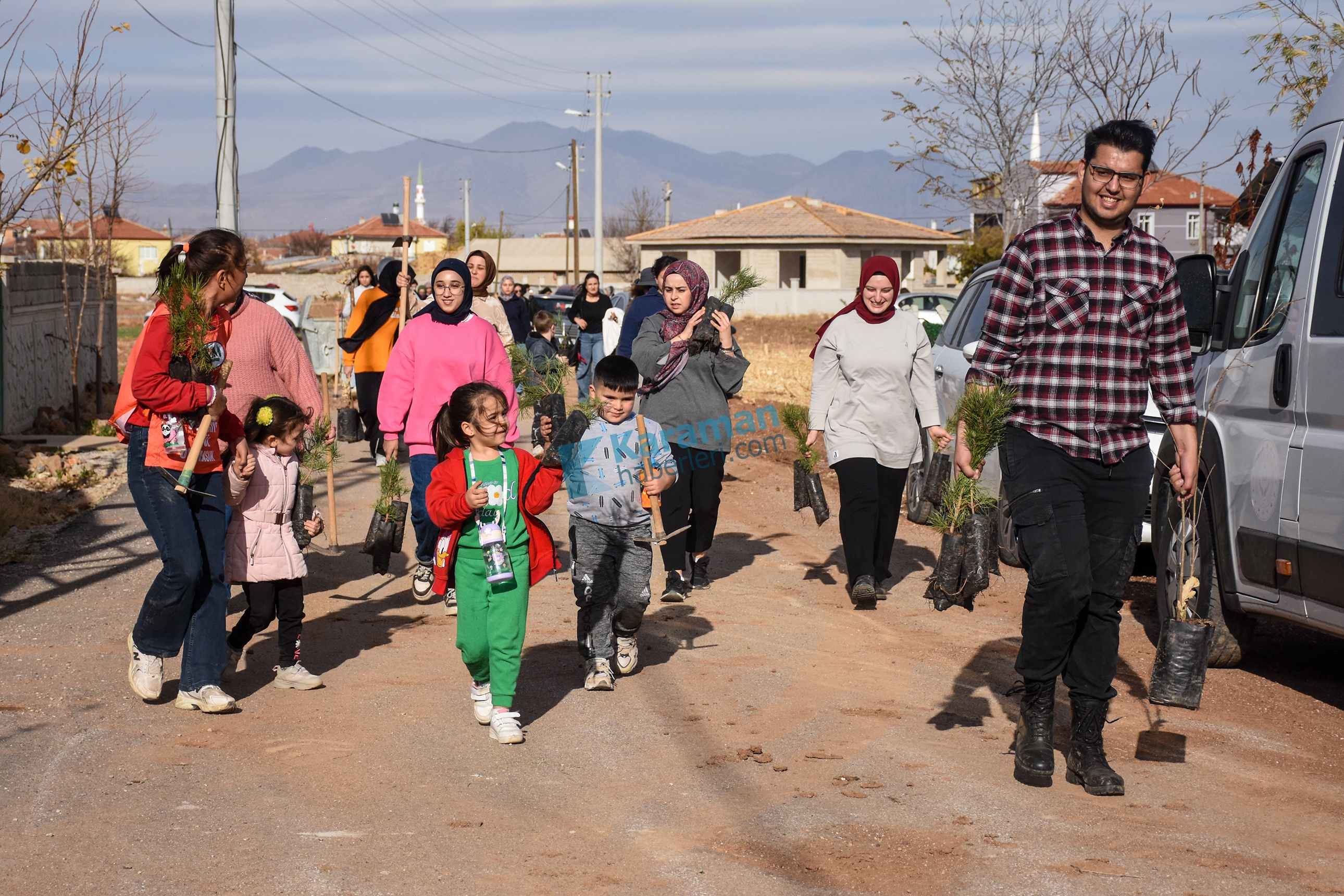 Karamanoğlu Mehmetbey Üniversitesi öğrencileri ve İbrahim Bey İlkokulu ana sınıfı öğrencileri birlikte fidan dikti.