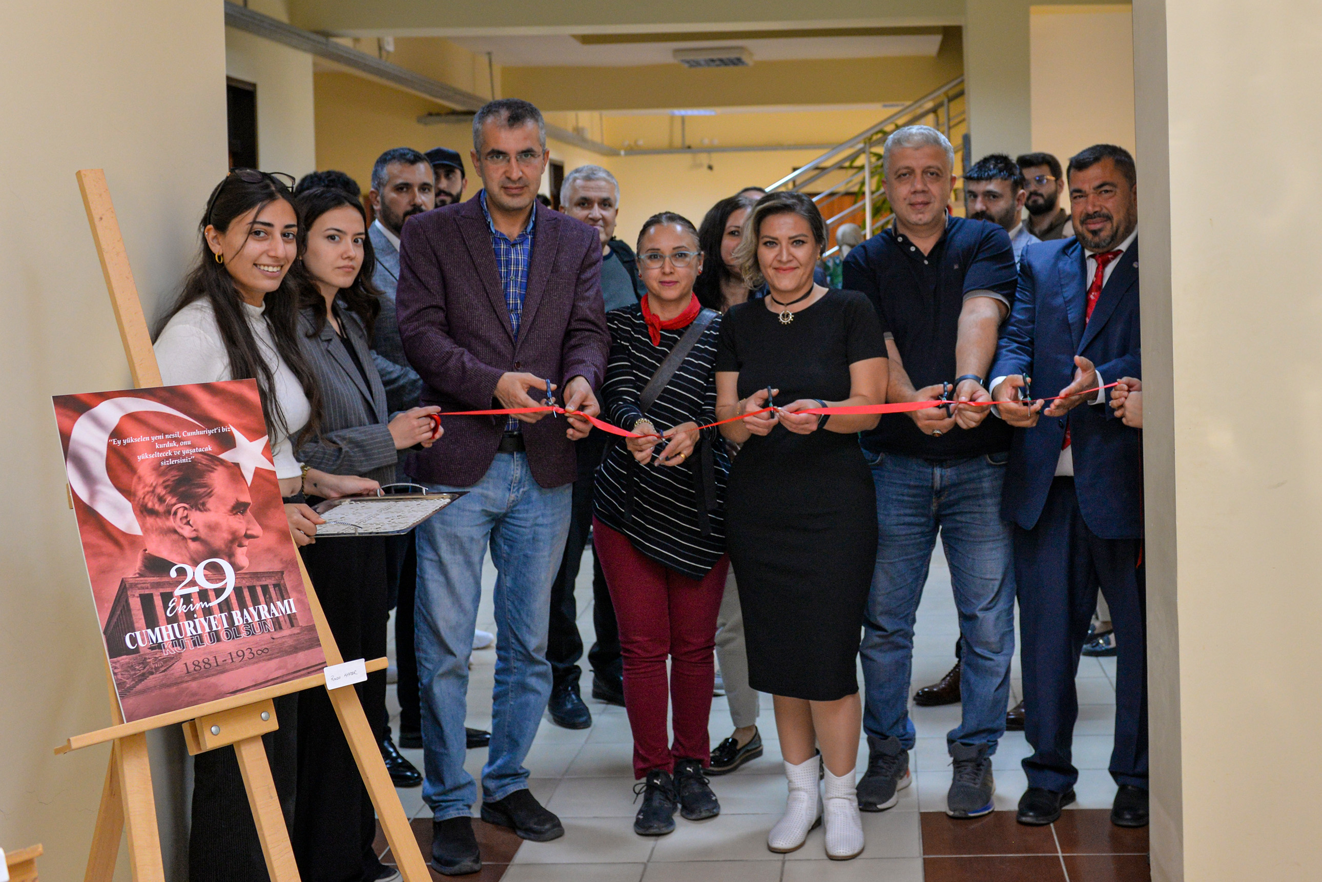Teknik Bilimler MYO fuaye alanında düzenlenen serginin açılışı Teknik Bilimler MYO Müdürü Prof. Dr. Oktay Talaz, yüksekokul personeli ve öğrenciler tarafından yapıldı.Küratörlüğünü Öğr. Gör. Özgül Yiğit’in yaptığı ‘100. Yıl Coşkusu’ isimli sergi de Tasarım Bölümü Grafik Tasarımı Programı öğrencilerinin yaptığı 50’i aşkın tasarım sanatseverlerle buluştu. Cumhuriyetimizin 100. Yılında öğrencilerin özverili çalışmaları ile hazırlanan sergi, 1 Kasım 2023 tarihine kadar ziyaret edilebilecek.