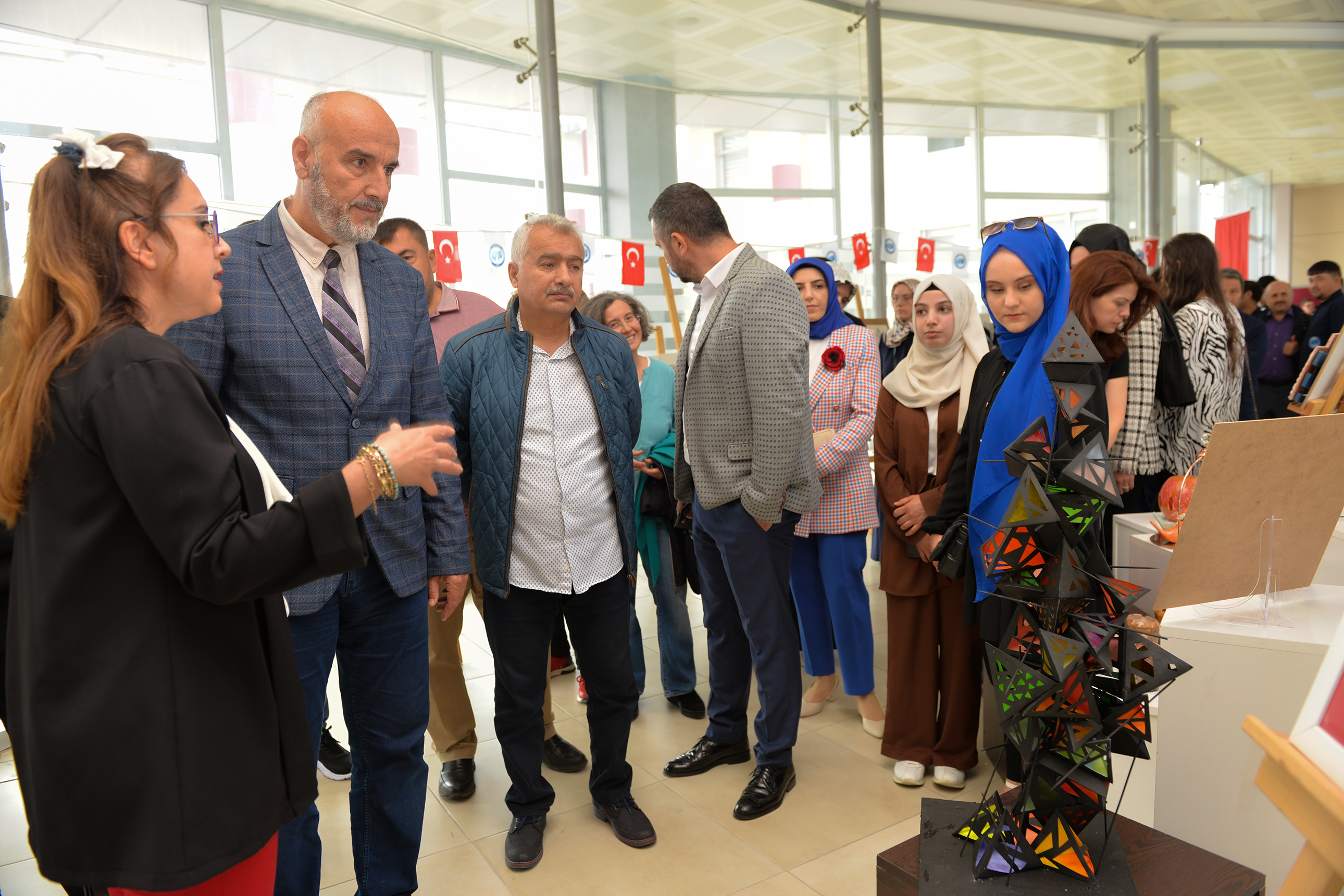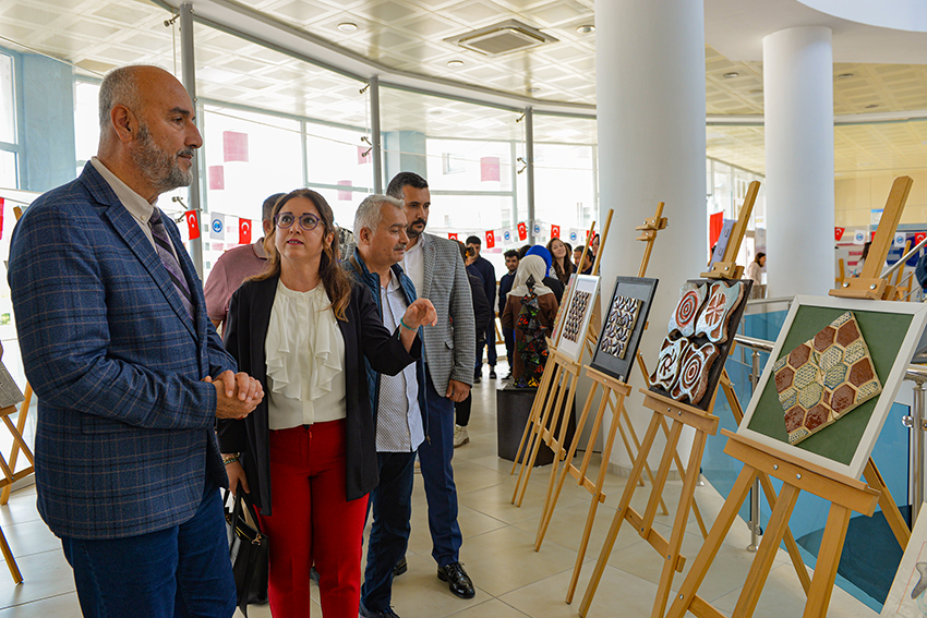 TBMYO El Sanatları Bölümü öğrencilerinin iki yıl boyunca hazırladıkları eserler sanatseverlerin beğenisine sunuldu. Sağlık, Kültür ve Spor Daire Başkanlığı fuaye alanında açılışı gerçekleştirilen sergiye Rektör Yardımcısı Prof. Dr. Münir Oktay, Teknik Bilimler Meslek Yüksekokulu Müdürü Prof. Dr. Oktay Talaz, üniversitenin akademik ve idari personeli ile öğrenciler ve davetliler katıldı.Öğrencilerin seramik, keçe, tezhip, örgü ve yüzeysel tasarım öğelerinden oluşturdukları 150’yi aşkın özgün eserin yer aldığı sergi, 16 Haziran’a kadar ziyaret edilebilecek.