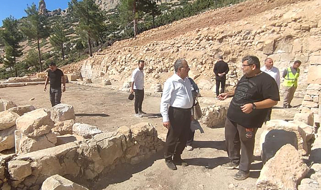 Rektör Gavgalı, Ermenek ziyaretleri kapsamında Ermenek Yukarı Çağlar Köyü’nün kuzeyindeki Hisarkaya ya da Sultan Tahtı olarak isimlendirilen yamaçlarda yer alan Sbide Antik Kenti, dünyanın üç büyük mağarasından biri olan Maraspoli Mağarası, Karamanoğulları için önemli bir kale olan Ermenek Firan Kalesi ve Santral Park’ı da ziyaret ederek tarihi yapılar hakkında yetkililerden detaylı bilgi aldı.Ermenek İlçesi’nin tarihi ve kültürü ile dünyada önemli bir yere sahip olduğunu ifade eden Rektör Gavgalı şunları söyledi. “Ermenek ilçemiz, sahip olduğu coğrafi yapısı, tarihi ve kültürel zenginlikleri ile dünyanın önemli turizm bölgelerindendir. İlçede bulunan Maraspolis Mağarası dünyanın üç büyük mağarasından biridir. Mağaranın ne kadar uzun olduğu hala gizemini korumaktadır. Bu önemli mağara içerisinde bulunan yeraltı nehrinden ilçenin içme suyu ihtiyacı karşılanmaktadır. Ermenek ilçemizin bir başka tarihi öneme sahip olan değeri Firan Kalesi’dir. Karamanoğulları Beyliği’nin önemli bir kalesi olan Firan Kalesi Evliya Çelebi’nin ‘Seyahatname’ isimli kitabında da yer almaktadır. Sbide Antik Kenti’nde ise kazı çalışmaları halen devam etmektedir. Zengin su kaynaklarına sahip olan kentte, ikili ve üçlü lahitlerin yer aldığı mezar odaları, aslan kabartmalı kaya lahitleri, kentin doğusunda yer alan üç nefli bazilikal planlı kilise ile vaftizhane kentte karşılaşılan önemli mimari yapılardır.”