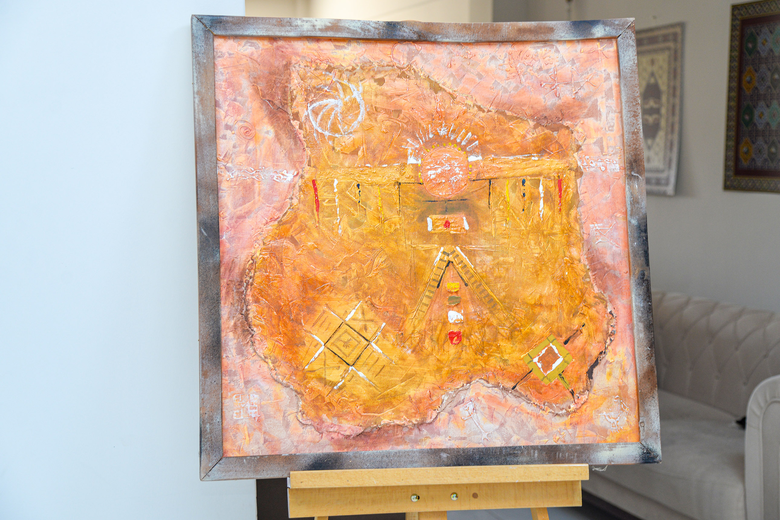 Türk Kültürünün ilk izleri niteliğinde olan sembollerin farklı ölçülerde tuval, deri ve davul üzerine karışık teknik çalışmaları ile hazırlanan sergide 25 eser yer alıyor.