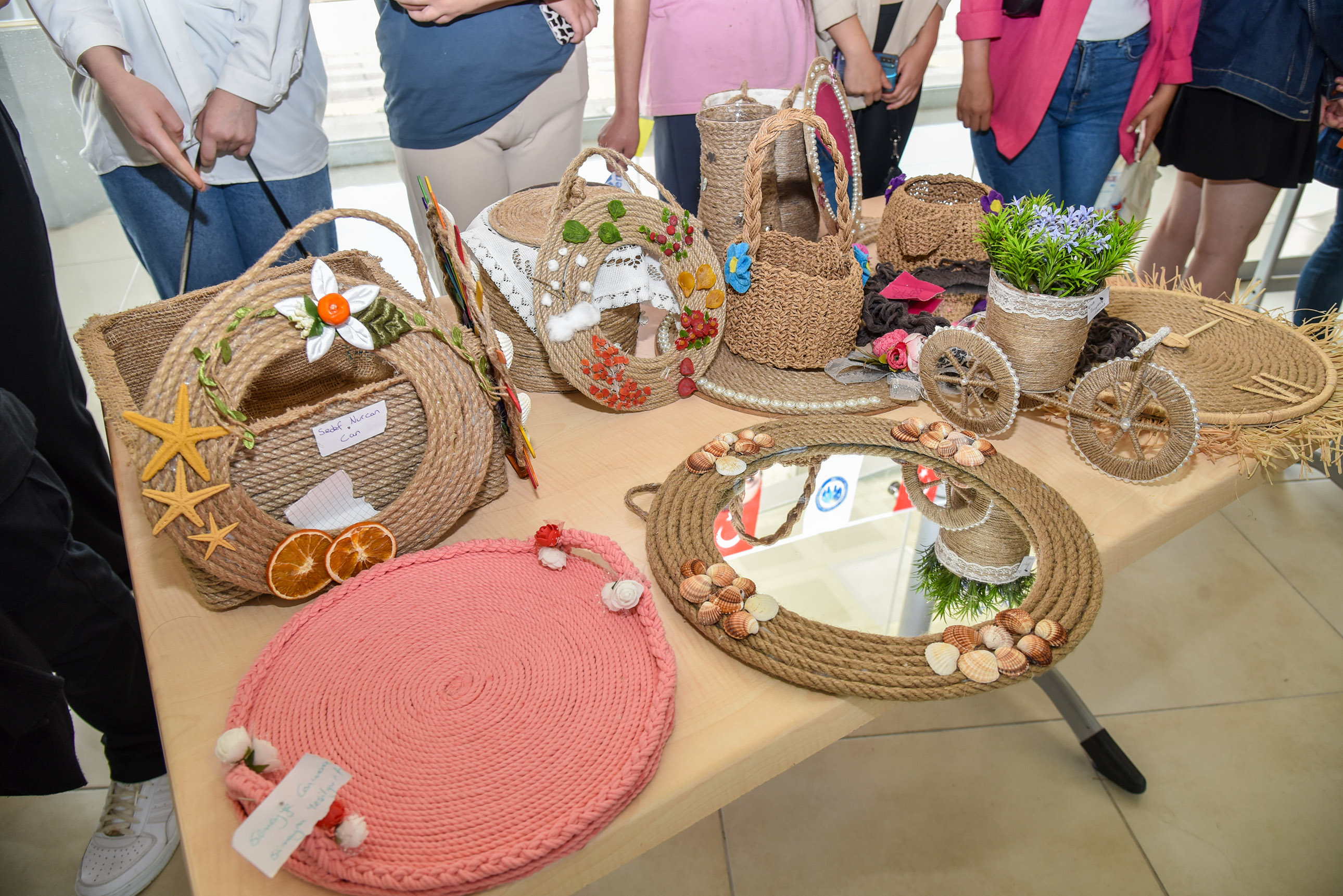 Sağlık Hizmetleri Meslek Yüksekokulu Öğretim Elemanları Öğr. Gör. Dr. Gülsüm Kehribar ile Öğr. Gör. Dr. Mehmet Selçuk’un akademik danışmanlığında öğrenciler; geri dönüşüm, ahşap, hasır, boncuk, yağlı boya, dikiş ve nakış ile engelli ve yaşlıların aktivite yapabileceği pek çok ürün tasarladı.