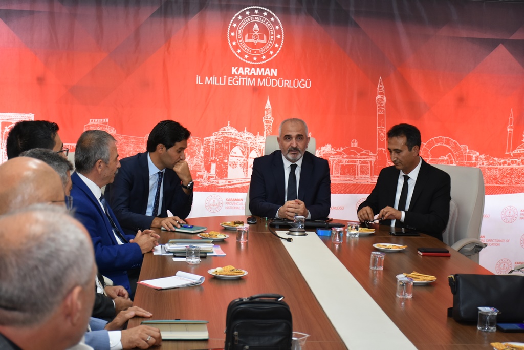 2024-2025 eğitim öğretim yılı hazırlık çalışmaları değerlendirmek ve Millî Eğitim Bakanlığınca bu yıl, okul öncesi, ilkokul 1, ortaokul 5, ortaöğretim hazırlık ve 9 uncu sınıf düzeylerinde uygulanacak olan Türkiye Yüzyılı Maarif Modeline ilişkin istişarelerde bulunmak üzere Karaman’a gelen Millî Eğitim Bakanlığı Meslekî ve Teknik Eğitim Genel Müdürü Ali Karagöz, bir dizi ziyaretlerde bulunarak öğrenci ve öğretmenlerle bir araya geldi.