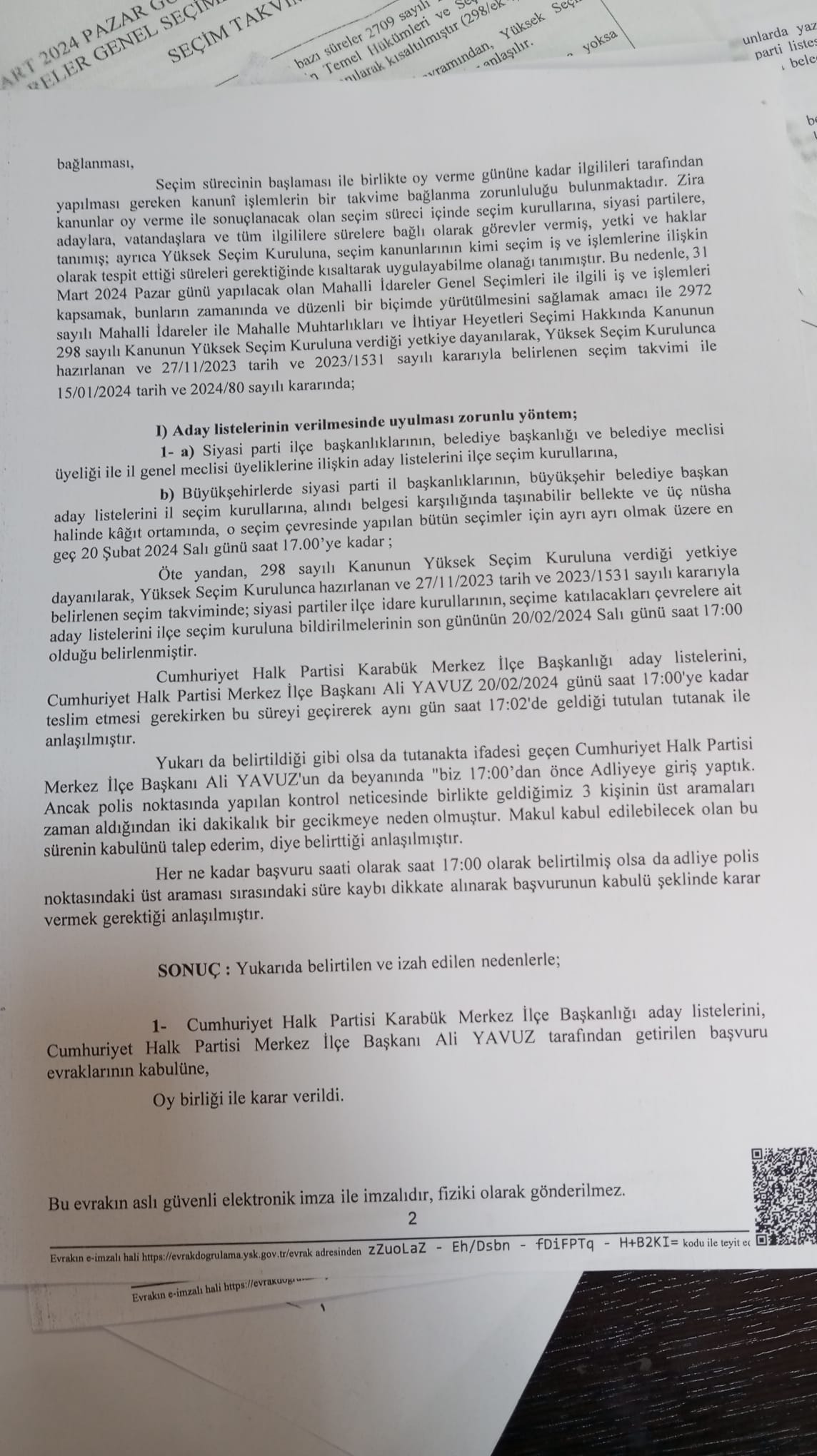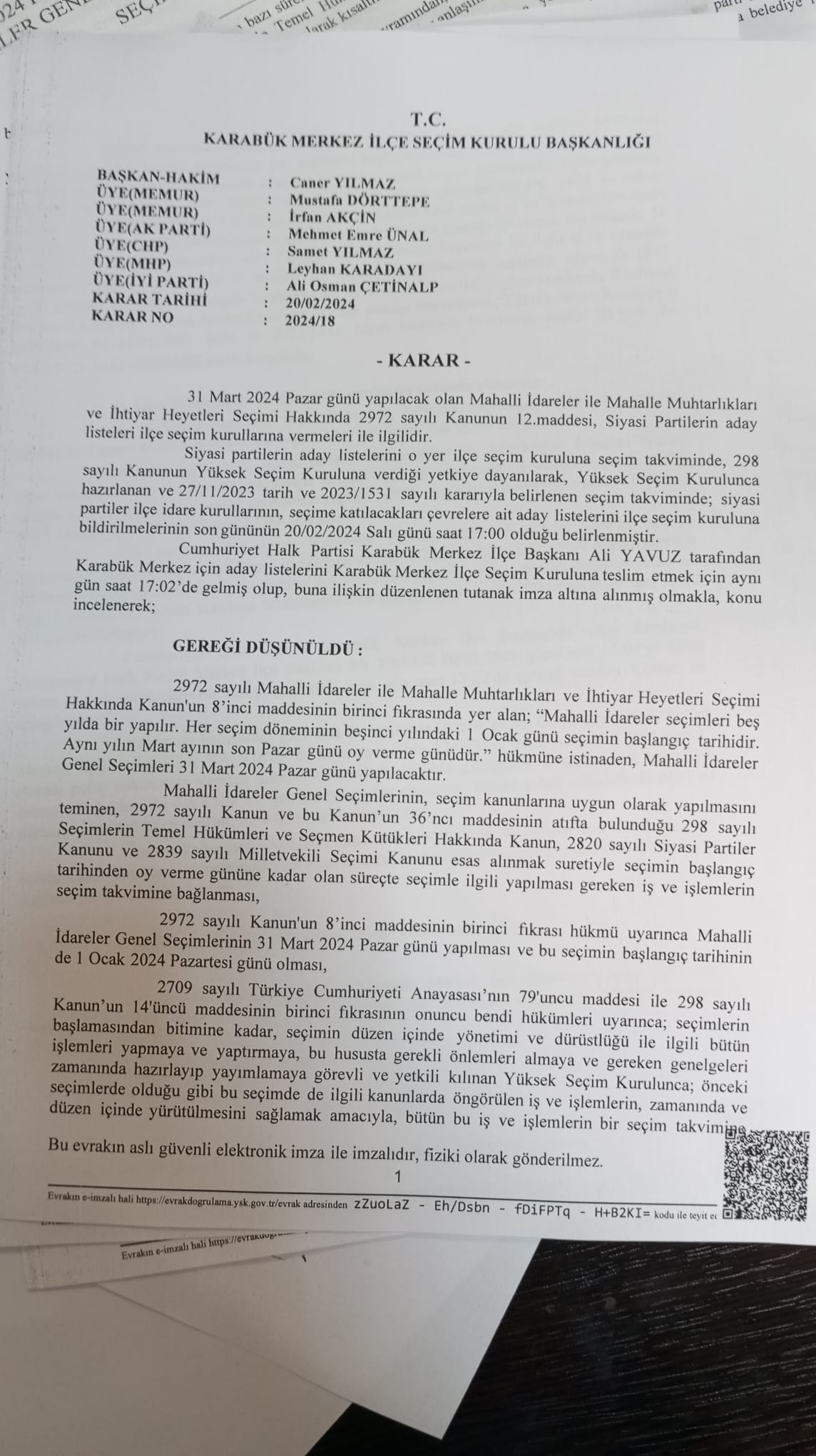Adaylığını aylar öncesinden duyuran Büyük Birlik Partisi Karaman Belediye Başkan Adayı Mesut Soyfidan, YSK'ya yapılacak başvuru için son gün olan 20 Şubat 2024 tarihinde (dün) gitti. Soyfidan, başvuru dosyasını saat 17:01'de teslim ettiği için mevzuat gereği başvurusu kabul edilmedi.Soyfidan ve ekibinin hukuki mercilere olayı taşıyarak sorunu çözmek için başvurdu. Sürecin olumsuz tamamlanmasının ardından ise Soyfidan süreci basın mensuplarına bütün detayları ile anlattı. Soyfidan'ın açıklamaları şu şekilde:"31 Mart 2024 Yerel seçimlerin de Büyük Birlik Partisi olarak yerel seçimlere katılma kararı almıştık.Bu süreci hem saha içinde hem saha dışında devam ettirdik. Büyük baskı ve tehditler almamıza rağmen kimseye boyun eğmeden yolumuza devam ettik.Nihayetinde belli yönetimsel sebepler ve Taşeli bölgesi adayları ile ilgili sorunlar oluştu. Bu problemleri çözme noktasında ekip olarak hareket edemedik ve zaman yarışına takıldık.Listemizi hazırlayıp 16:30 da parti binamızdan çıktık. Beraberimde 3 kişi ile birlikte kaza yaptık. Olayın şoku ile hemen yola çıkmamıza rağmen adliye binasına girişte seçim kurulu görevlisini cep telefonundan aradım. Nihayetinde secim kurulu kapısına geldiğimizde bizim saatimiz 16:59 du. İl seçim kurulu müdüre hanım cep telefonu ile konuşuyordu, saatinin 17:01 olduğunu iddia etti, Evraklarımızı teslim ettik. Alındı belgesine 17:01 yazdı. Bizde binaya girişimizi ve seçim kurulunu arama kaydı ile birlikte tutanak istedik ve tutanağı bize karşılıklı imzalayarak tarafımızca aldık. Yapılan kaza resimlerini de kendilerine sunduk.Nihayetinde 21.02.2024 Çarşamba günü sabah seçim kuruluna gittiğimiz de Karabük Merkez ilçe seçim kurulunda buna benzer bir olay olduğu 20.02.2024 tarih ve 2024/18 sayılı kararında 20.02.2024 tarihinde saat 17:02’de teslim etmesine rağmen kabul edilmiştir. Burada bir çelişki vardır.Her ne kadar başta bizim kusurumuz olsa da Başka bir ilde CHP ye bile itiraz edilmezken burada Cumhur İttifakı ortakları tarafından itiraz edilmiştir. Seçmene ipotek konulmuştur. Seçmenin tercih hakkı engellenmiştir. Süreci titizlikle takip ettik, ama itirazların önüne geçemedik, seçim kaybetme korkusuna kapılanlar canla başla mücadele etti. Ama biz halkın takdirine bırakıyoruz.2009 Yerel Seçimleri öncesinde de Şehit Liderimiz Rahmetli Muhsin Yazıcıoğlu da hain bir suikasta uğrayarak engellenmişti. Bize de saniye farkını bahane ederek, seçim kuruluna baskı faktörü uygulanmıştır. Bizi seçime katmamak için her yol denenmiştir. Bu süreçte bize yapılan baskı ve tehditlere boyun eğmedik, eğmeyeceğiz. Burada talihsiz olan bir olay var. Sizlere de sunacağım resmi belgede imzası bulunan partileri destekleyeceğim yönünde dedikoduları bitirecektir. Ak Parti İl Başkanı tarafından arandım, yapacağımız bir şey var mı diye sordular; bende cevaben itiraza yetkili kendi yönetim kurulu üyen Mustafa Kale bize itiraz etti şirinlik yapmanıza gerek yok dedim. Kendilerinden haberleri yok, demek ki il başkanından habersiz kafasına göre çalıp oynuyor vatandaş.Karamanda Cumhur İttifakına gölge düşürülmüştür. Seçmen gereken cevabı sandıkta en iyi şekilde verecektir.Vatandaşa tiyatro oynayanları seçim zamanı karabatak gibi sahneye çıkanları, sporu seçim malzemesi yapanları, eli boş olup proje çalanları halkımız unutmayacaktır.Geçtiğimiz günlerde şehrimizle ilgili ihtiyaçları ve eksikleri paylaşmıştık. Gördük ki bazıları yapılmaya başlandı. Daha seçilmeden bir şeyler yapmaya başladık bile, bu şehir için mücadele edenlere de hakkını vermek lazım. Kendilerine de buradan teşekkür ediyorum.Bize bazı ithamlarda bulunan hadsizlere cevabım şudur; üç kuruşa beş kuruşa kendi fiyatlarını belli etmişlerdir. Benim ve ekibimin kimsenin pis parasına ihtiyacımız yoktur. Kendini satanlar ağzında satma lafını kullanalar kendi zihinlerini ortaya koymuşlardır. Bu ithamlarını ispatlamayanlar en adi satılık ahlaksızlar.Ayrıca sosyal medyada yazılan yorum ve paylaşım yapanları tespit ettik. Bununla beraber bazı çevrelerde ve ortamlarda dile getirilen asılsız konuşma yapanlar da dahil olmak üzere hepsine maddi ve manevi dava açıp hukuki süreci başlatacağım. Buralardan gelen tazminatları SMA hastalarına ve şehit ailelerine göndereceğiz.Kimsenin yaptığı yanına kar kalmayacak. Biz bütün bu kirli iftiraları atanları konuşanları kınıyoruz. Bu güne kadar karamanımız için mücadele ettik. Teşkilatımızı kendi bütçemizle ayakta tuttuk. Hazine desteği seçim yardımı almadık. Yetimin hakkıyla siyaset yapmadık. Hazine bütçesini seçimlerde sokağa saçmadık.Yönetim Kurulu Üyelerimizle beraber bizlere gönül veren bütün halkımızdan özür dileyerek ilk günkü gibi oylarına talibiz. Aday olup olmamak önemli değil, Partimize desteğinizi esirgememenizi istirham ediyorum. Sonuçta 35 partiden 7 tanesi aday çıkardı ama herkes yine partisini destekleyecek.Karamanda teşkilatı olamayan partimizi üç ay içerisinde ayağa kaldırıp ciddi bir oy potansiyeli sağladık. Bu talihsiz olaydan dolayı aşırı derecede üzgünüz. Biz kadere inanan insanlarız, Nasibimize ne yazıldıysa o olur her şeyde bir hayır vardır diyoruz.Genel seçimlere de Yerel seçimlere de kendi bütçemizle girdik. Kimseden beş kuruş destek bile almadık. Şehrimizin eksiklerini tespit ettik. Bundan sonraki süreçte de gördüğümüz bütün eksikleri basınla paylaşarak Karaman için mücadele etmeye devam edeceğiz. Muhsin Yazıcıoğlu mücadelemizde yaşam tarzını şiar ettik.Güç karşısında eğilmedik.