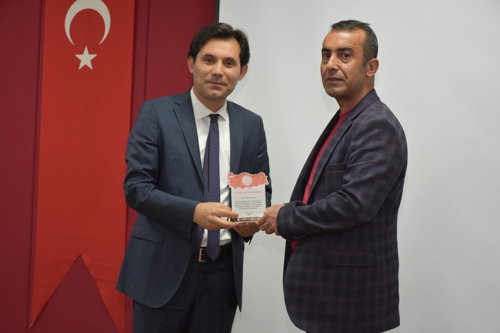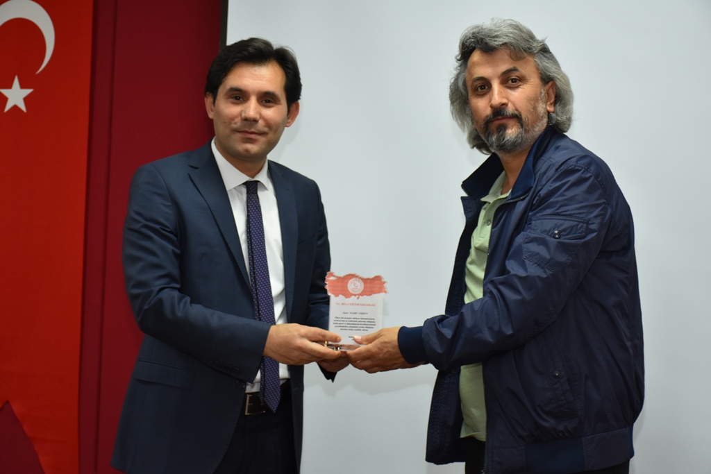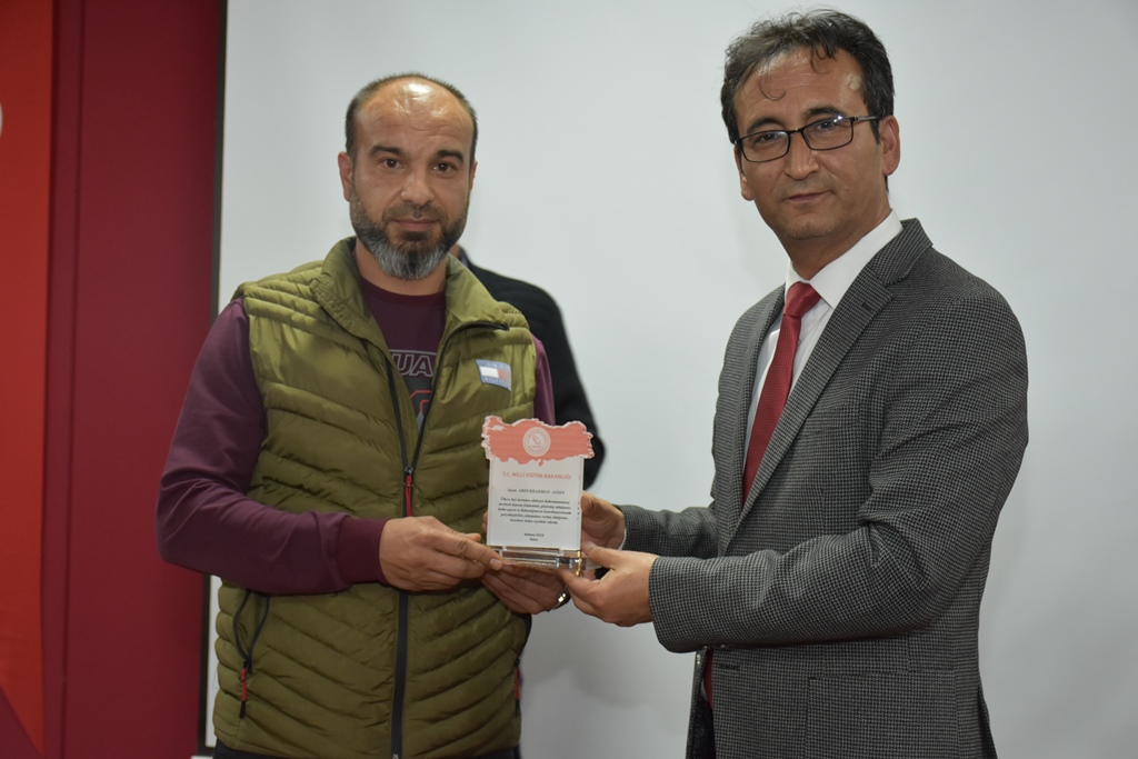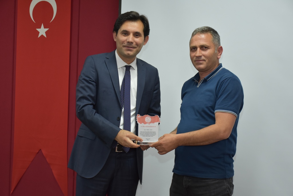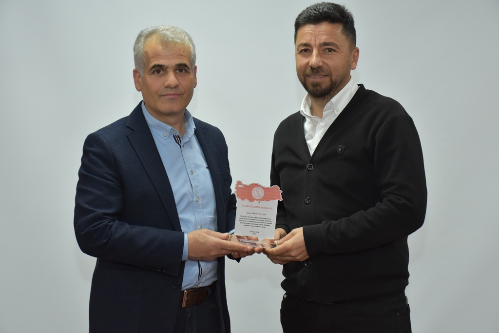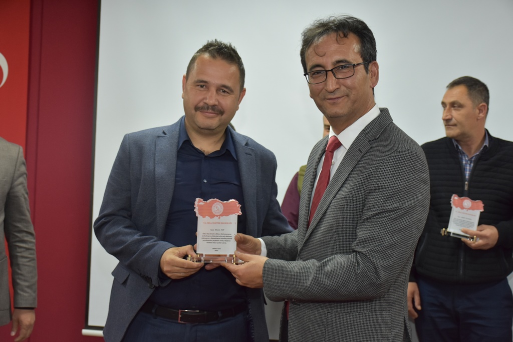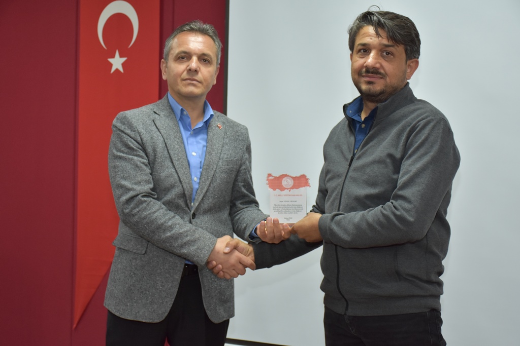 Millî Eğitim Bakanı Mahmut Özer tarafından gönderilen teşekkür plaketi, 11 ili etkileyen yüzyılın felaketinin ardından ilk günden itibaren Hatay’ın Belen ilçesinde arama kurtarma ve destek çalışmalarında gönüllü olarak görev alan 66 öğretmen ve personele takdim edildi.Plaket töreninde konuşma yapan İl Milli Eğitim Müdürü Mehmet Çalışkan, ülkemizi derinden etkileyen Kahramanmaraş merkezli depremin yaralarını sarmaya yönelik ilk andan itibaren bölgede bulunan gönüllü eğitimciler ve İl Milli Eğitim Müdürlüğü personeline üstün gayret ve özverili çalışmaları dolayısıyla teşekkür etti.Milli eğitim camiası olarak ihtiyaç anında her zaman milletimizin yanında olunduğunu vurgulayan İl Müdürü Çalışkan, 6 Şubat’tan bugüne deprem bölgesinde arama kurtarma, ilk yardım, eğitim, psikodestek ve diğer yardım çalışmaları ile eğitim ordusunun afetzede vatandaşların yanında yer aldığını ve çalışmalara devam edildiğini söyledi.Plaket töreninin ardından günün anısına çekilen fotoğraflarla program son buldu.