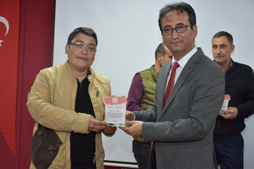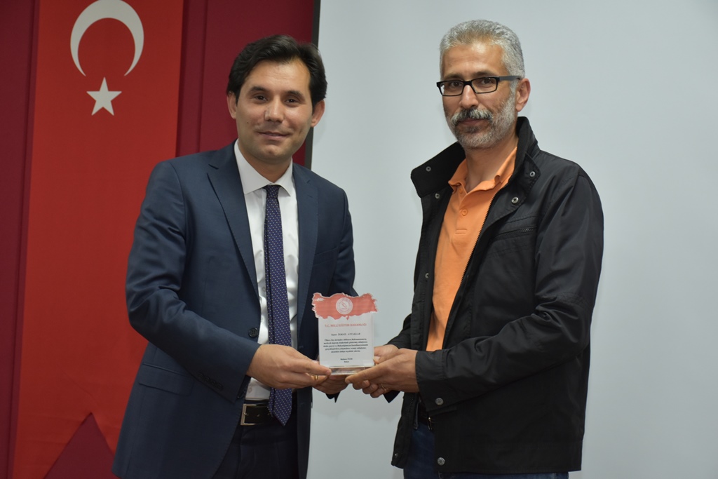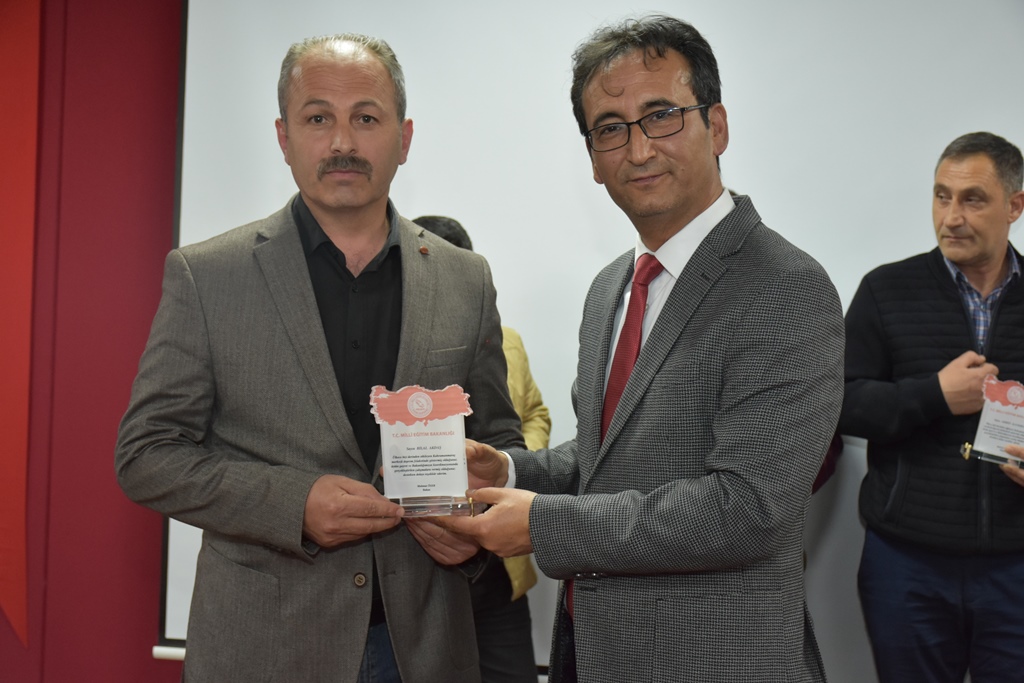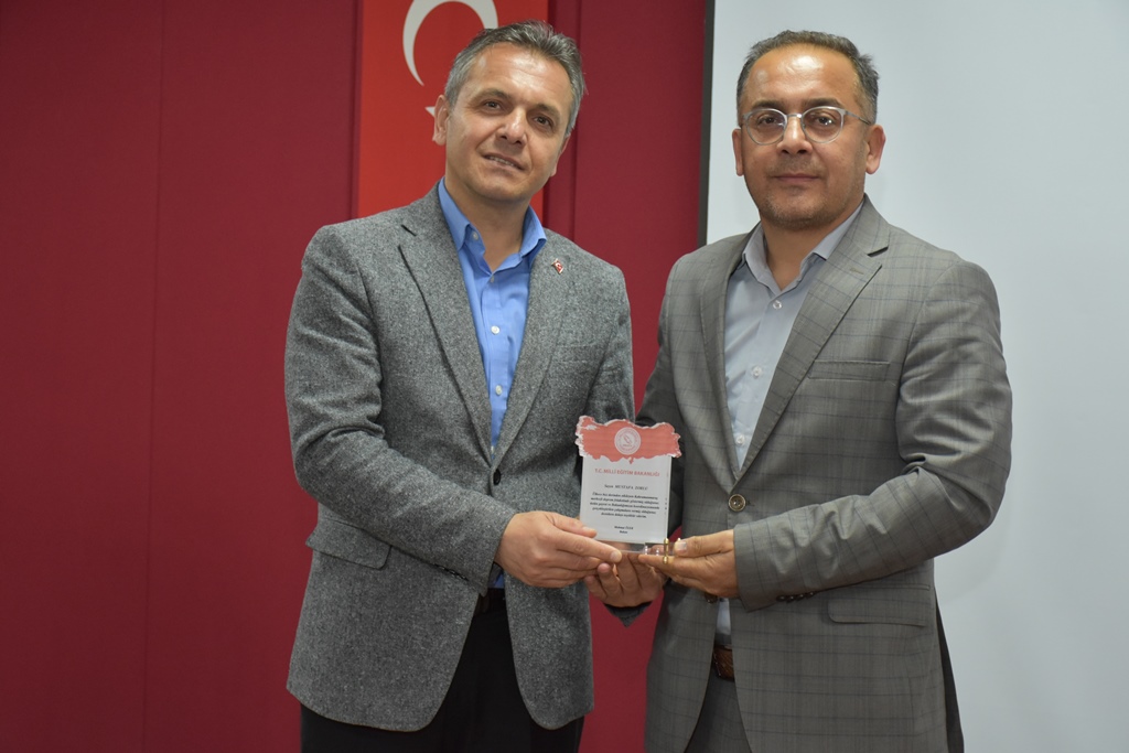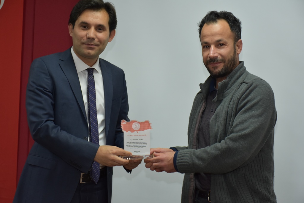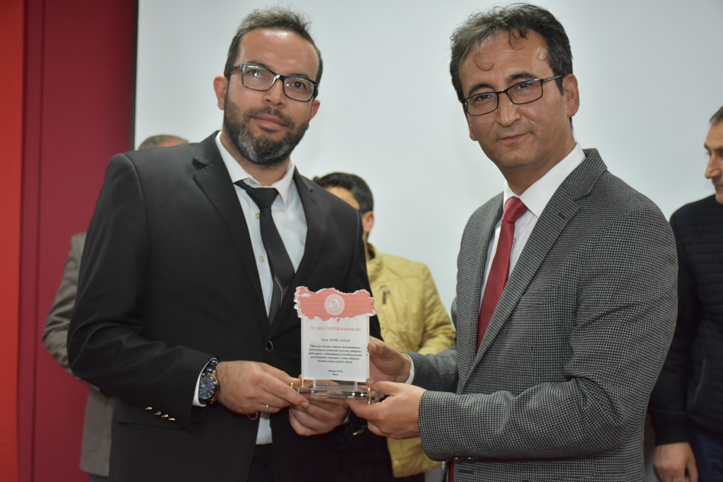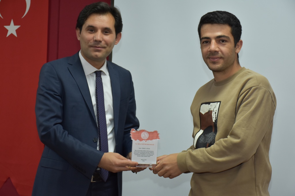 Millî Eğitim Bakanı Mahmut Özer tarafından gönderilen teşekkür plaketi, 11 ili etkileyen yüzyılın felaketinin ardından ilk günden itibaren Hatay’ın Belen ilçesinde arama kurtarma ve destek çalışmalarında gönüllü olarak görev alan 66 öğretmen ve personele takdim edildi.Plaket töreninde konuşma yapan İl Milli Eğitim Müdürü Mehmet Çalışkan, ülkemizi derinden etkileyen Kahramanmaraş merkezli depremin yaralarını sarmaya yönelik ilk andan itibaren bölgede bulunan gönüllü eğitimciler ve İl Milli Eğitim Müdürlüğü personeline üstün gayret ve özverili çalışmaları dolayısıyla teşekkür etti.Milli eğitim camiası olarak ihtiyaç anında her zaman milletimizin yanında olunduğunu vurgulayan İl Müdürü Çalışkan, 6 Şubat’tan bugüne deprem bölgesinde arama kurtarma, ilk yardım, eğitim, psikodestek ve diğer yardım çalışmaları ile eğitim ordusunun afetzede vatandaşların yanında yer aldığını ve çalışmalara devam edildiğini söyledi.Plaket töreninin ardından günün anısına çekilen fotoğraflarla program son buldu.