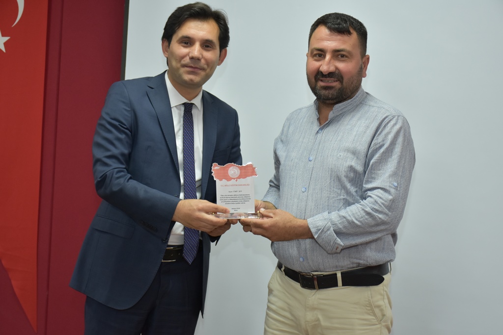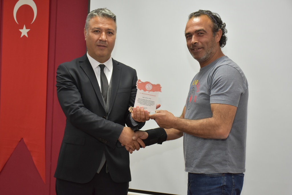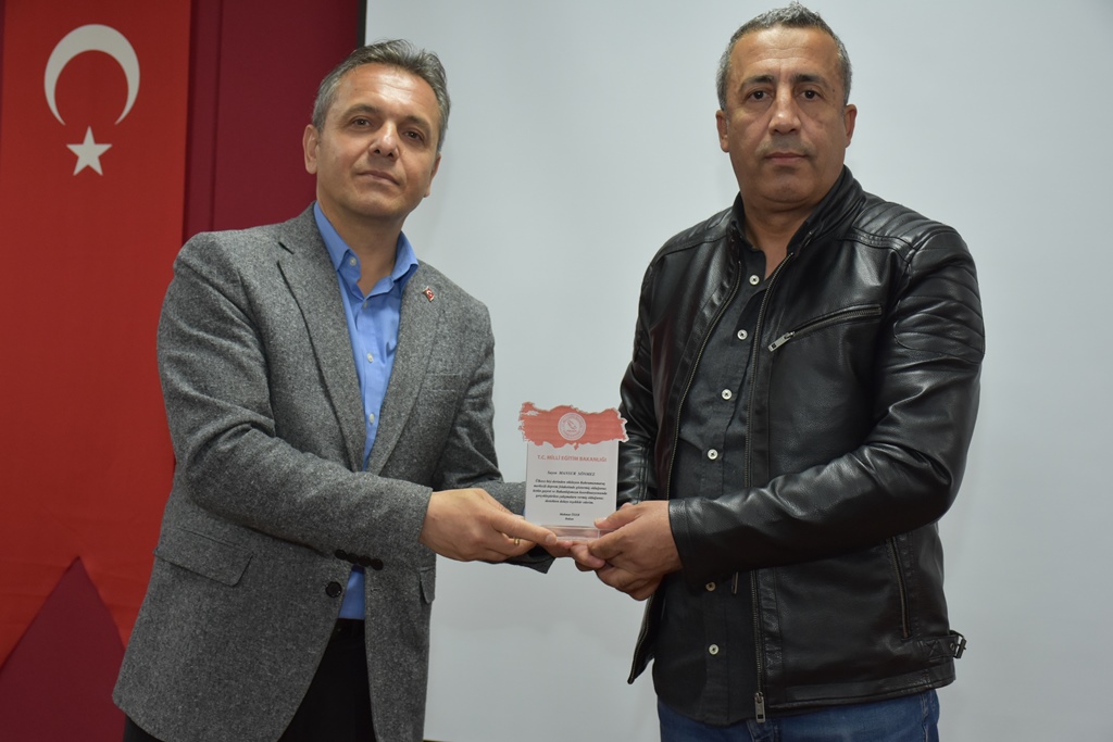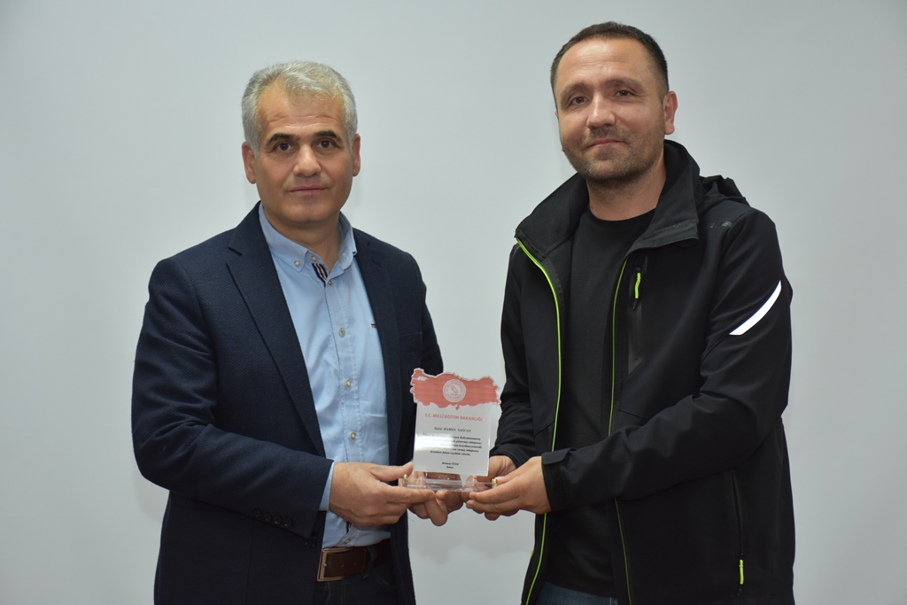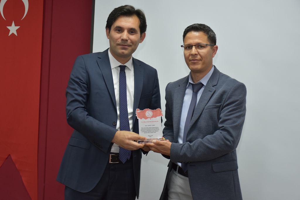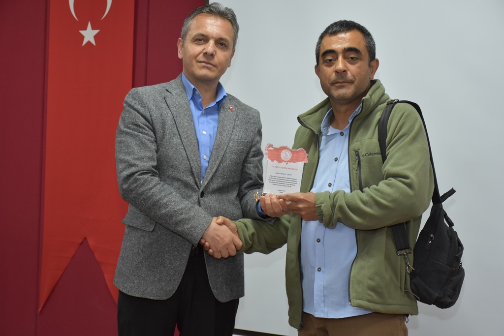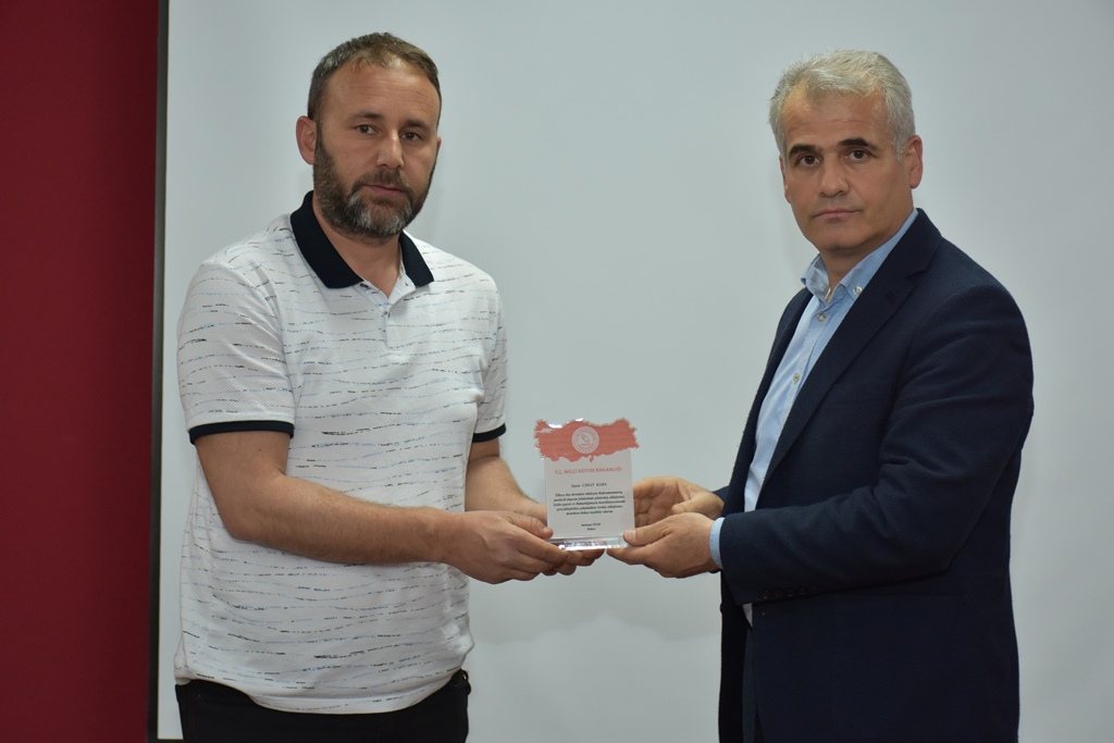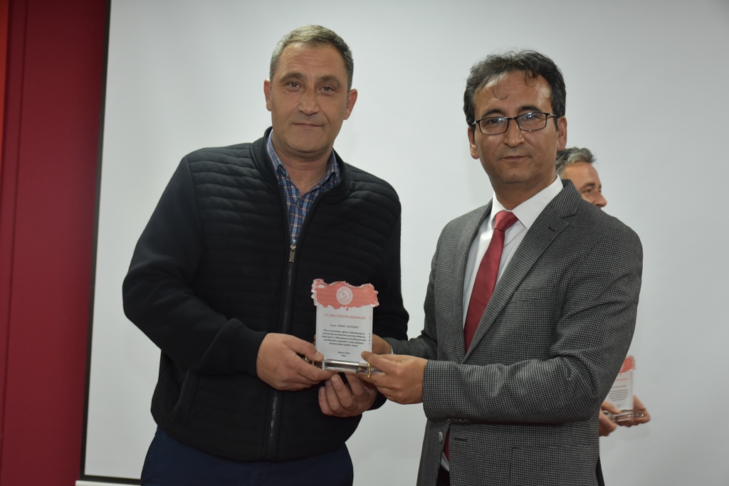 Millî Eğitim Bakanı Mahmut Özer tarafından gönderilen teşekkür plaketi, 11 ili etkileyen yüzyılın felaketinin ardından ilk günden itibaren Hatay’ın Belen ilçesinde arama kurtarma ve destek çalışmalarında gönüllü olarak görev alan 66 öğretmen ve personele takdim edildi.Plaket töreninde konuşma yapan İl Milli Eğitim Müdürü Mehmet Çalışkan, ülkemizi derinden etkileyen Kahramanmaraş merkezli depremin yaralarını sarmaya yönelik ilk andan itibaren bölgede bulunan gönüllü eğitimciler ve İl Milli Eğitim Müdürlüğü personeline üstün gayret ve özverili çalışmaları dolayısıyla teşekkür etti.Milli eğitim camiası olarak ihtiyaç anında her zaman milletimizin yanında olunduğunu vurgulayan İl Müdürü Çalışkan, 6 Şubat’tan bugüne deprem bölgesinde arama kurtarma, ilk yardım, eğitim, psikodestek ve diğer yardım çalışmaları ile eğitim ordusunun afetzede vatandaşların yanında yer aldığını ve çalışmalara devam edildiğini söyledi.Plaket töreninin ardından günün anısına çekilen fotoğraflarla program son buldu.