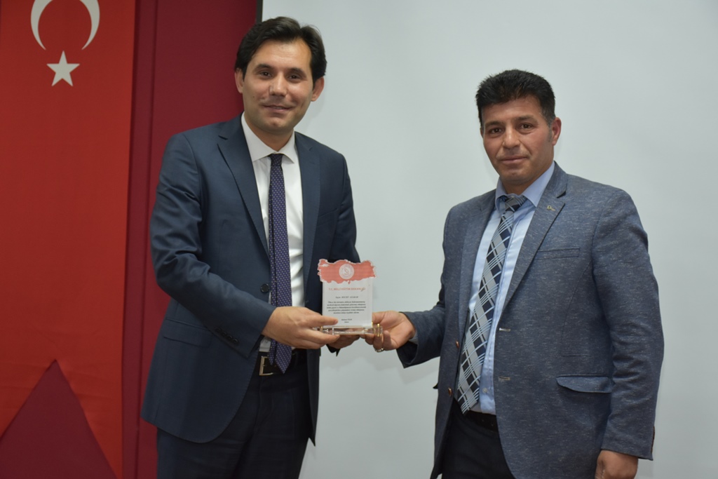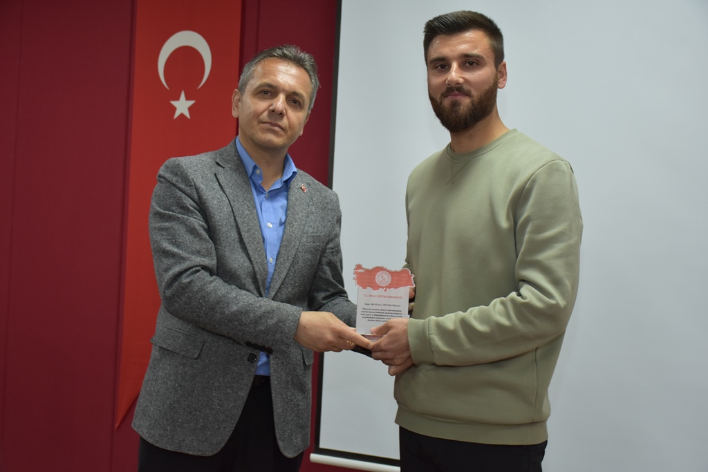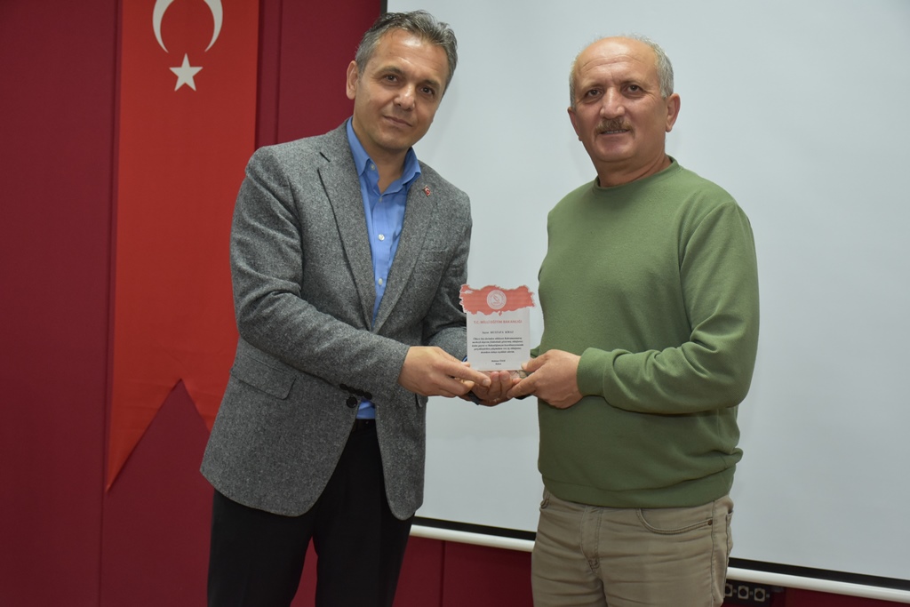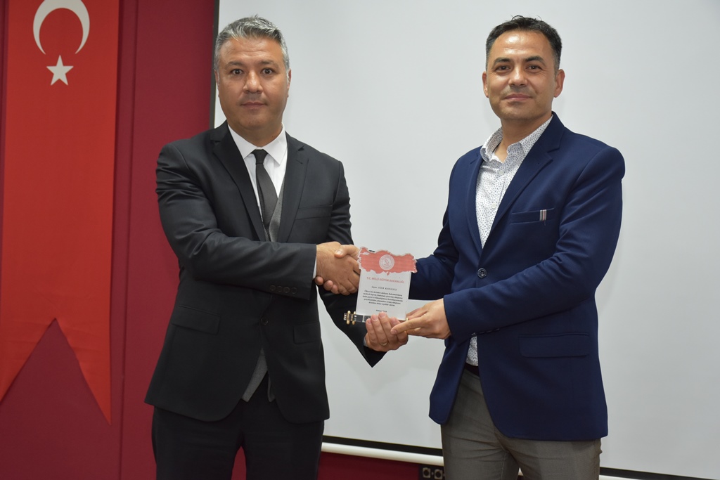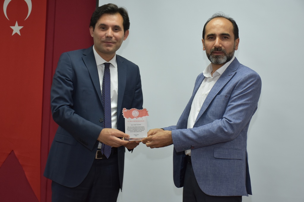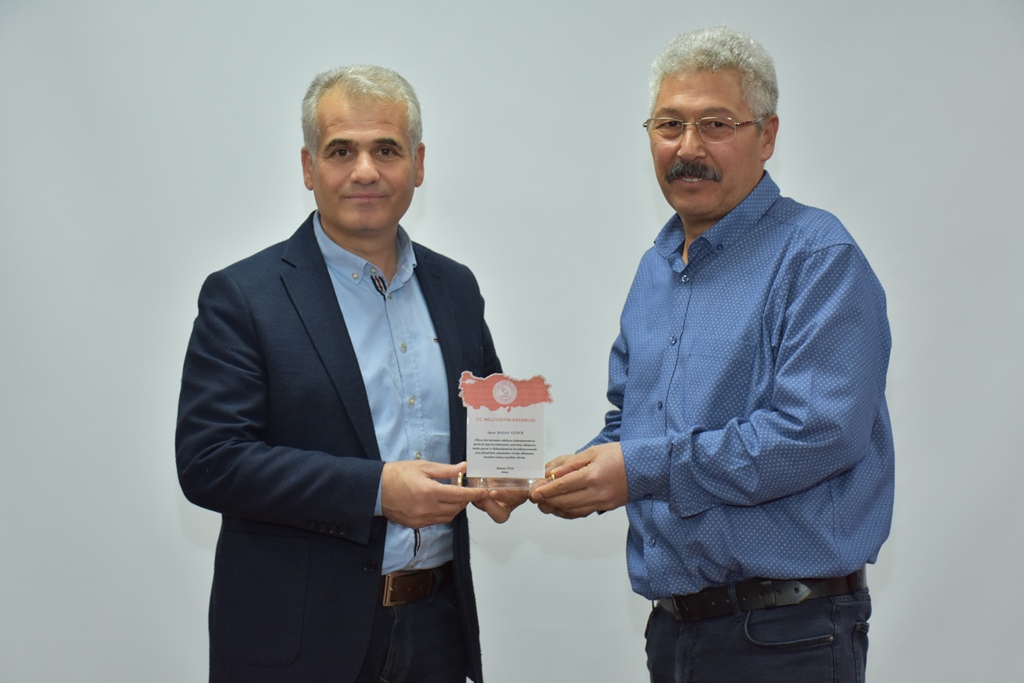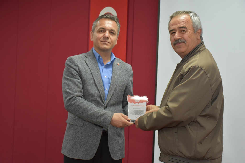 Millî Eğitim Bakanı Mahmut Özer tarafından gönderilen teşekkür plaketi, 11 ili etkileyen yüzyılın felaketinin ardından ilk günden itibaren Hatay’ın Belen ilçesinde arama kurtarma ve destek çalışmalarında gönüllü olarak görev alan 66 öğretmen ve personele takdim edildi.Plaket töreninde konuşma yapan İl Milli Eğitim Müdürü Mehmet Çalışkan, ülkemizi derinden etkileyen Kahramanmaraş merkezli depremin yaralarını sarmaya yönelik ilk andan itibaren bölgede bulunan gönüllü eğitimciler ve İl Milli Eğitim Müdürlüğü personeline üstün gayret ve özverili çalışmaları dolayısıyla teşekkür etti.Milli eğitim camiası olarak ihtiyaç anında her zaman milletimizin yanında olunduğunu vurgulayan İl Müdürü Çalışkan, 6 Şubat’tan bugüne deprem bölgesinde arama kurtarma, ilk yardım, eğitim, psikodestek ve diğer yardım çalışmaları ile eğitim ordusunun afetzede vatandaşların yanında yer aldığını ve çalışmalara devam edildiğini söyledi.Plaket töreninin ardından günün anısına çekilen fotoğraflarla program son buldu.