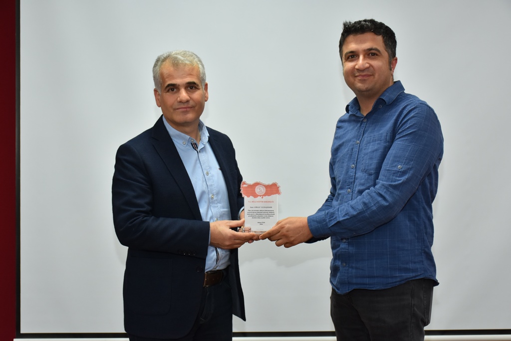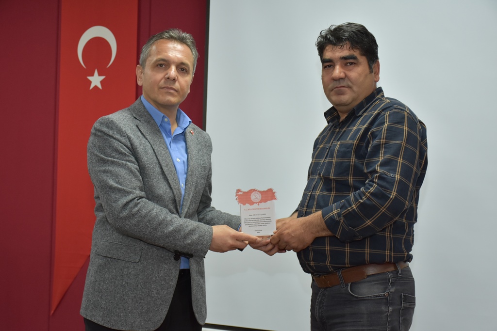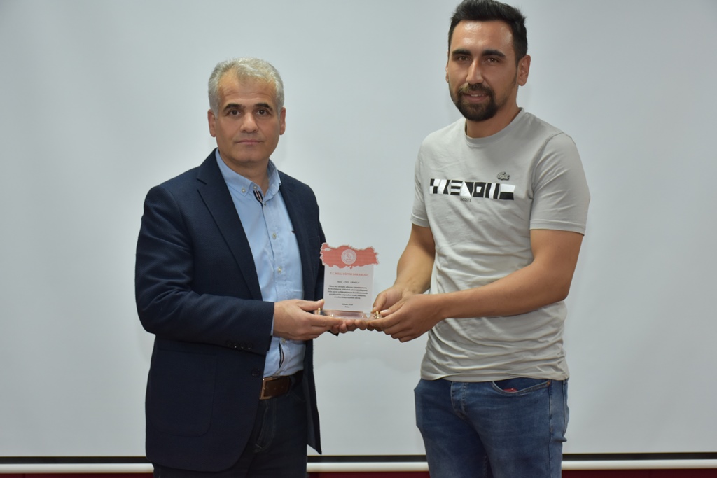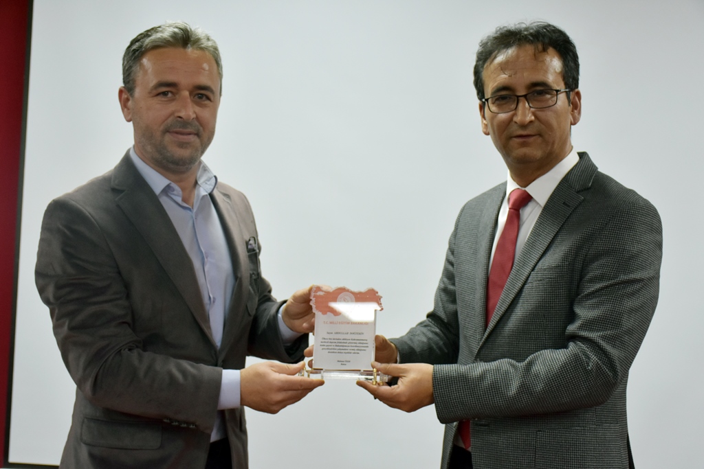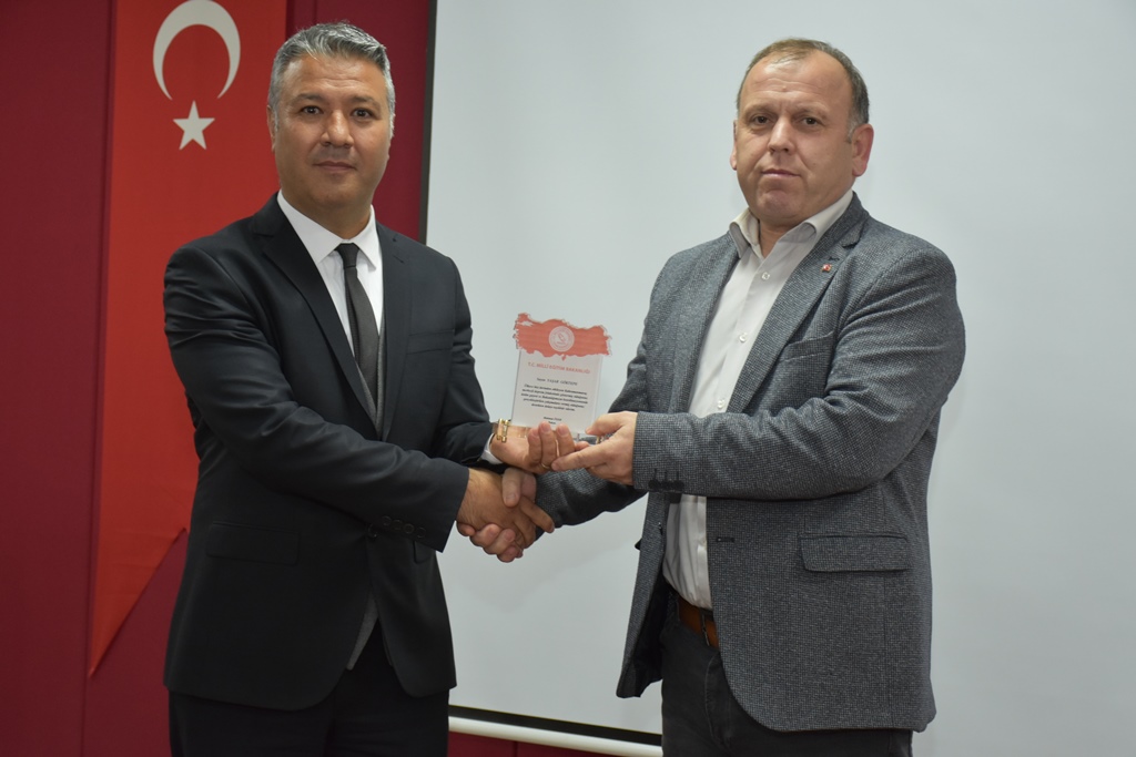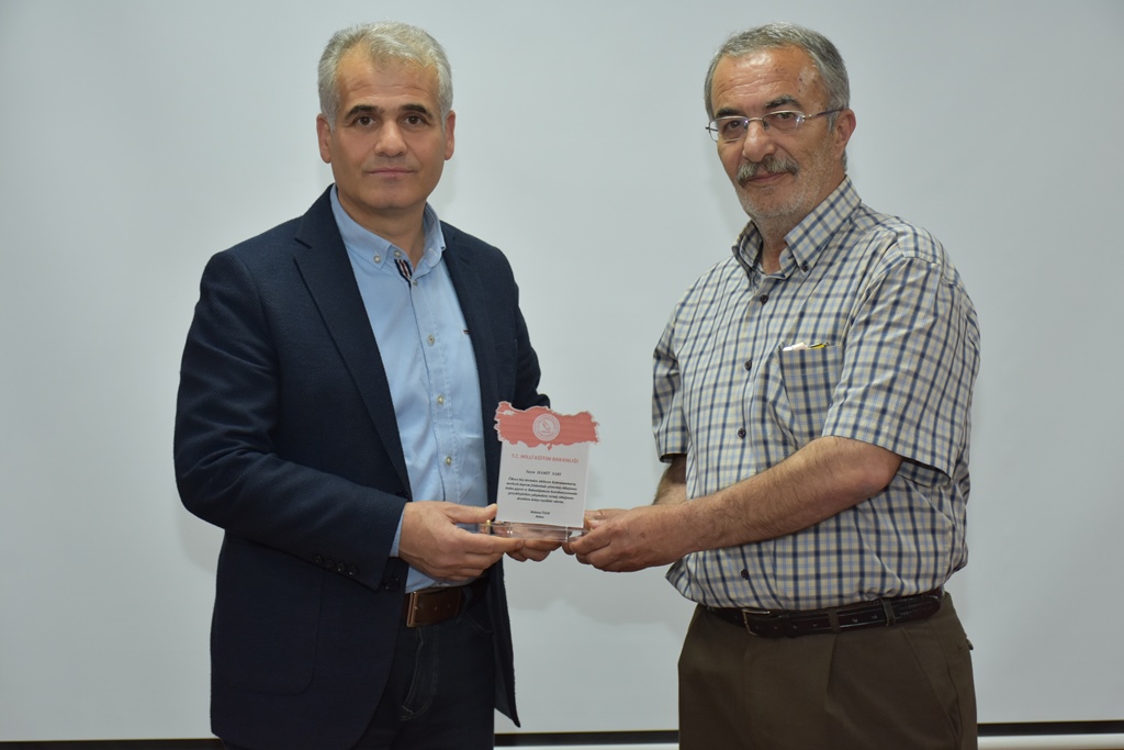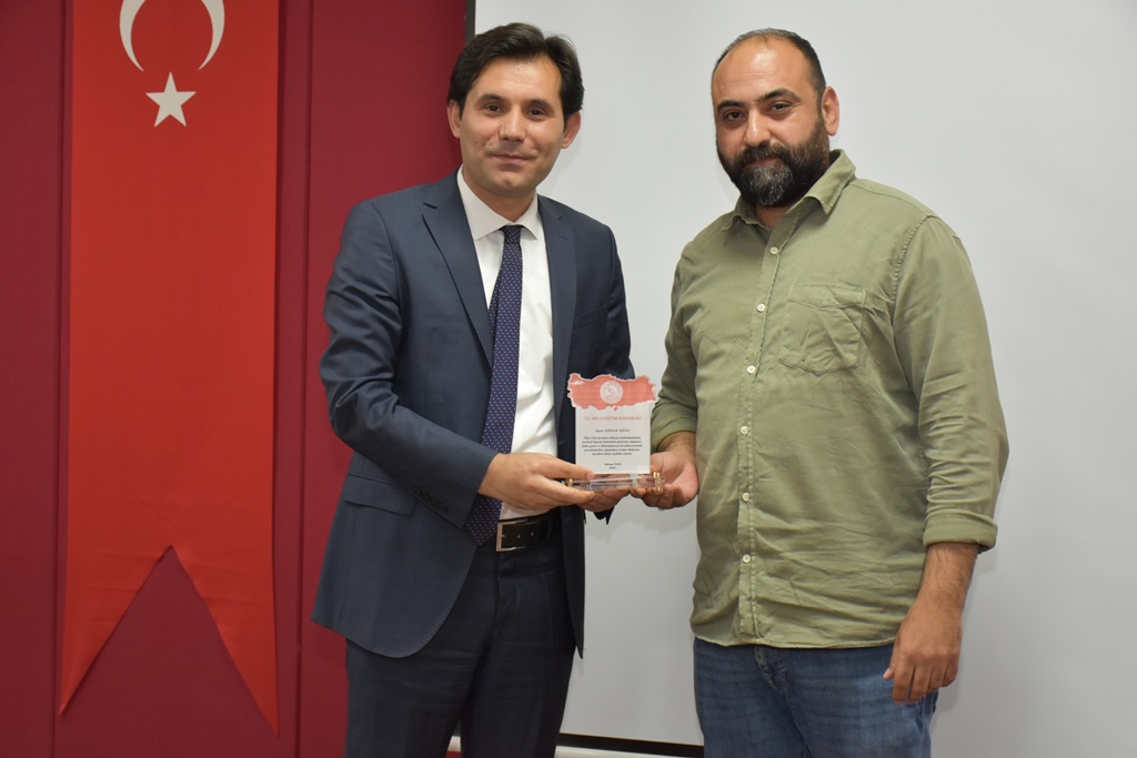 Millî Eğitim Bakanı Mahmut Özer tarafından gönderilen teşekkür plaketi, 11 ili etkileyen yüzyılın felaketinin ardından ilk günden itibaren Hatay’ın Belen ilçesinde arama kurtarma ve destek çalışmalarında gönüllü olarak görev alan 66 öğretmen ve personele takdim edildi.Plaket töreninde konuşma yapan İl Milli Eğitim Müdürü Mehmet Çalışkan, ülkemizi derinden etkileyen Kahramanmaraş merkezli depremin yaralarını sarmaya yönelik ilk andan itibaren bölgede bulunan gönüllü eğitimciler ve İl Milli Eğitim Müdürlüğü personeline üstün gayret ve özverili çalışmaları dolayısıyla teşekkür etti.Milli eğitim camiası olarak ihtiyaç anında her zaman milletimizin yanında olunduğunu vurgulayan İl Müdürü Çalışkan, 6 Şubat’tan bugüne deprem bölgesinde arama kurtarma, ilk yardım, eğitim, psikodestek ve diğer yardım çalışmaları ile eğitim ordusunun afetzede vatandaşların yanında yer aldığını ve çalışmalara devam edildiğini söyledi.Plaket töreninin ardından günün anısına çekilen fotoğraflarla program son buldu.