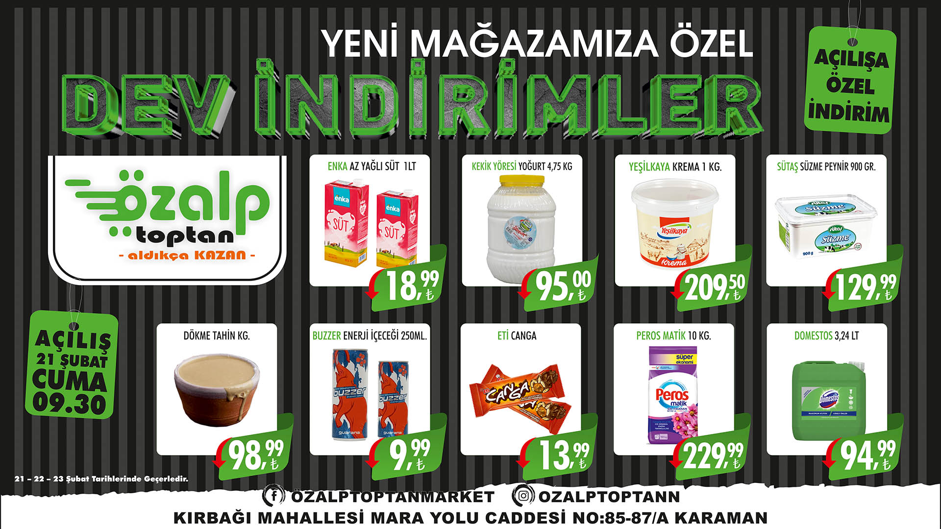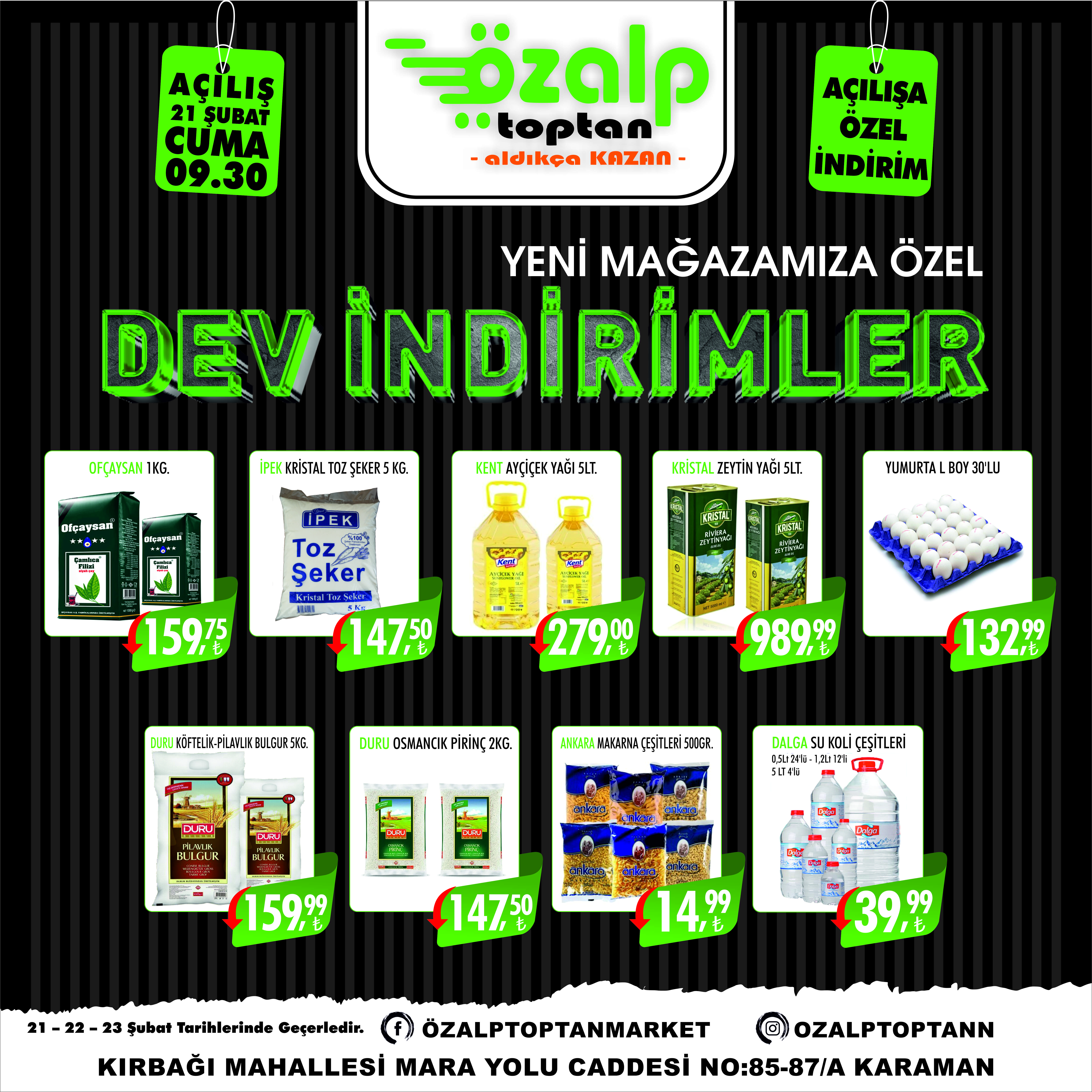 Karaman'da indirimin adresi haline gelen Özalp toptan yeni şubesini dev indirimler ile açıyor. Bu indirimler Karaman’da kaçmaz.