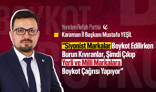 Yeniden Refah Partisi Karaman İl Başkanı Mustafa Yeşil yaptığı yazılı basın açıklamasında şu ifadelere yer verdi:“Bir süredir milletimizin gözleri önünde cereyan eden hadiselere üzülerek şahitlik ediyoruz. Sayın Ekrem İmamoğlu’nun tutuklanması ile başlayan süreçte, ana muhalefet partisi Cumhuriyet Halk Partisi'nin (CHP) bazı temsilcilerinin yaptığı çağrılar, toplumsal vicdanda derin yaralar açmıştır. Özellikle çoğunluğu yerli ve milli Türk markalarımızdan oluşan firmalara yönelik başlatılan boykot kampanyaları, akılla, vicdanla ve hele hele millet sevgisiyle asla bağdaşmamaktadır.Protesto haklarını kullanmak isteyen gençlerin arasına çeşitli örgütler sızdırılmış emniyet güçlerimiz ve gençlerimiz karşı karşıya getirilmiştir. Hayatlarının ve geleceklerinin baharında olan bu gençler adeta ateşe atılmış ve sonrasında sokak çağrıları artarak devam etmiştir. Bu çağrılar siyasi menfaatler uğruna gençlerimizin karanlığa sürüklenmesine sebep olmuştur. Bunların yanı sıra yerli ve milli Türk markalarının boykot edilmesi çağrısı ise süreci farklı bir boyuta sürüklemiştir.“Siyonist markalar boykot edilirken milletimize burun kıvıranlar, şimdi çıkıp yerli markalara karşı boykot çağrısı yapıyor”Bugün Filistin'de bir lokma ekmeğe muhtaç edilen çocuklara bomba yağarken, siyonist markaları boykot eden milletimize burun kıvıranlar, şimdi çıkıp yerli markalara karşı boykot çağrısı yapmaktadır. Bir yandan ‘milli irade’ diyenler, öte yandan bu milletin öz sermayesine göz dikiyor. Bu milletin alın teriyle büyümüş markalarına düşmanlık etmek kime ne kazandırır?“Yerli ve milli sermayeyi boykot etmekle demokrasi gelmez, ayrışırsak yok, birleşirsek var oluruz”Milletimizin vicdanında karşılığı olmayan bu çağrılar, doğrudan halkımızın ekmeğine, aşına, işine kastetmektedir. Bu yaklaşım ne demokrasiye katkı sunar, ne de toplumsal barışı tesis eder. Aksine, ayrıştırıcı ve kutuplaştırıcı bir dil kullanılarak milletimizin birliği ve beraberliği zedelemektedir.“Toplum mühendisliğine karşıyız, millet iradesine saygılıyız”Yeniden Refah Partisi olarak bizler; milli markalarımızın güçlenmesini, yerli üretimin desteklenmesini, istihdamın artmasını ülkemizin kalkınmasının anahtarı olarak görüyoruz. Bizim anlayışımızda demokrasi; yerli ve milli olanı yüceltmeyi, milletin değerlerine sahip çıkmayı gerektirir.“Karanlığa küfretmek yetmez, eline mum alıp yürümek gerekir”Bu sebeple, milletimizi hedef alan, sermayemizi çökertmeye çalışan, ayrışmayı körükleyen bu tür çağrılara karşı tavrımız nettir. Biz milletimizin yanında durmaktan, milli markalarımıza sahip çıkmaktan vazgeçemeyiz, vazgeçmemeliyiz."Siyonist markalara boykot, yerli ve milli markalara destek"Bu vesileyle milletimizi tekrar Gazze başta olmak üzere dünyanın birçok yerinde Müslümanları ve mazlum insanları katleden, ortadoğuyla birlikte toplumsal barışı ateşe sürükleyen siyonizmin destekçisi olan, İsrail'e çeşitli silah ve mühimmat desteği için bağışlar yapan markaları boykot etmeye, yerli ve milli ürünlerimizi de kullanıp bu markaları desteklemeye davet ediyoruz."