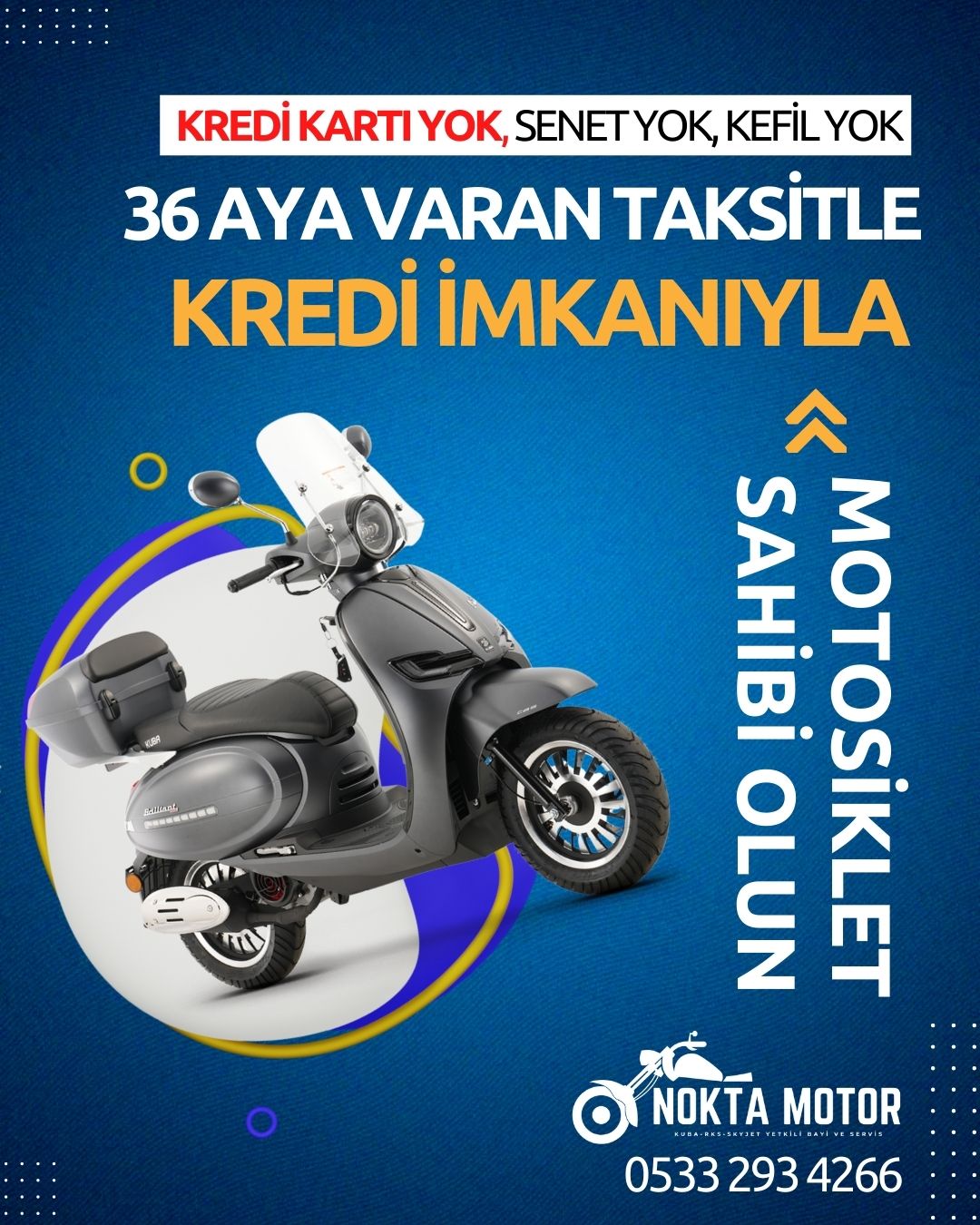 Nokta Motosiklet’in özel kampanyası sayesinde artık kredi kartı, senet veya kefil derdi olmadan motosiklet sahibi olunabiliyor. 36 aya varan vadelerle kullanılabilen kredi imkânı, Karamanlılara büyük kolaylık sağlıyor.