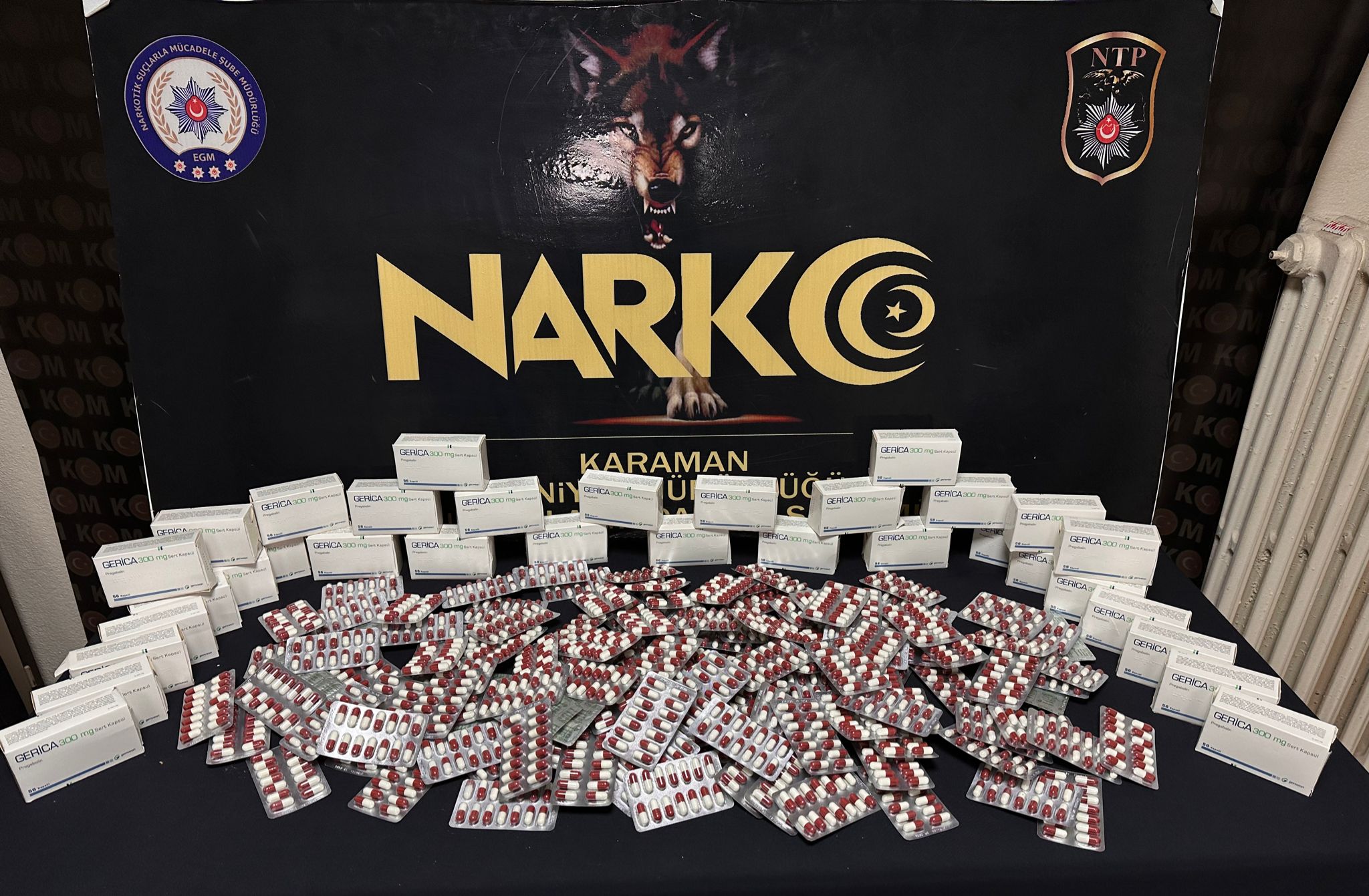Karaman Emniyet Müdürlüğü Narkotik Şube ekiplerince yürütülen çalışmalar neticesinde, Karaman'a otobüs ile uyuşturucu getireceği bilgisine ulaşılan D.Ö. isimli zanlı için çalışma başlatıldı.Yapılan takip sonucu polis aramasına alınan D.Ö. isimli zanlının üzerinden toplam 35 kutu (1946 adet) sentetik ecza maddesi ele geçirildi.Emniyetteki işlemleri tamamlandıktan sonra adliyeye sevk edilen D.Ö., tutuklanarak cezaevine gönderildi.