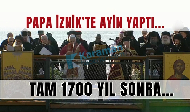 Papa 14. Leo, İstanbul’daki temaslarını tamamlamasının ardından helikopterle İznik’e geldi. Papa’nın varışıyla birlikte, Su Altı Bazilikası’nda gerçekleştirilen tarihi ayin başladı. Türkçe, İngilizce ve Latince ilahilerle açılan ayinde, misafirler iskeledeki yerlerini aldı.Ayin, Rum Ortodoks Patriği I. Bartholomeos’un İngilizce konuşmasıyla devam etti. Bartholomeos konuşmasında Tanrı’nın zaferinin ahirette olduğunu vurgularken, Hristiyan dünyasına birlik çağrısı yaptı.Konuşmanın ardından Papa 14. Leo ve Patrik Bartholomeos birlikte İngilizce, Latince ve Arapça dualar etti. Ardından İncil’den ayetler okundu. İznik Konsili’nin 1700 yıl önce toplandığı aynı bazilikada, konsilin yıl dönümünde adeta ekümenik birlik ruhu yeniden canlandı.Papa 14. Leo, dualar ve ayetlerin ardından yaptığı konuşmada, insanlık arasındaki çekişmelerin arttığını belirterek barış ve dayanışma mesajı verdi.