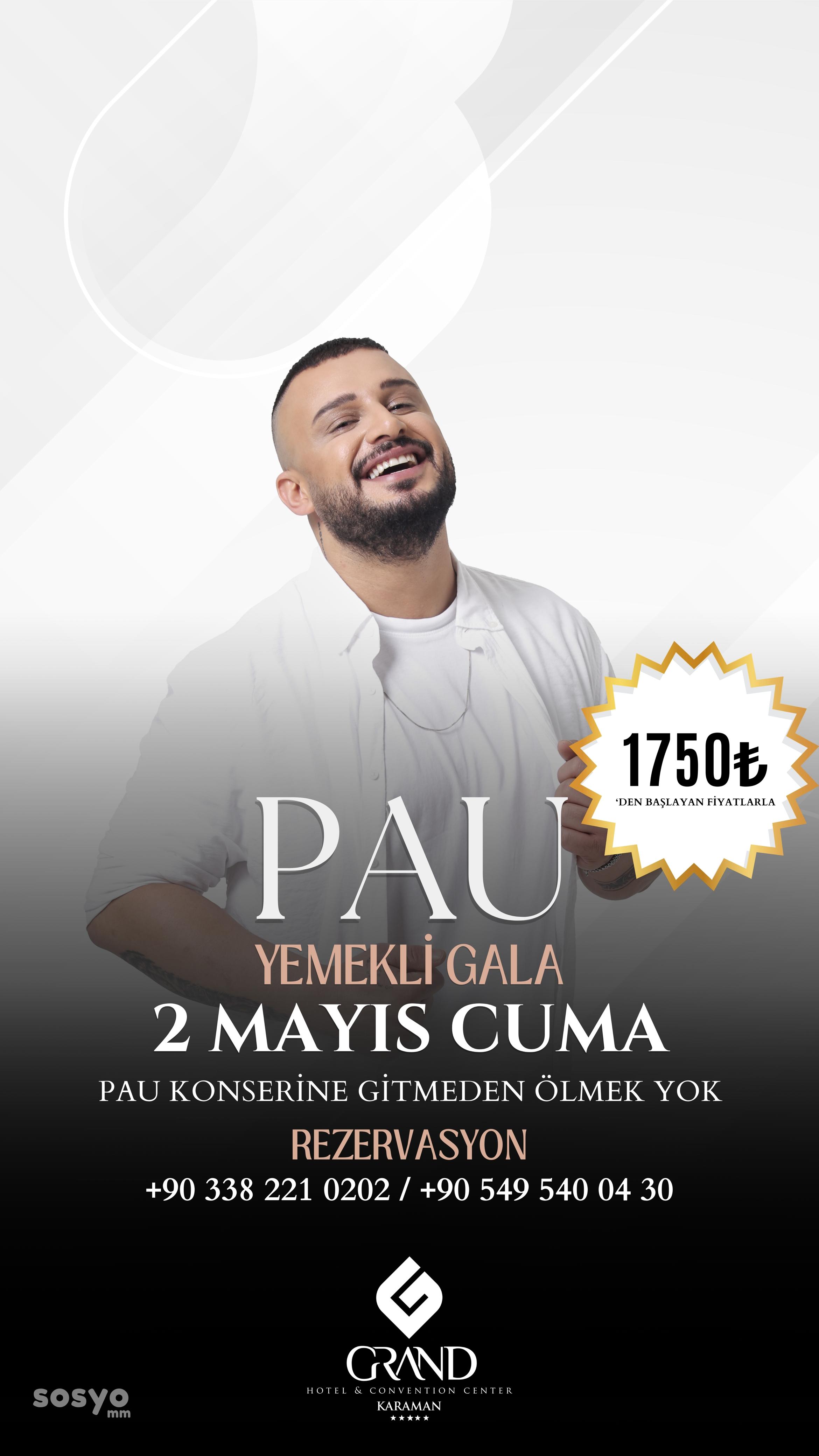 Alternatif müziğin enerjisini hissetmek, PAU ile müzik dolu bir gece yaşamak isteyen herkesi 2 Mayıs akşamı Grand Hotel Karaman’a bekliyoruz. Şehrin ritmini yakalamak için bu özel etkinliği kaçırmayın!