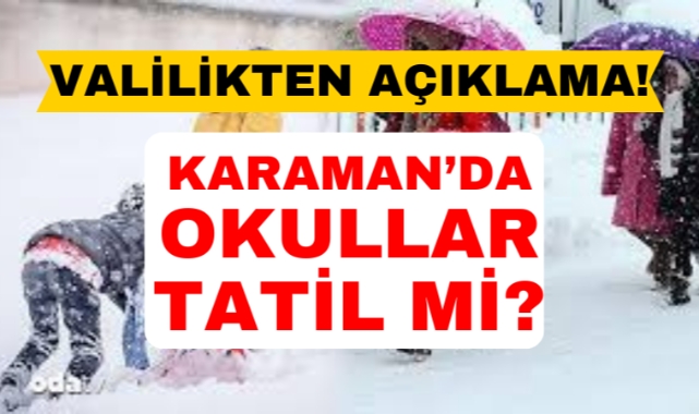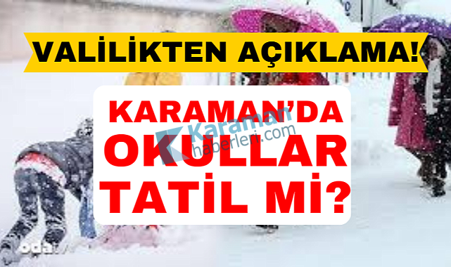 Karaman Valiliği tarafından yapılan açıklamada Karaman'da okullar 1 gün tatil ilan edildi.