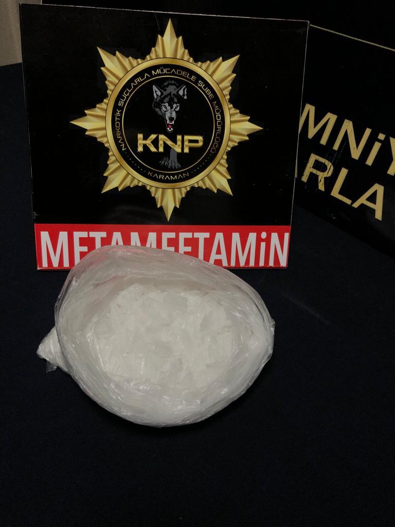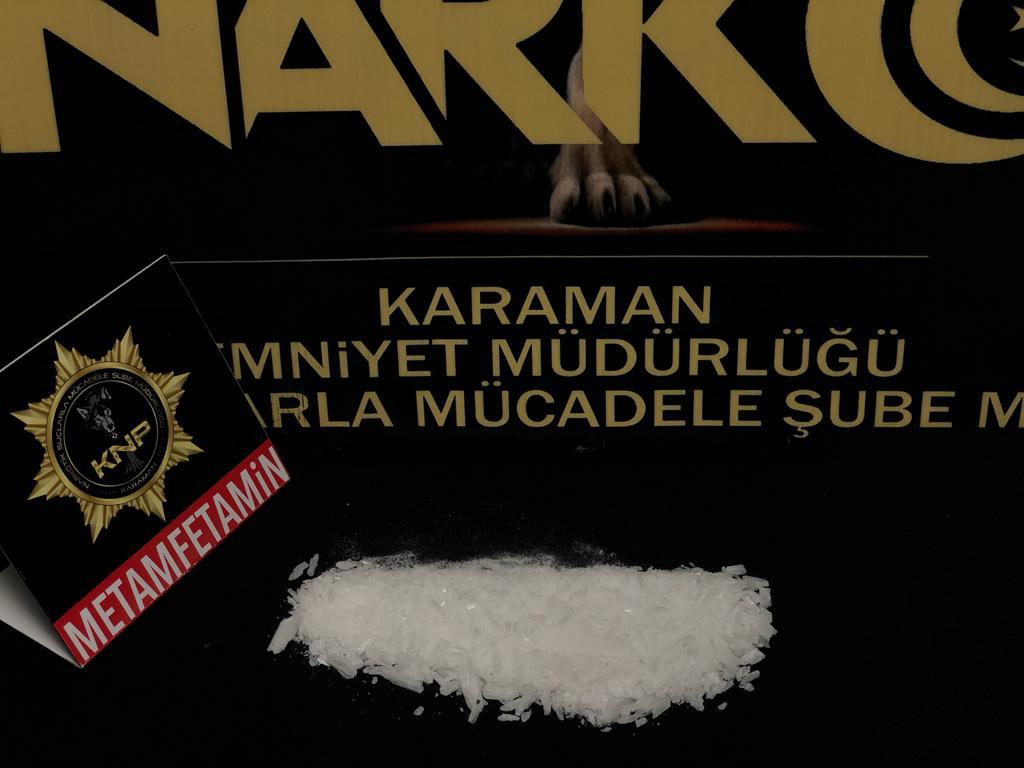 Karaman Emniyet Müdürlüğü'ne bağlı Narkotik Şube ekiplerince yürütülen çalışmalar neticesinde, şehir dışından Karaman'da ticaretini yapmak üzere uyuştucu madde getirdikleri bilgisine ulaşılan şüphelilere operasyon düzenlendi.Karaman polisinin titiz çalışması sonucu A.A., A.K., R.Ç. ve C.B. isimli şüpheliler kente girmeden yakalandı. Operasyonda 72.5 gram Metamfetamin maddesi ele geçirildi.Emniyetteki işlemlerinin ardından adliyeye sevk edilen şüphelilerden R.Ç. ve C.B. tutuklanırken, diğer iki şüpheli serbest bırakıldı.Karaman polisi, uyuşturucu madde ticaretine karşı kararlı mücadelesini sürdürüyor. Uyuşturucu madde kaçakçılarına ve dağıtıcılarına yönelik operasyonlar, toplumun güvenliğini koruma amacıyla devam ediyor. Bu tür faaliyetlerin önlenmesi için emniyet güçleri ve yerel yetkililer işbirliği içinde çalışmalarını sürdürüyor.