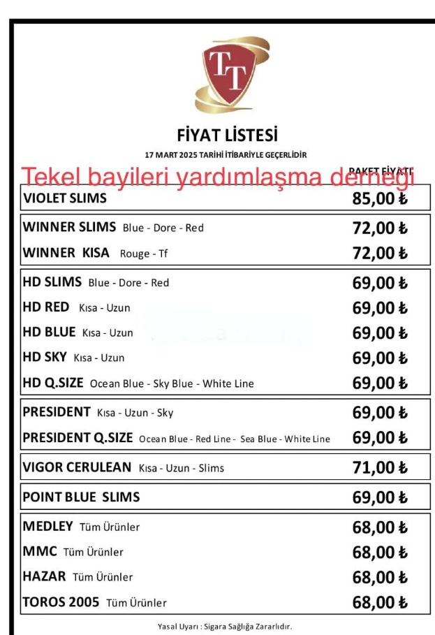 Resmi Gazete'de yayımlanarak yürürlüğe giren bu düzenleme sonrası, sigara fiyatlarının değişip değişmeyeceği de merak konusu oldu. Tekel Bayileri Yardımlaşma Derneği Başkanı Erol Dündar, sosyal medya hesabı üzerinden yaptığı paylaşımda, TT sigara grubuna da 17 Mart itibari ile zam geldiğini bildirdi.Dündar'ın paylaşımında "Son sigara grubu TT grubuna da zam geldi" ifadesi yer aldı. Bu sigara grubuna gelen zammın ardından diğer sigaralara da 5 TL yeni zam gelecek söylentisi yayıldı. Sigara fiyatlarının değişip değişmeyeceği sigara firmalarının kararına bağlı olacak.Sigara gruplarındaki güncel fiyatlar şu şekilde:- TT: En ucuz sigara 68 TL, en pahalı sigara 85 TL