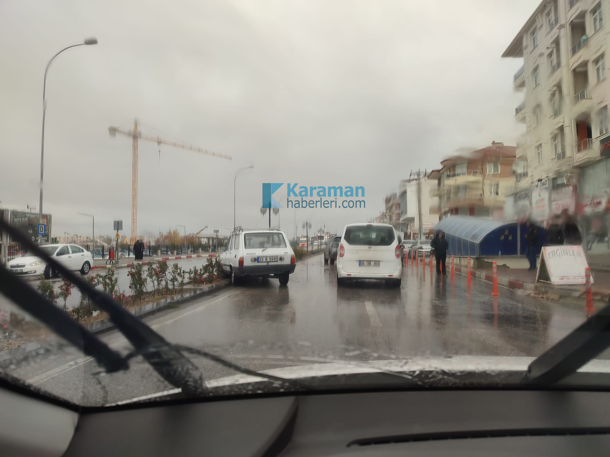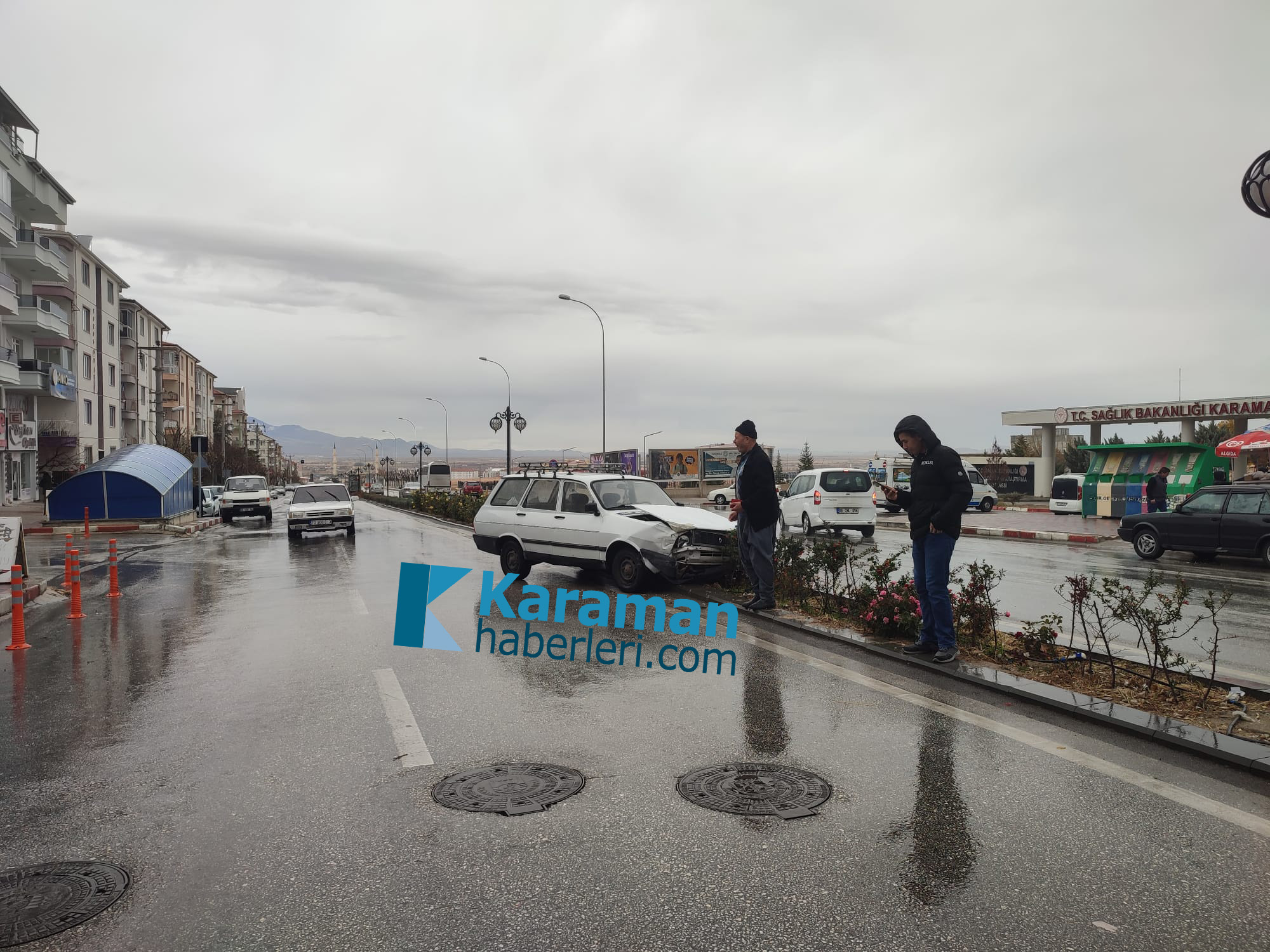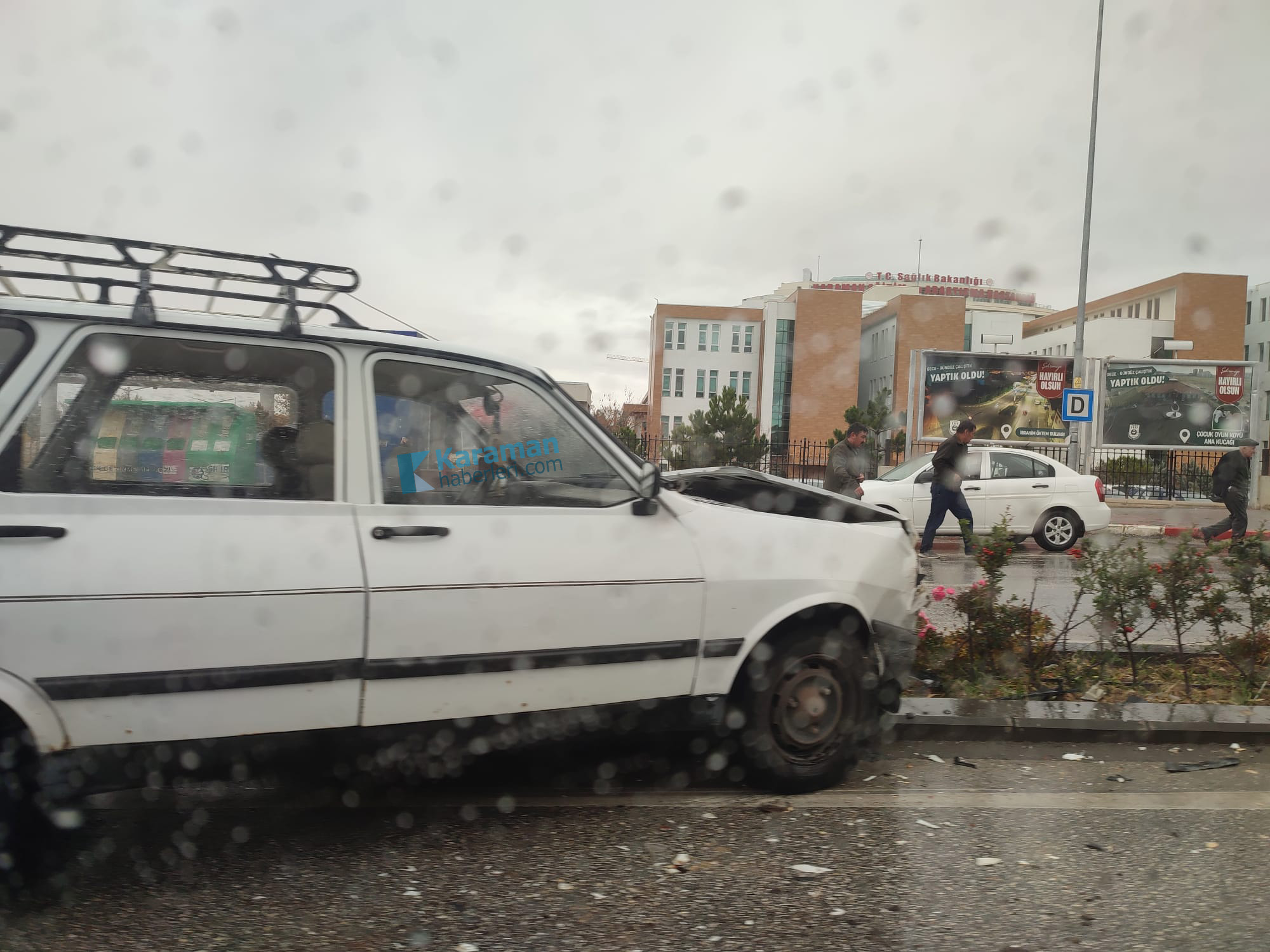 Karaman'da yağışların biranda gelmesi kazaları da beraberinde getirdi. Karaman'da bir otomobil, kaygan zeminden dolayı kaza dolmuşla çapıştı.