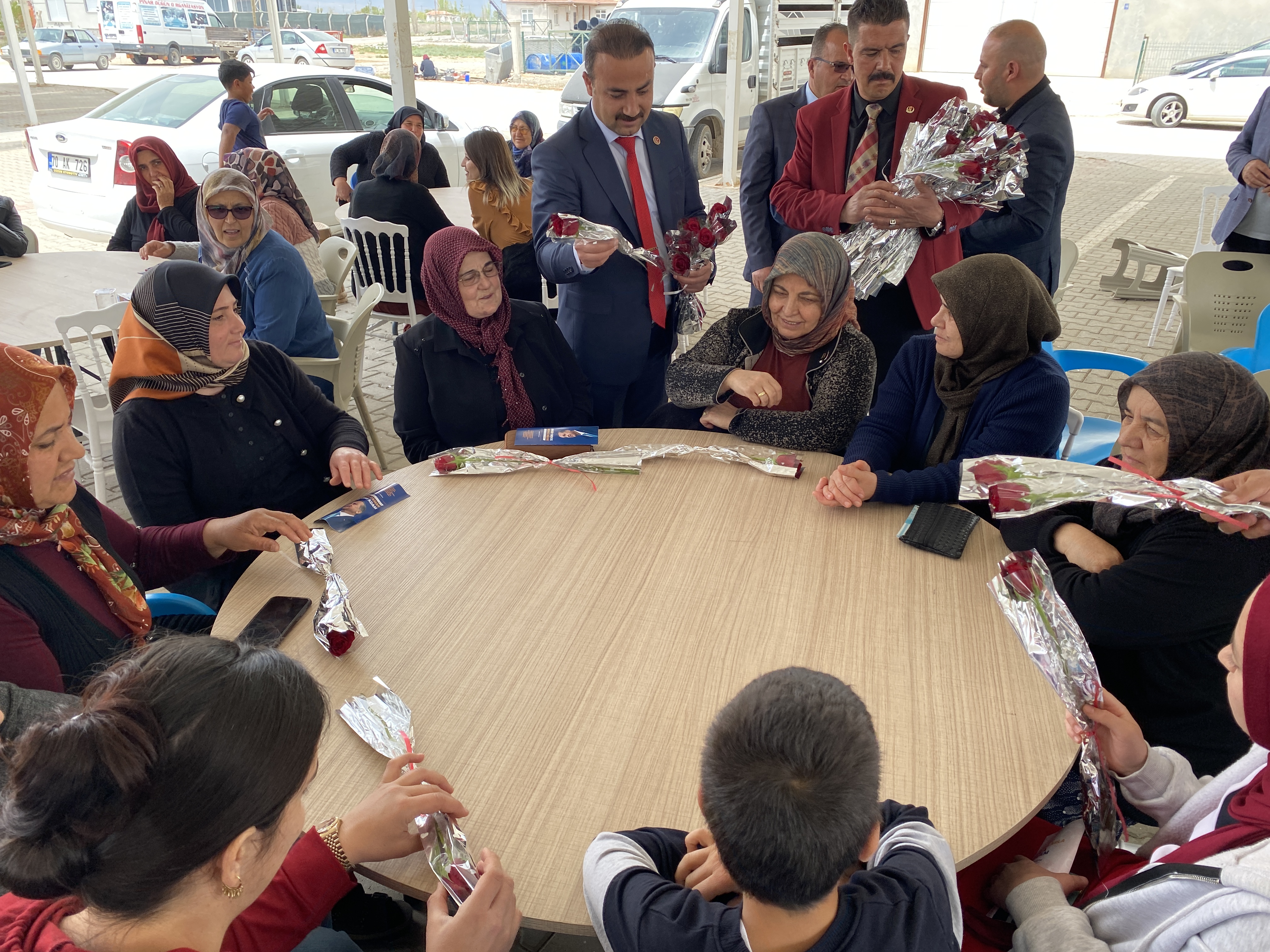 Büyük Birlik Partisi Karaman 1. sıra milletvekili adayı Mesut Soyfidan, Ayrancı programı sonrasında Sudurağı'nda yapılan yağmur duasına katıldı. Alanda bulunan kadınları da unutmayan aday, yanında getirdikleri gülleri dağıtarak gülün ne manaya geldiğini anlattı.Soyfidan "Merhum Şehit Liderimiz Muhsin Yazıoğlu 30 yıl önce bu partiyi kurduğunda partimizin logosuna hilalin içerisinde gül olarak karar verdi. Kadınlarımız bizim güllerimiz. Bizlerde onlara layıkı ile hilal olabilmeliyiz. Ziyarete gittiğimiz her yerde bütün kadınlarımıza bugüne kadar hep gül hediye ettik. Büyük Birlik Partisi sayesinde Karaman'ı bir gül kokusu sardı diyebiliriz. Oy verirken hem gülü hem de hilali unutmamanızı rica ediyorum" dedi.Mesut Soyfidan ve ekibi Cuma namazını vatandaşlarla beraber Sudurağı'nda eda ettikten sonra seçim çalışmaları kapsamında yeniden Karaman merkeze döndü.