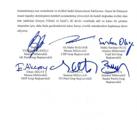 TBMM, Filistin-İsrail çatışmaları hakkında ortak bildiri yayınladı