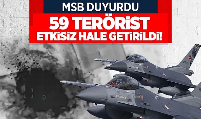 Milli Savunma Bakanlığı (MSB), Irak ve Suriye'nin terör hastalıklarına yönelik düzenlenen hava harekatlarında önemli bir başarı elde edildiğini duyurdu. İlk belirlemelere göre, aralarında 2 üst düzey ismin de bulunduğu toplam 59 terörist etkisiz hale getirildi.