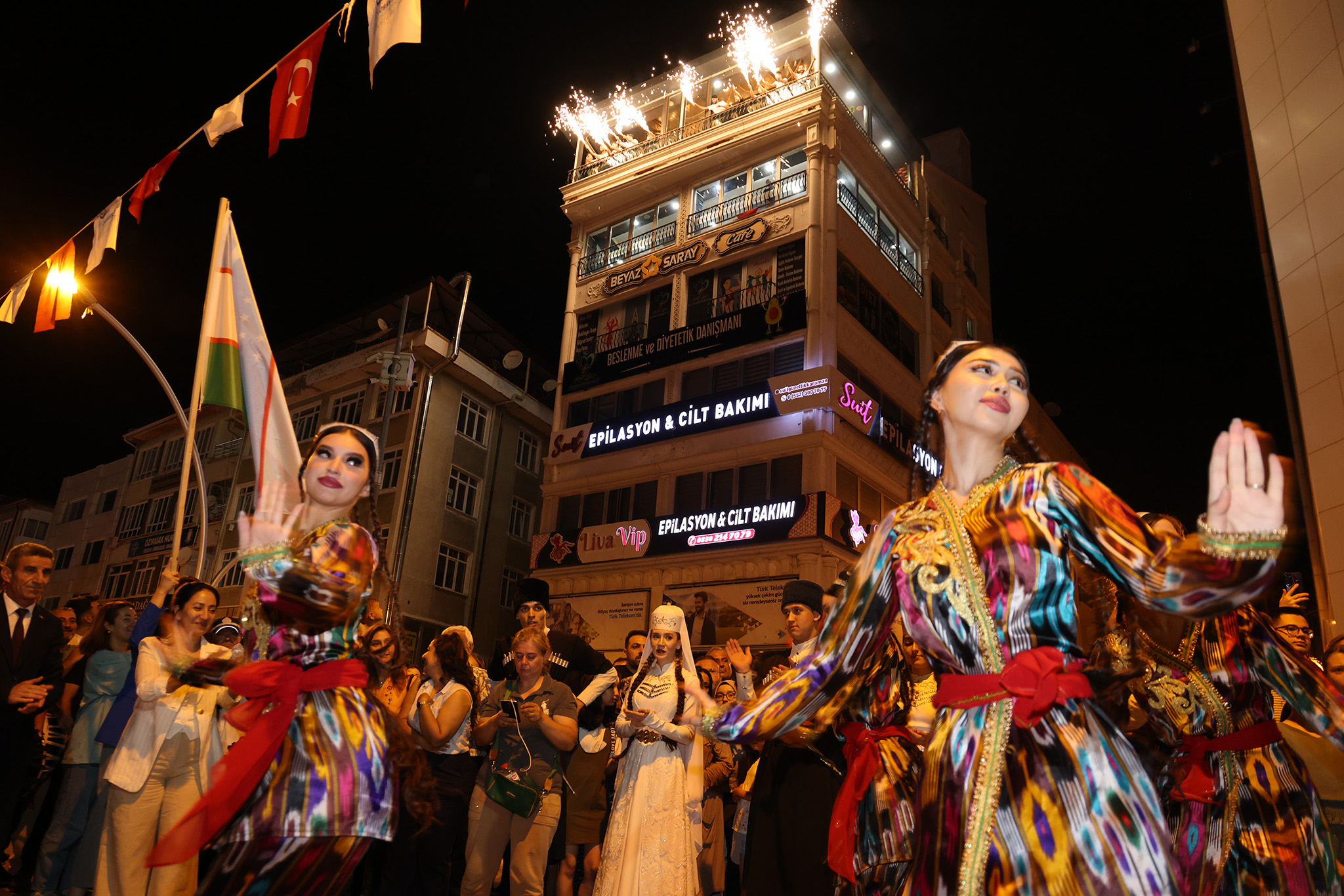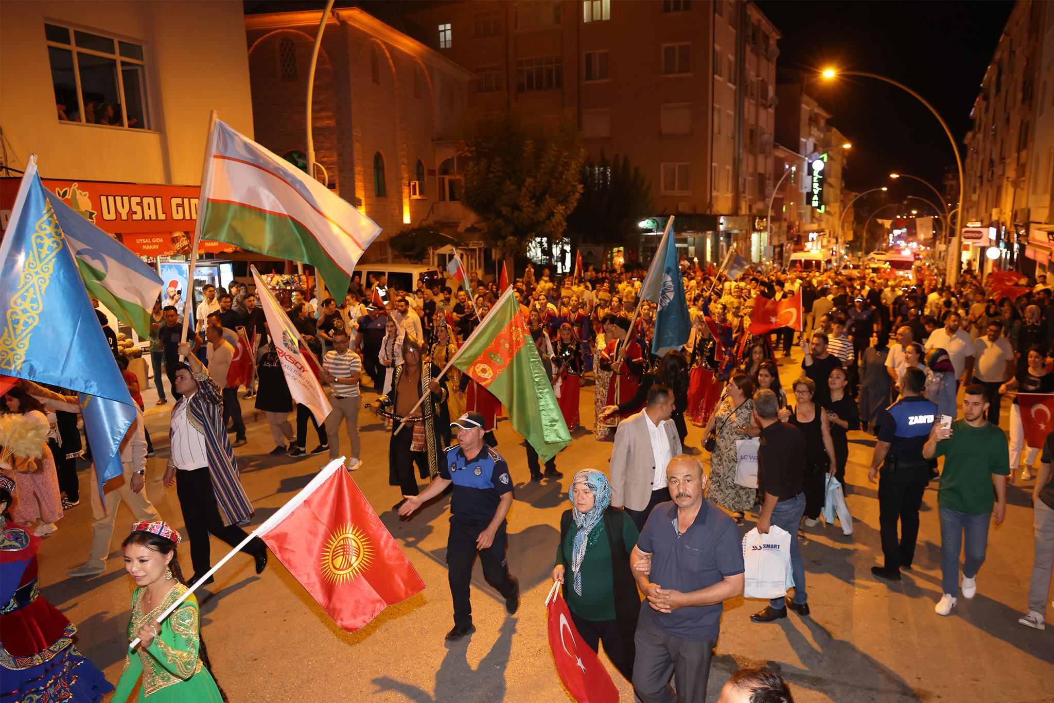 Molla Fenari ve İsmetpaşa Caddesi üzerinden Aktekke 15 Temmuz Demokrasi Meydanı’na kadar devam eden yürüyüşün ardından, Türk cumhuriyetlerinden gelen grupların tanıtımı yapıldı. Yöresel oyunlarını sergileyen dans ekiplerinin gösterisini vatandaşlar da ilgiyle izledi.