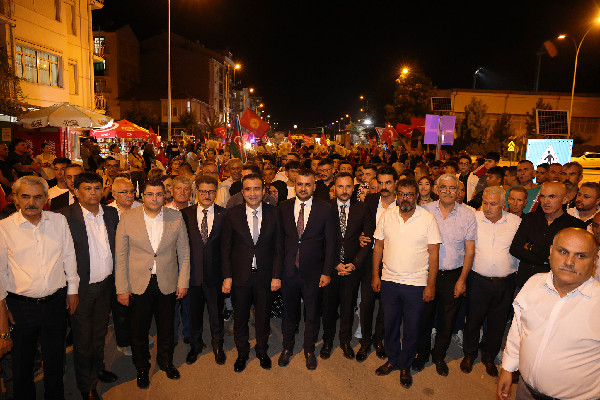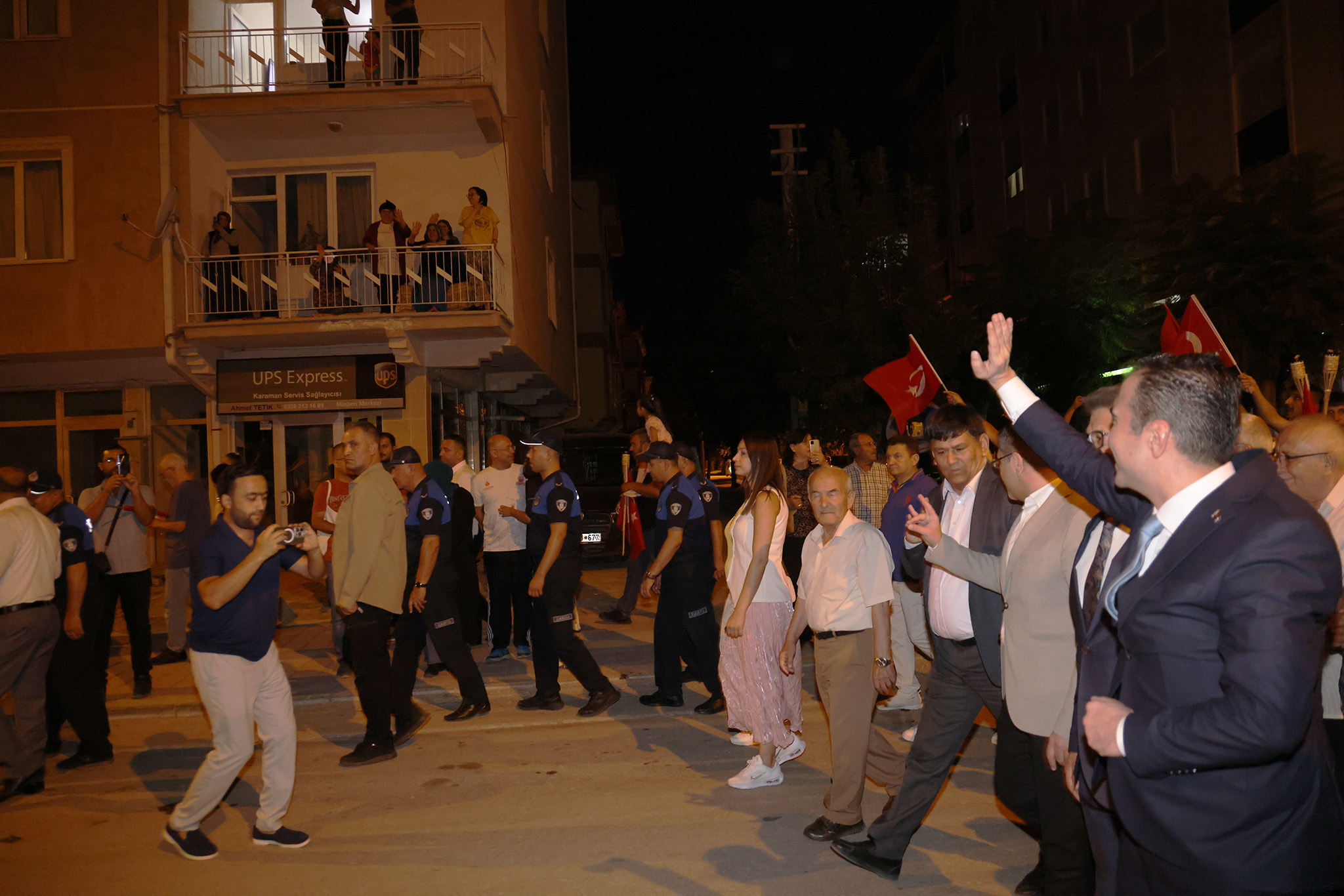 1 Ağustos Perşembe günü saat 21.30’da Kemal Kaynaş Stadyumu önünde başlayan “Türkçe Aşkı Vatan Aşkı” yürüyüşüne vatandaşlar büyük ilgi gösterdi. Ellerinde meşalelerle uzun bir kortej oluşturan vatandaşlara; Karaman Belediye Başkanı Savaş Kalaycı, Türksoy Genel Sekreter Yardımcısı Sancar Mülazımoğlu, MHP İl Başkanı Muhammet Mustafa Gözel, Belde Belediye Başkanları, Sivil toplum kuruluşlarının temsilcileri, Türksoy ve Türk dünyasından gelen konuklar ile bayraklarını taşıyan sancaktarlar, bando ve kılıç-kalkan ekibi eşlik etti.