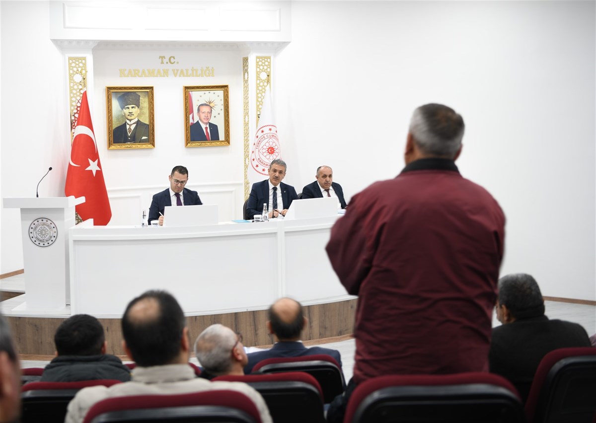 Karaman Valisi Tuncay Akkoyun, muhtarlarla bir araya geldiği toplantıda, kurum müdürlerine muhtarların sorun ve taleplerini takip etmeleri talimatını verdi.