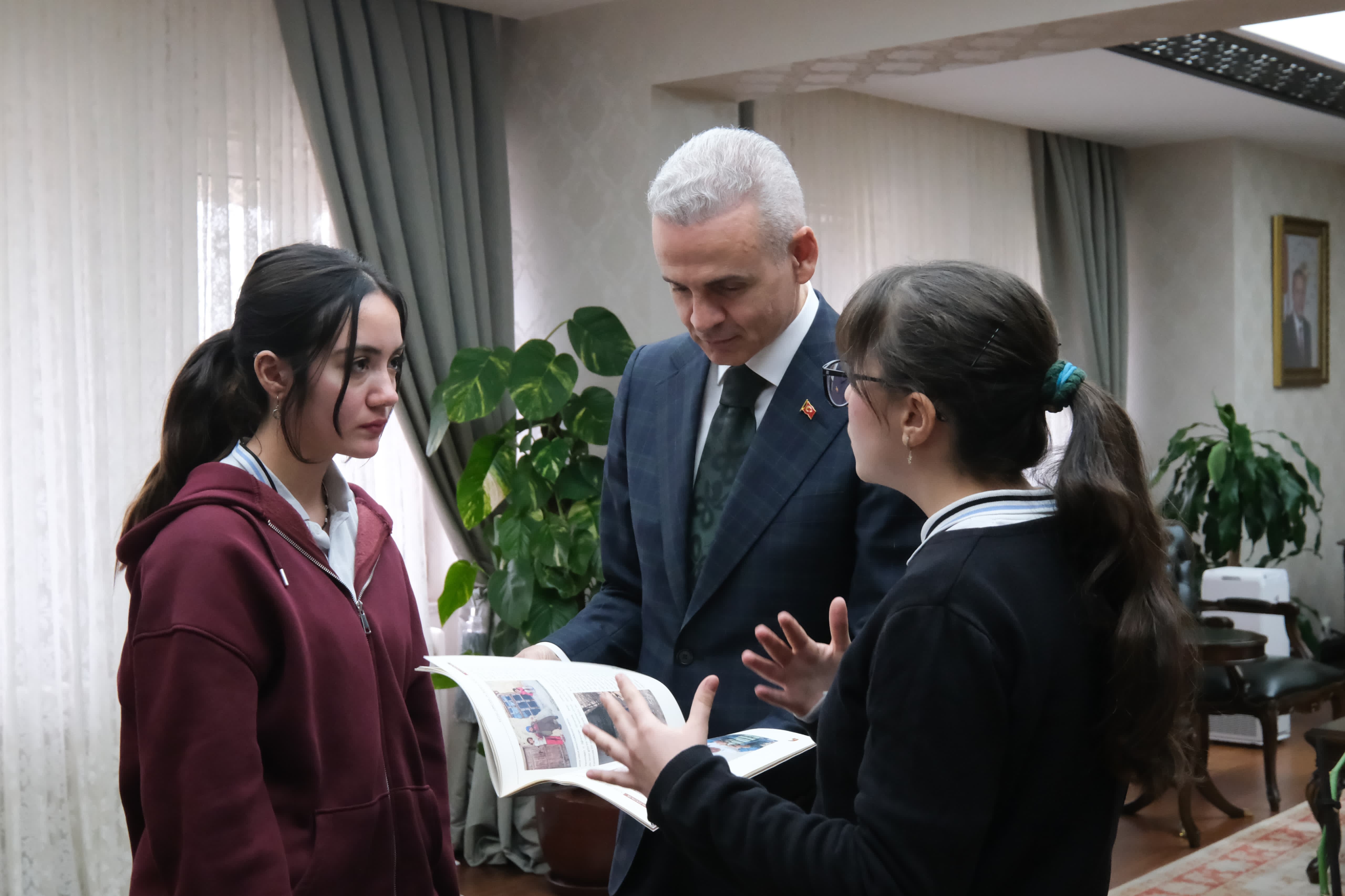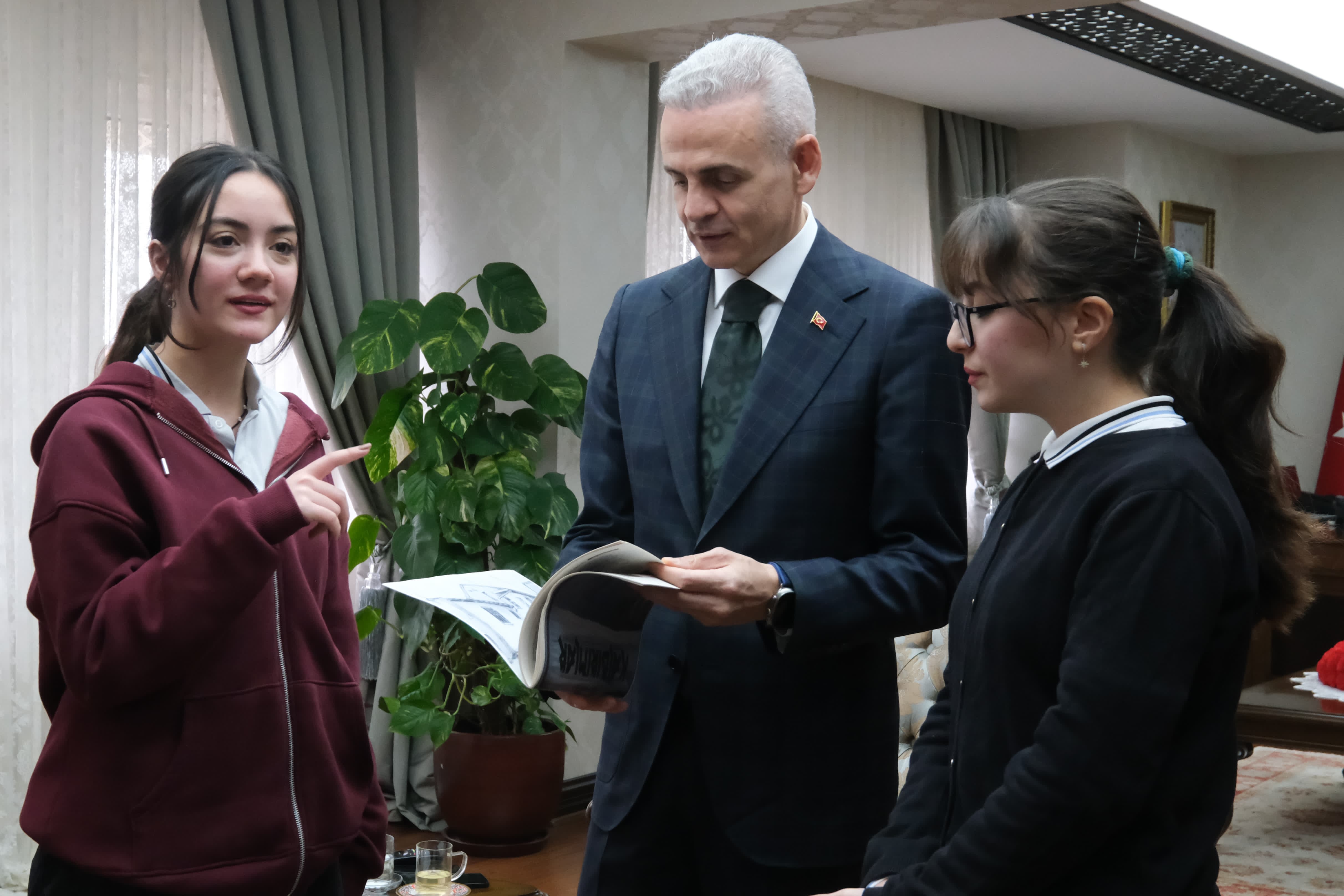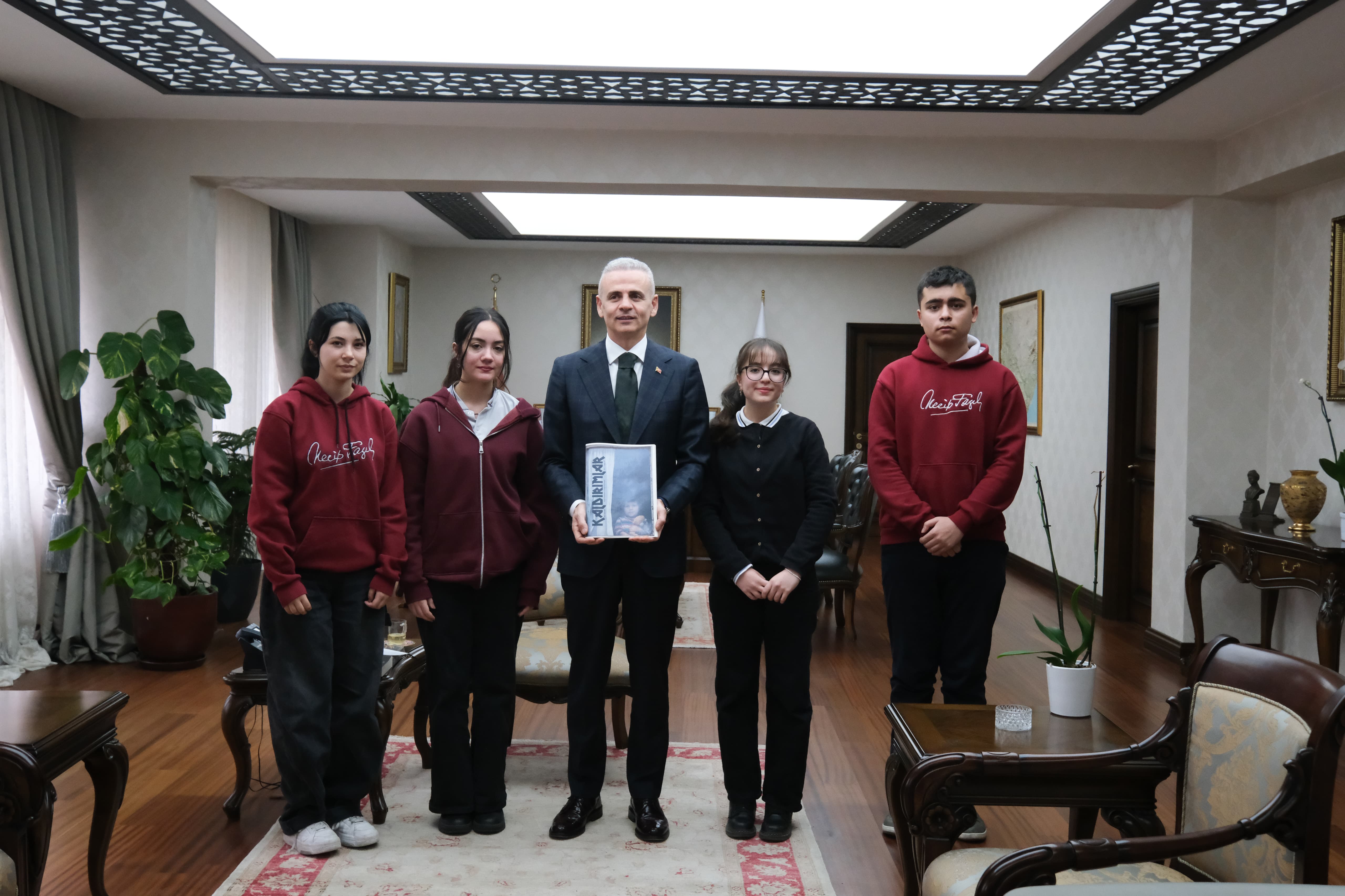 Vali Mehmet Fatih Çiçekli, Necip Fazıl Kısakürek Sosyal Bilimler Lisesi öğrencilerinin hazırladığı ve bu yıl onuncu sayısı yayımlanan Kaldırımlar dergisinin yazar ekibini makamında ağırladı.Derginin editörleri Hatice Karabacak ve Bergüzar Kaya ile yazar kadrosundan Eren Aydın ve Yağmur Yavuzcan, Okul Müdürü Ahmet Aydoğdu’nun katıldığı ziyarette, Valimiz genç yazarlarla keyifli bir sohbet gerçekleştirdi. Öğrenciler, derginin içeriği, yazım süreci ve projelerine dair heyecanlarını paylaştılar.Öğrencilerin hediye ettiği Kaldırımlar Dergisi’nin onuncu sayısını dikkatle inceleyen Valimiz Mehmet Fatih Çiçekli, derginin çok nitelikli bir yayın olduğunu vurguladı. Valimiz Mehmet Fatih Çiçekli şu ifadeleri kullandı:“Kaldırımlar dergisi, Karaman’ı, şehrimizi, sokakları, hayatı, insanları ve en önemlisi umudu anlatıyor. İçerik üretiminden fotoğraf seçimine, dizgisinden basımına kadar her aşamasında sizlerin büyük emeği var. Bu tür projeler, kültürümüzü ve değerlerimizi yaşatmak açısından büyük önem taşıyor. Sizleri tebrik ediyor ve başarılarınızın devamını diliyorum. dedi.